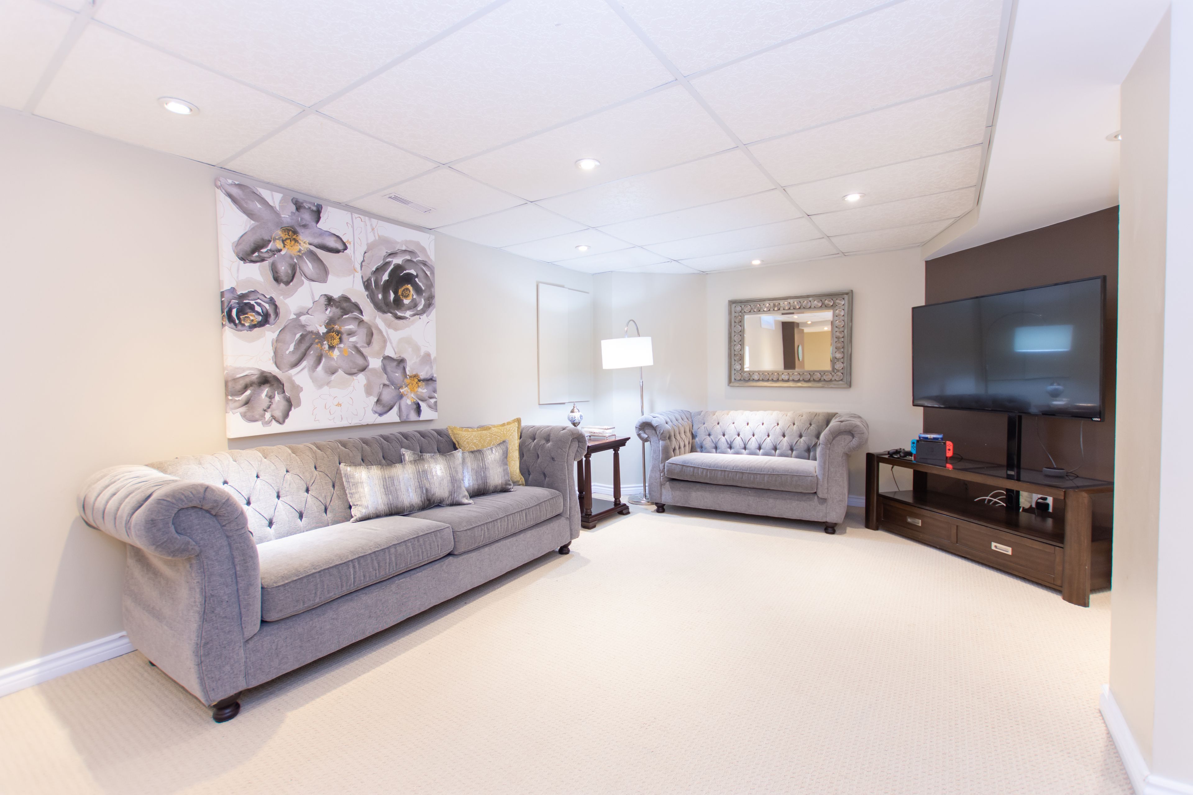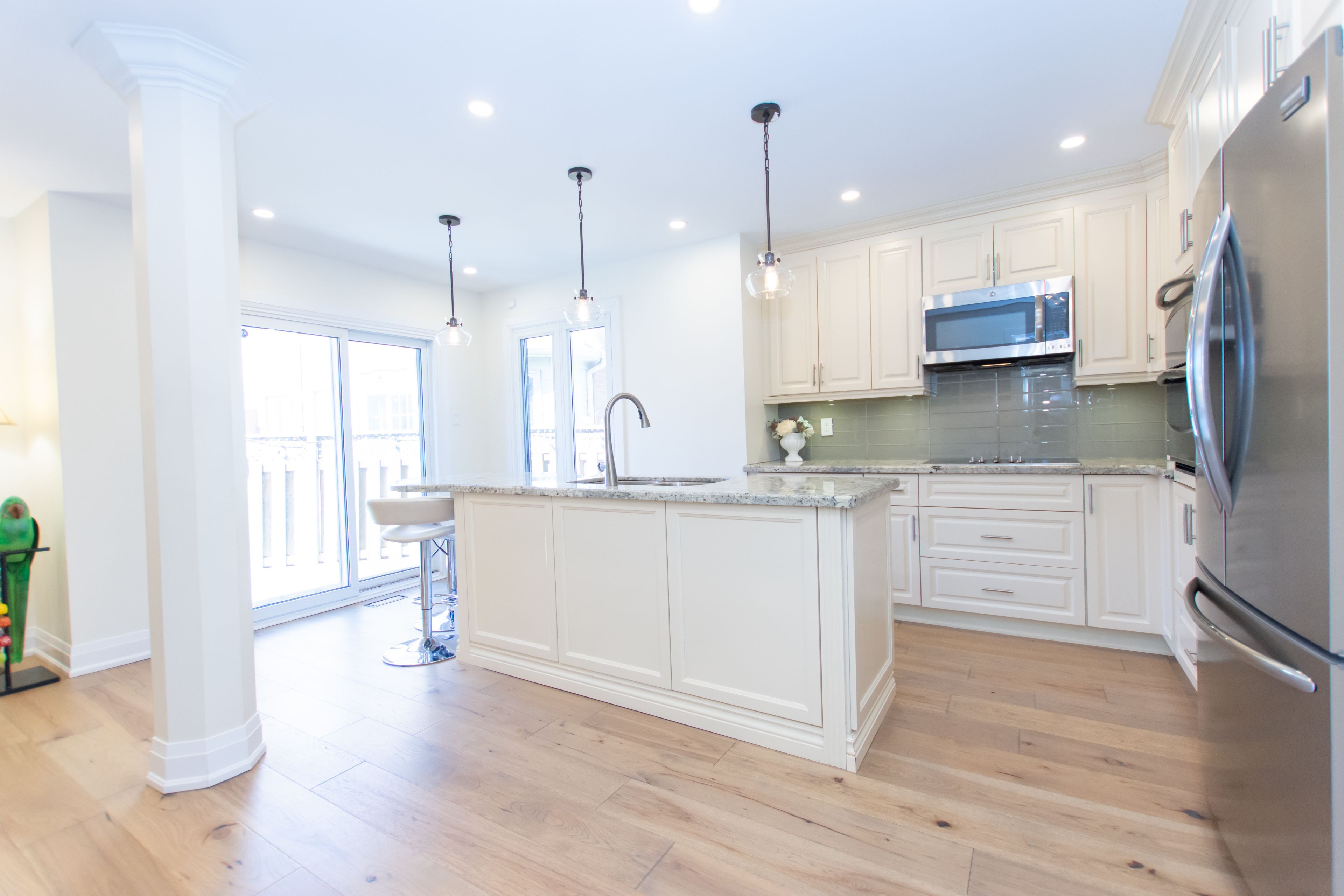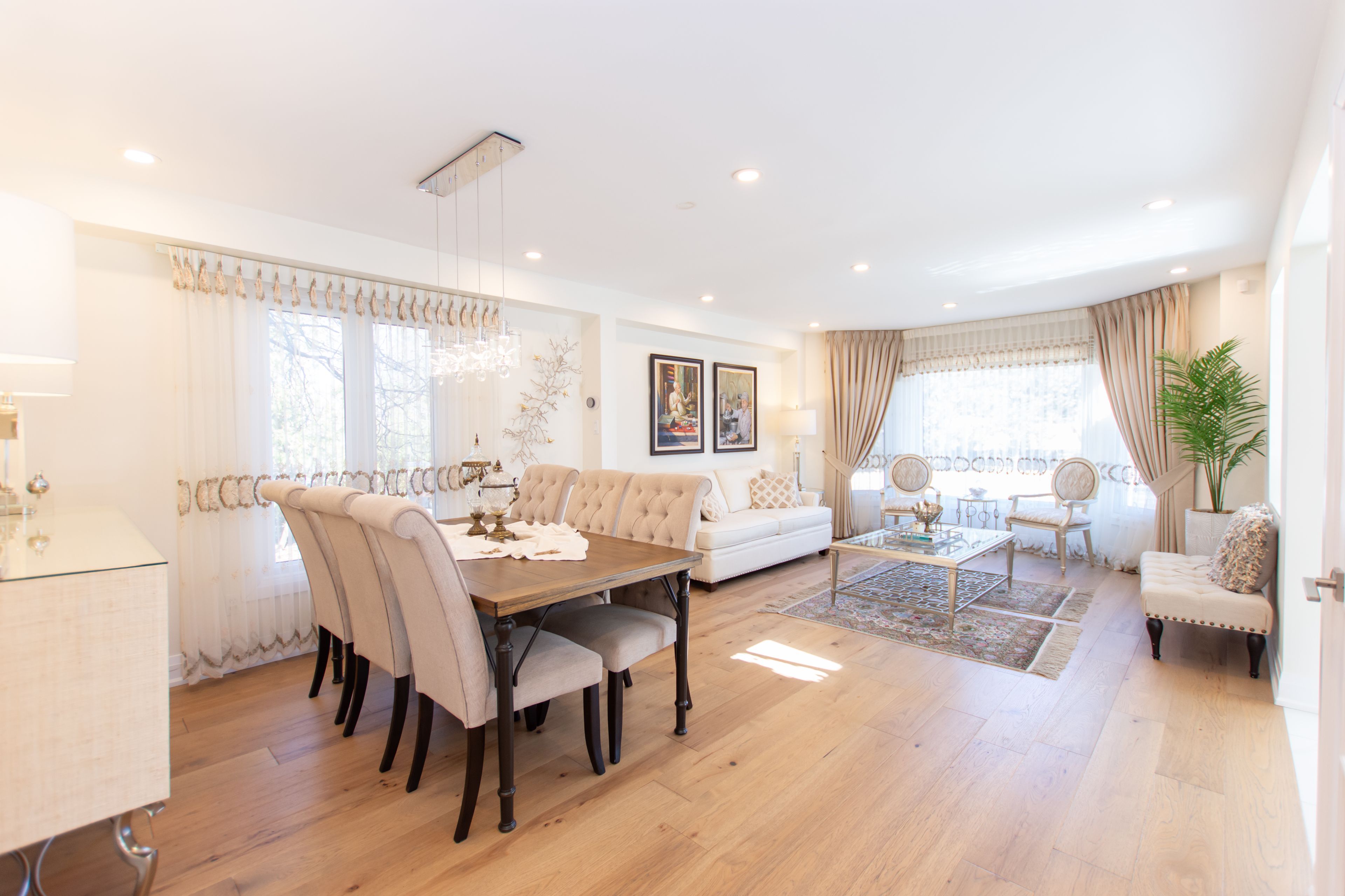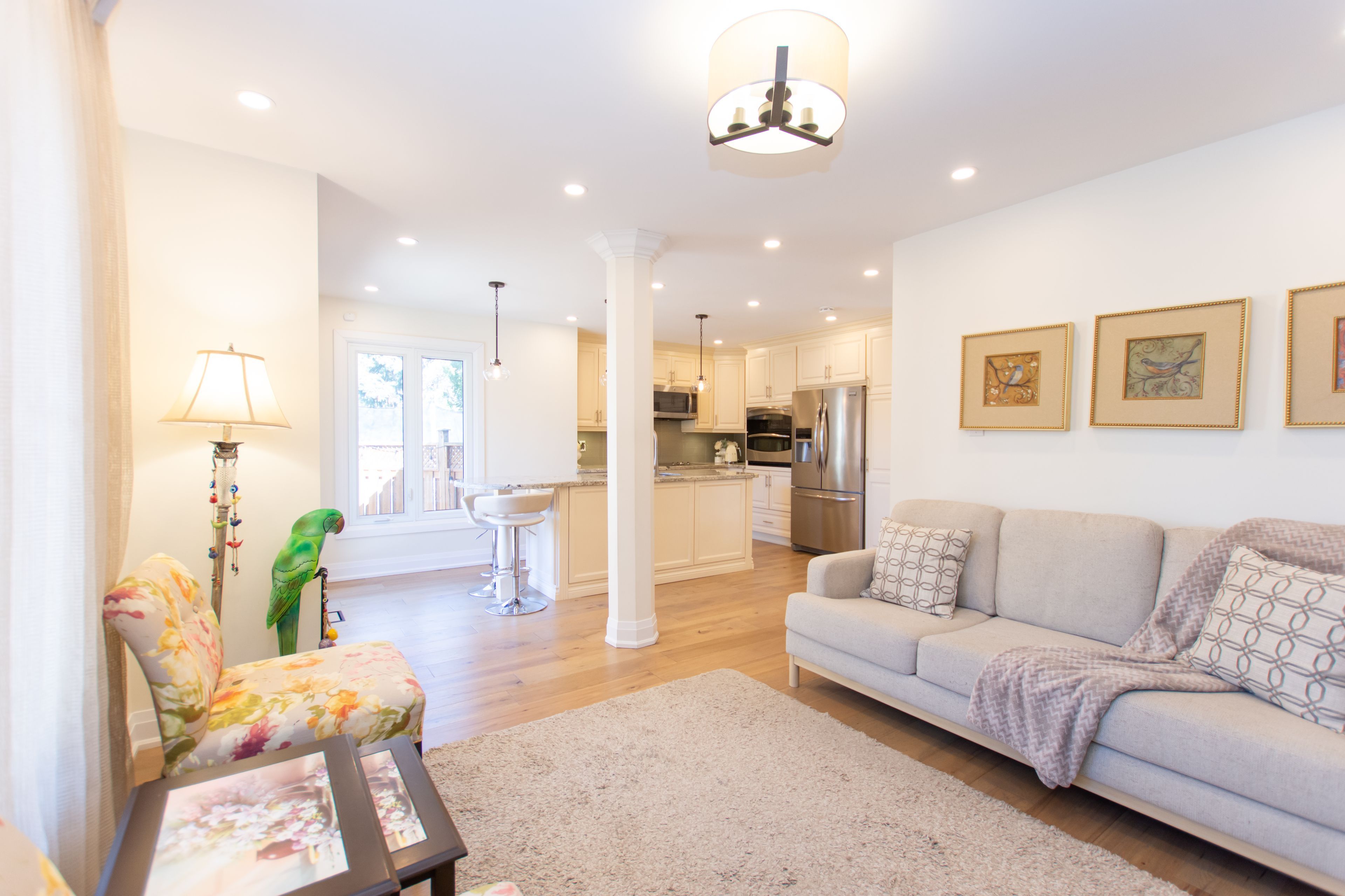 • Open-concept layout with smooth ceilings and elegant hardwood floors.