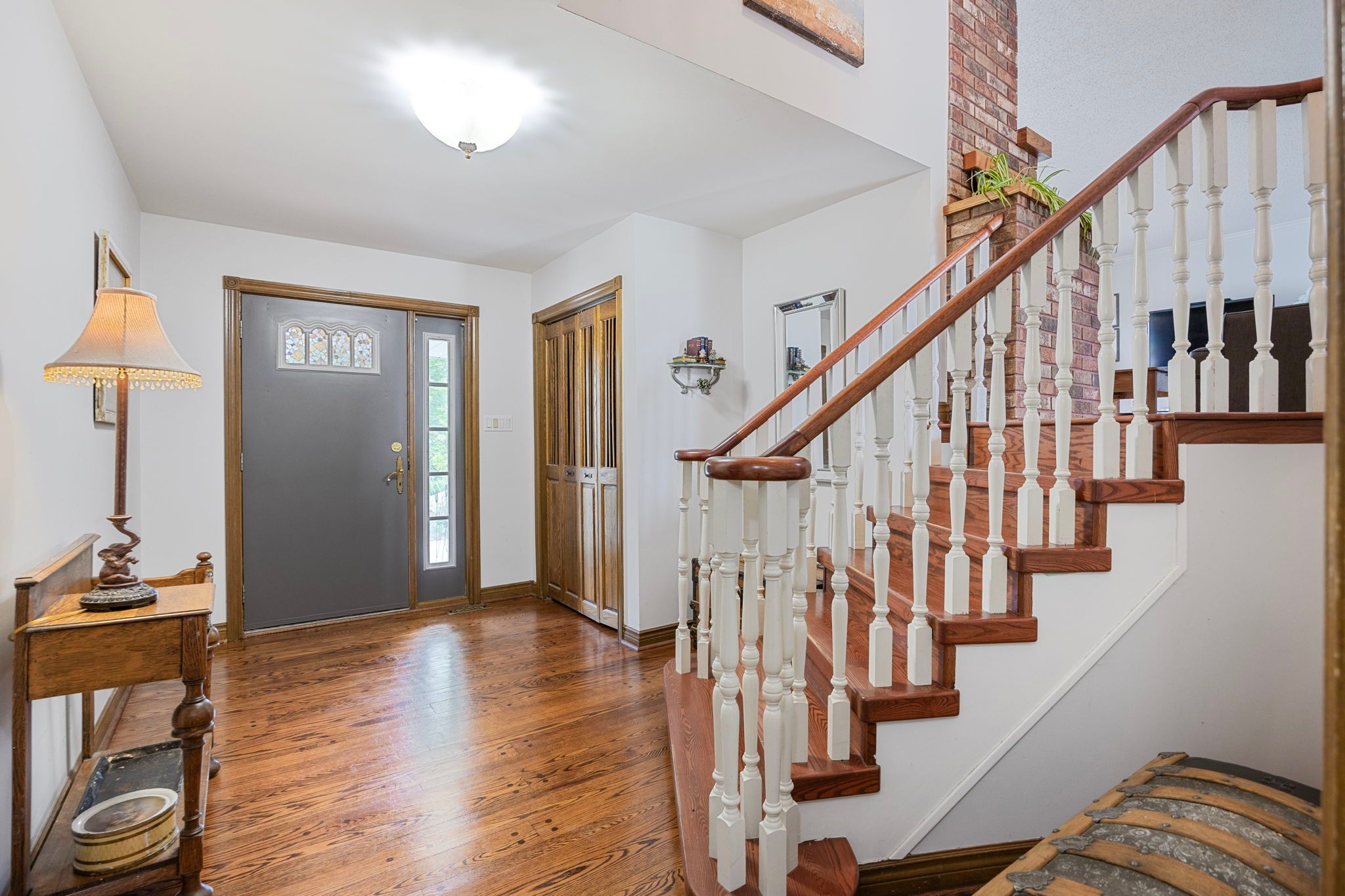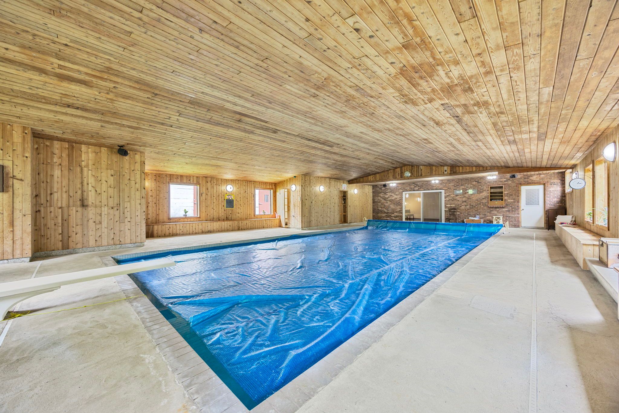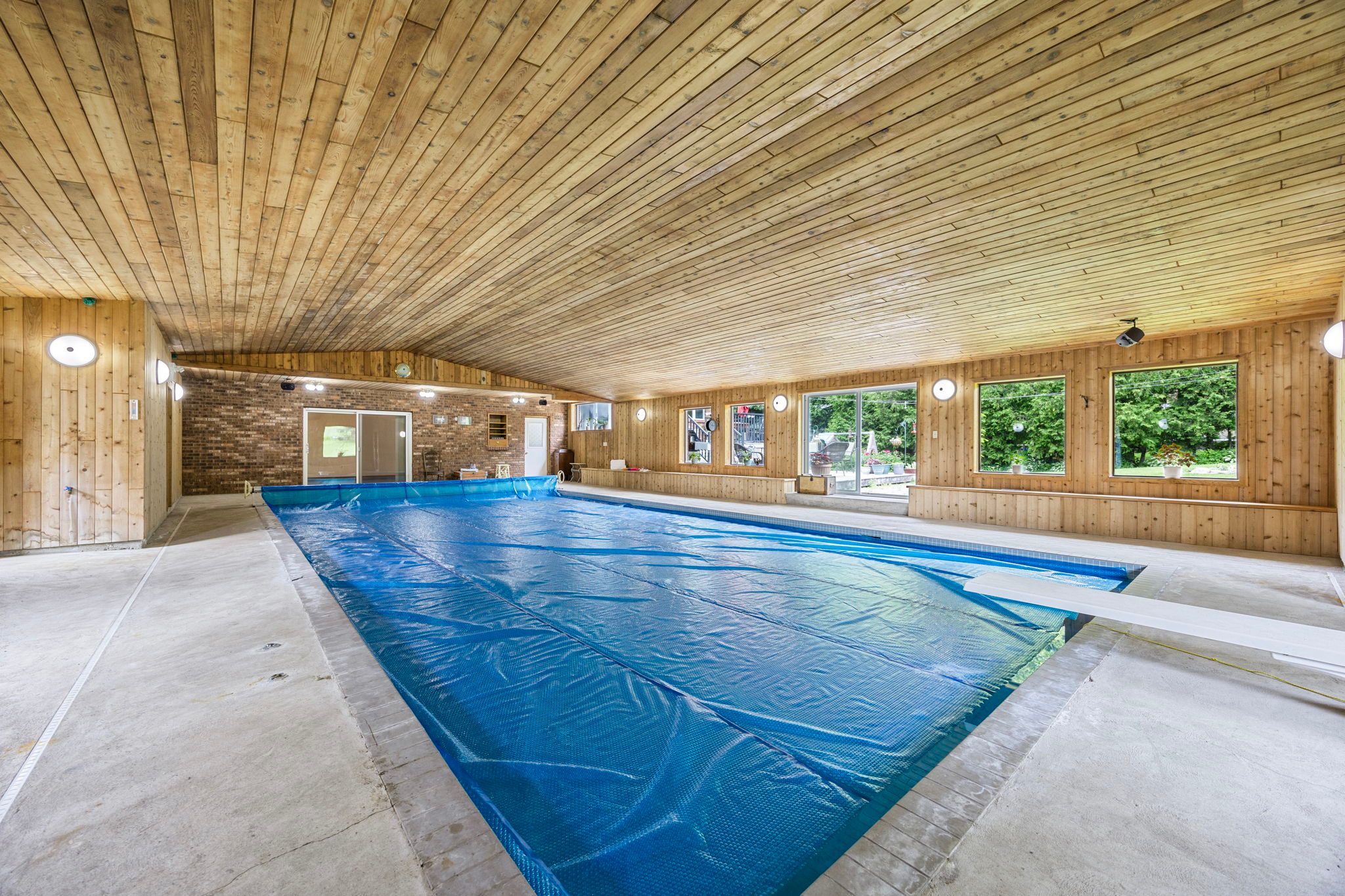 Experience the perfect blend of country charm and city convenience in this expansive all-brick home with private indoor heated pool. Featuring 5 bedrooms and 3 bathrooms. The home boasts gleaming hardwood floors, a formal dining room with french doors, a welcoming family room with a stone fireplace, and a bright, cozy kitchen with stainless steel appliances, butcherblock counters, and walkout access to a spacious deck. The centerpiece is the private indoor heated pool, complete with patio access and flexible rooms that could serve as changing areas or an additional bath. The primary suite includes a walk-in closet and 3-piece ensuite. Other highlights include a home office, double garage, outdoor workshop/storage, and a finished lower level with extra storage and workshop space. Just minutes from hwy 9, hwy 400, and shopping, this rare property offers comfort, privacy, and unmatched convenience.