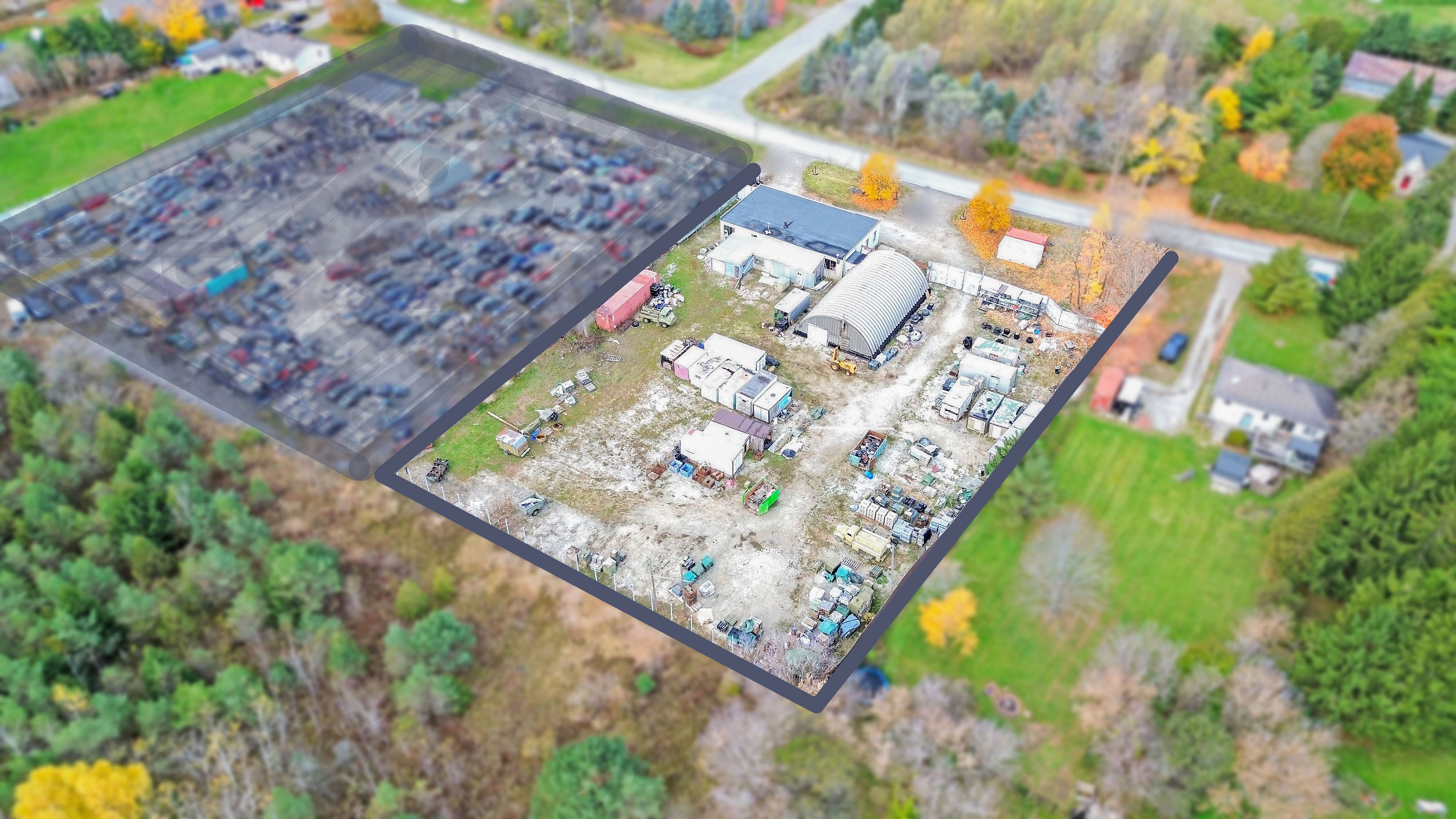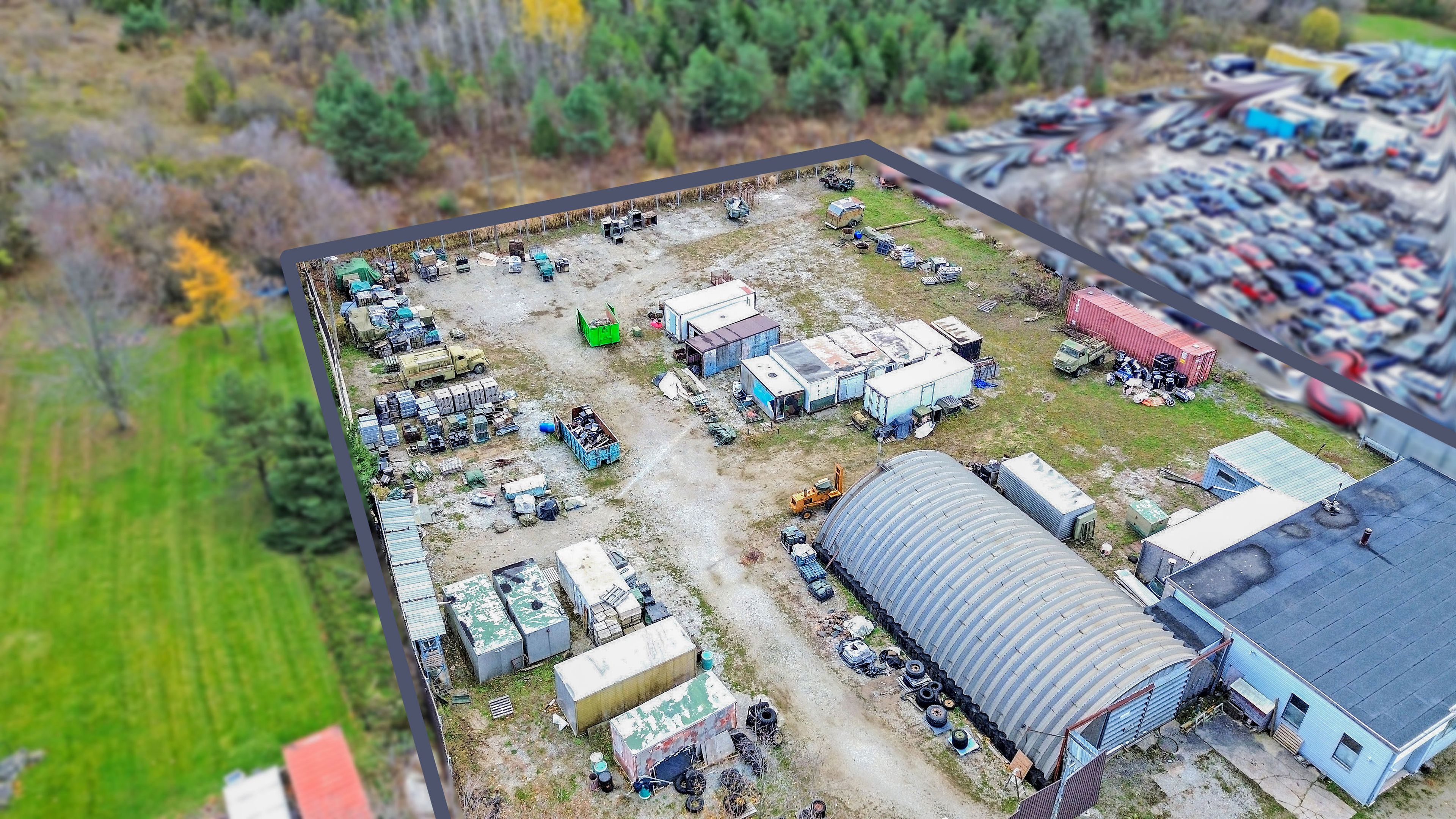 6148 32 sideroad offers a unique opportunity to own a long-established, licensed automotive recycling and salvage operation on 1. 40 acres in rural halton hills. Operating continuously since 1985, this property holds a current, renewed salvage licence and carries valuable legal non-conforming status, allowing the ongoing use as an auto-recycling / salvage yard under present zoning. The site is improved with two quality buildings: a 2,840 sq. Ft. Heated general-purpose building featuring an office and washroom, and a 2,400 sq. Ft. Insulated, heated steel structure ideal for workshop, parts storage, or other operational needs. Both offer ceiling heights of 13 ft and 15 ft, with multiple grade-level overhead doors (12. 9 x 18. 6 ft, 10 x 10 ft, 8 x 9 ft, and 6. 5 x 8 ft) and a robust 600 amp, 240-volt, 3-phase electrical service. The yard area is organized for vehicle and material storage consistent with recycling operations, supporting recovery and reuse of metals and components. The property is secured by a monitored alarm and camera system. A rare find in halton hills-an established and fully licensed recycling / salvage facility with strong operational infrastructure and the flexibility to continue or repurpose under rural cluster commercial, rcc zoning. Property being offered as is where is without implies warranties or representation. Esa phase ii available. Please do not enter the property without an appointment. This property offers an ideal location on paved road close to hwy 7 within 15 minutes of guelph, georgetown and acton / north of milton on regional road 125. This property is located immediately adjacent to another existing and operating auto / salvage yard and is not included.