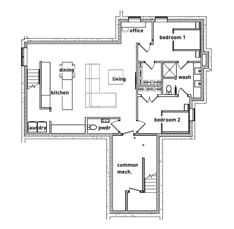 • Luxury kitchen with quartz surfaces and a large island for entertaining.