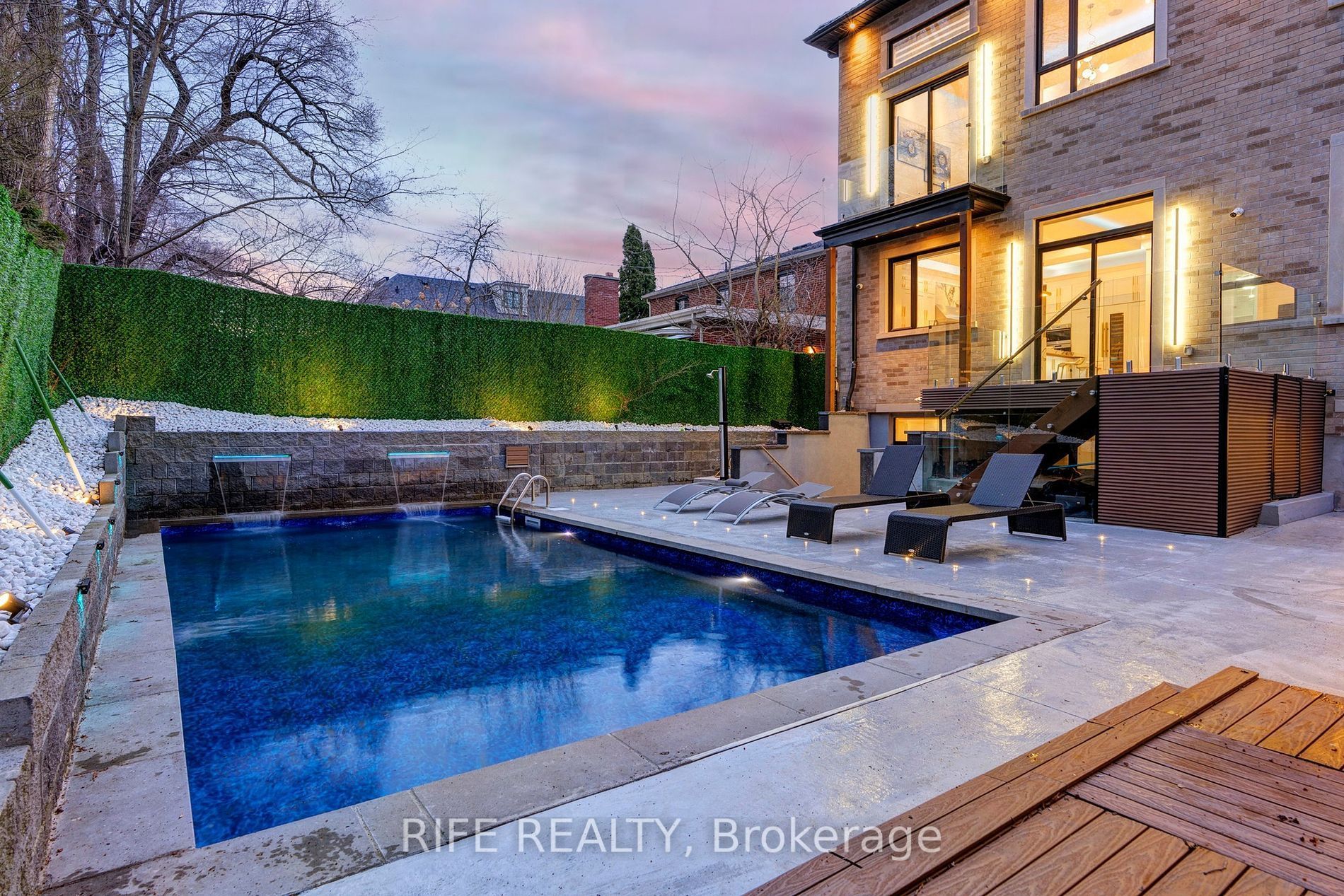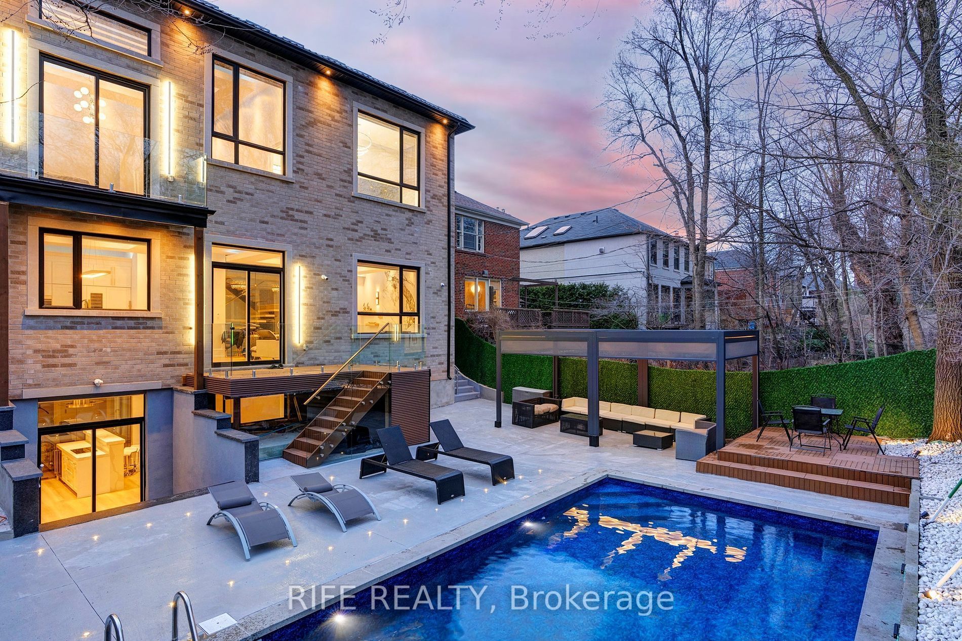 Elegance and sophistication in highly sought after lytton park. 6500 sq. Ft. Of living space completed in 2023, this home has it all. Impeccable finishes w/no detail overlooked. Striking precast facade, heated driveway, full two car garage with electric car charger. Interior masterfully crafted cabinetry and millwork, recessed lighting, 3 gas fireplaces exceptional flow for entertaining and family living. Great sized primary bedroom with 13 ft height w/exquisite 5 pc ensuite, and a large walk in closet, large airy bedrooms with private ensuites, w/chef's kitchen w/top-of-the-line appl (sub-zero & wolf) that opens to family room w/w/o to deck w/ample light , bright lower level w/heated floors. Huge rec room w/full kitchen, glass enclosed gym, sauna, upper & lower 2-laundry, double ac& furnaces. Stunning backyard w/heated pool & outdoor pool shower, gazebo with remote adjustable louvered. Steps to top schools, shops, eateries& transit.