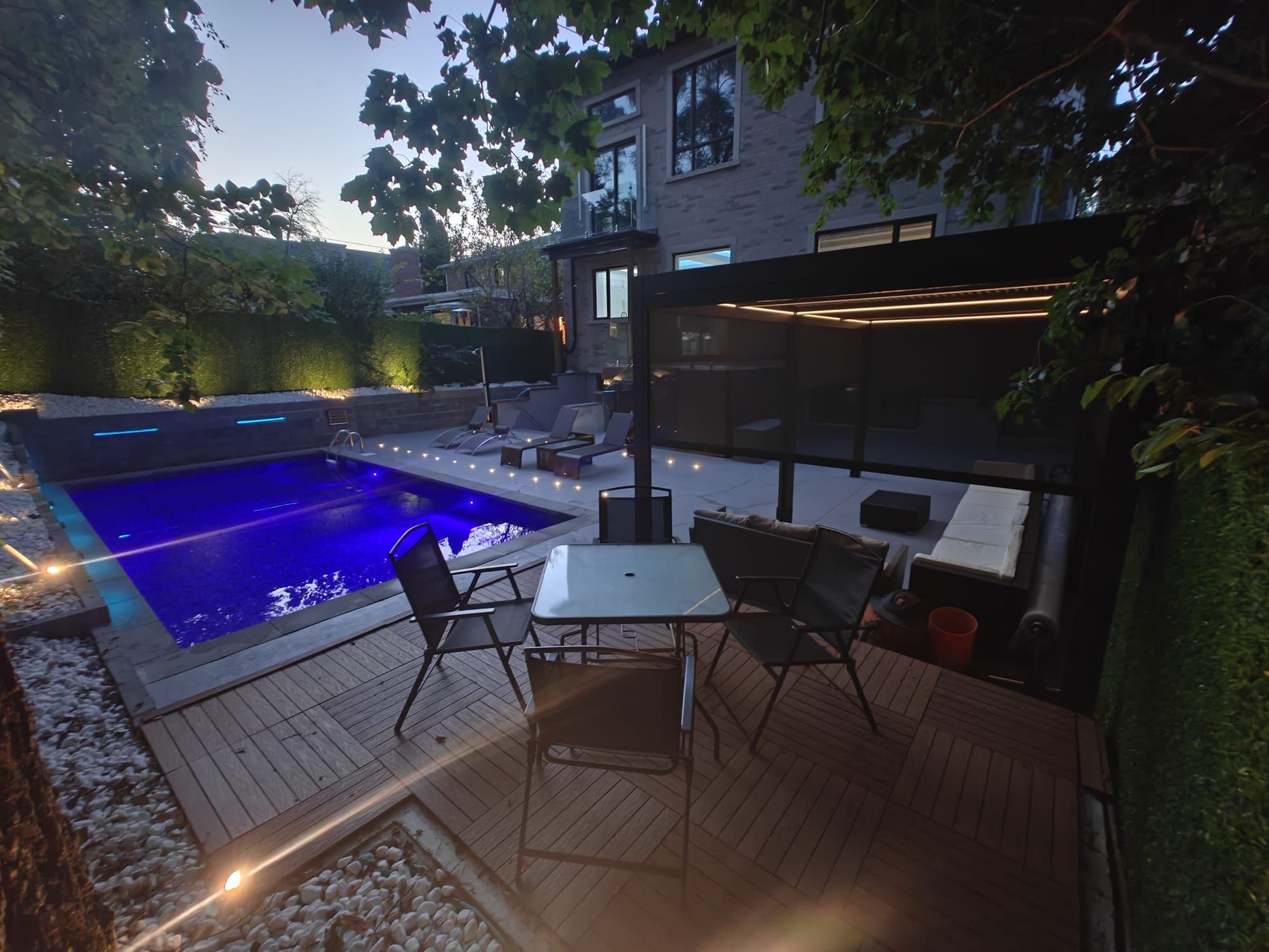 • Private resort-style backyard with a saltwater pool and soothing waterfalls.