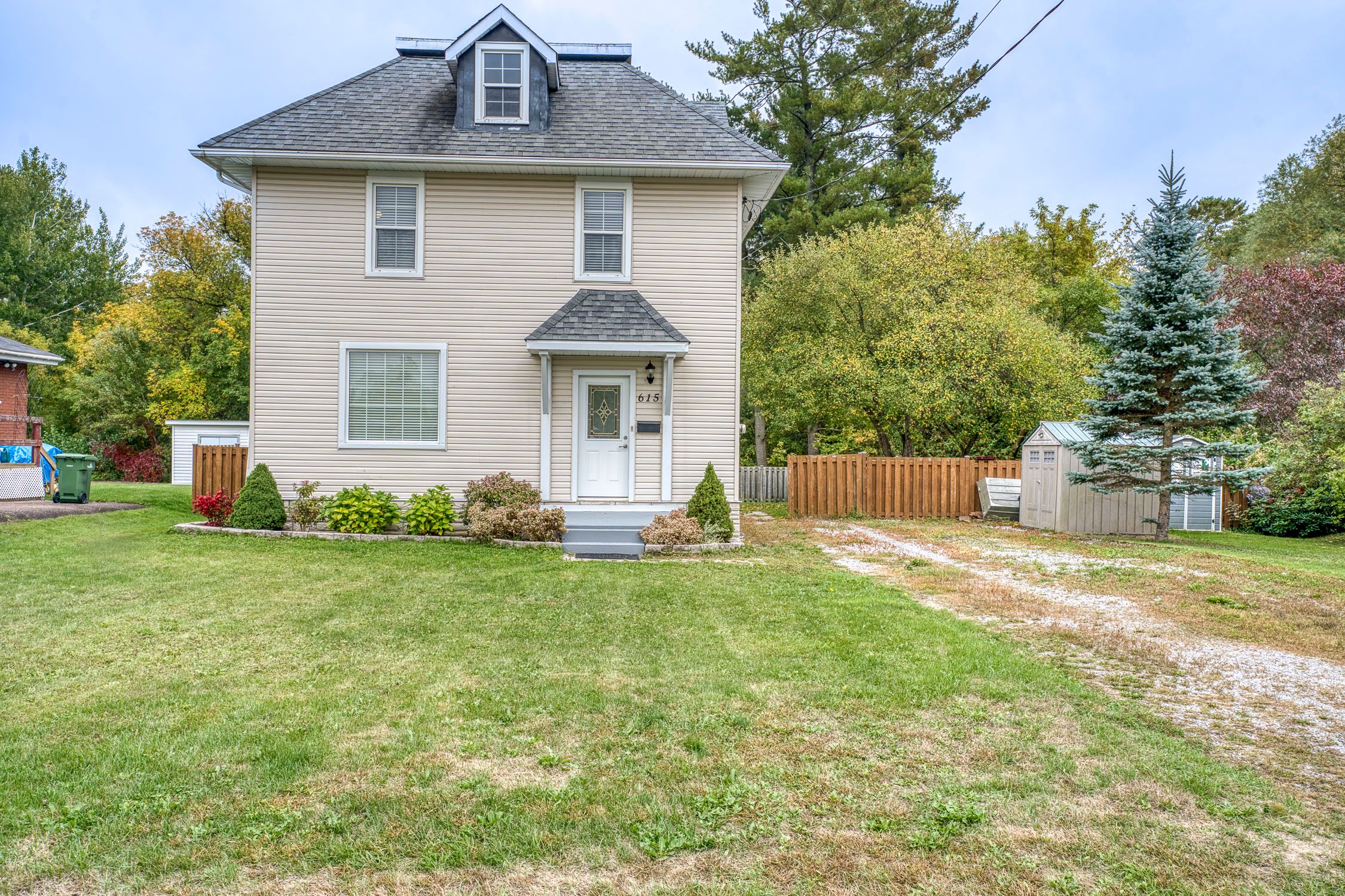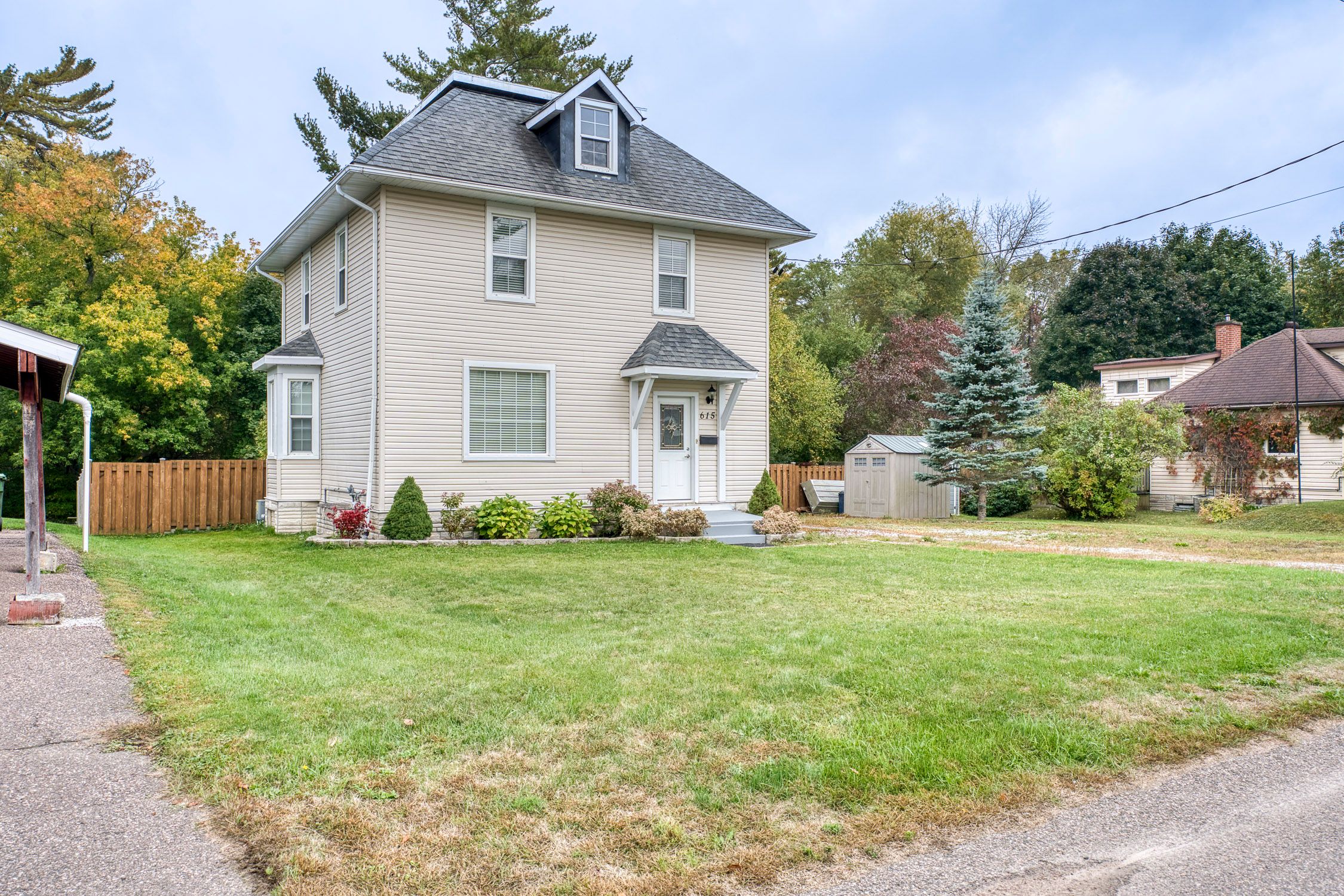 Welcome to 615 moffat st, this move in ready home sits on a large double lot on a cul de sac with no through traffic. This beautifully updated and well kept 3 storey home is a must see! With a large foyer which welcomes you into the warmth and charm of this 1945 built home. To add to the warmth there is a newer woodstove which can heat the whole home, a great secondary heating source! With it's tall ceilings, and 28 large windows, all with custom blinds, the home is flooded with natural light, giving the space an open and airy feel. Flooring is all pine softwood throughout the main level and the second storey. Original tall baseboards and window trim detail is something you just don't find in the newer built homes. There is a powder room off of the large country kitchen. The kitchen has a central island and plenty of counter space for any chef! Patio doors give access to the covered porch and the large fenced back yard with access to muskrat river right from your own back yard! On the second storey you will find an updated full bath and 3 well sized bedrooms, the primary bedroom has been customized with rustic barn wood accents and has a great sized walk in closet. The second bedroom has the access to the 3rd level which is unfinished but has many potential uses, a hobby room, a games room, a home theatre room or just about anything you could imagine! The basement level has a separate finished laundry room with built in storage cupboards and the remainder of the basement is clean, dry (new weeping tiles) and currently is used as a metal workshop. The location is great for anyone who wants to be able to walk to the downtown for shopping, it is also close to the hospital and health care. It's a quick drive away from algonquin park and approximately 1 1/2 hour away from ottawa and approximately 2 1/2 hours to north bay. Come and visit, you may just want to stay for a lifetime!