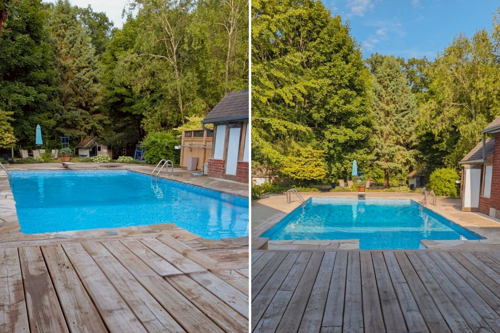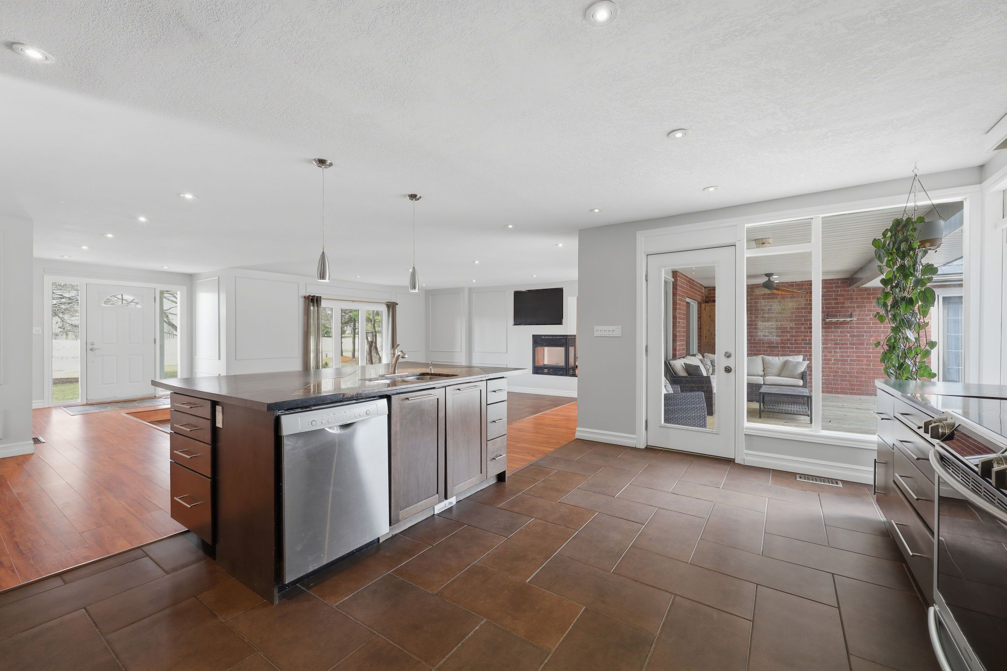 Tucked among mature pines and carolinian forest, this tudor-style home sits in one of union's most desirable pockets just minutes from st. Thomas golf & country club. Backing onto open fields and a ravine area, the setting offers privacy, space, and a rare connection to nature. The layout is what makes this home stand out. Designed to flank the inground pool on three sides, the backyard becomes the centrepiece of living, with main spaces wrapping around the pool to create a private retreat. Inside, nearly 3,000 sq ft of above-grade space offers an open kitchen, dining, and living area ideal for gathering, along with a cozy family room, three bedrooms, a 4-piece bath, and powder room on the main floor. Two gas fireplaces add warmth and character, while the loft provides an additional bedroom and sitting area. The primary suite opens directly to the pool and includes a generous walk-in closet. The lower level adds flexibility with a walkout exercise area, kitchenette, recreation room, additional bedroom, crafts room, 3-piece bath, and an enormous workshop for the hobbyist. Direct access to the oversized 3-car garage adds function, large enough for two pickup trucks and featuring a convenient pool house bathroom. Outdoors, enjoy the inground pool with newer liner, expansive grass area, sand volleyball court, and bonfire pit. Steps away, union park offers a baseball diamond, basketball and tennis courts, playground, and walking trails looping through the conservation ravine and pond. Located within the sought-after kettle creek public school district and minutes to st. Thomas, port stanley, and everyday amenities. Major updates include a brava synthetic slate roof (2026), new fascia and eavestrough (2026), ac (2025), well pump (2025), updated windows (2025), upgraded 200-amp service with secondary panel, ev charger, renovated main floor bathroom, and septic pumped summer 2025. Ready for summer living around the pool.