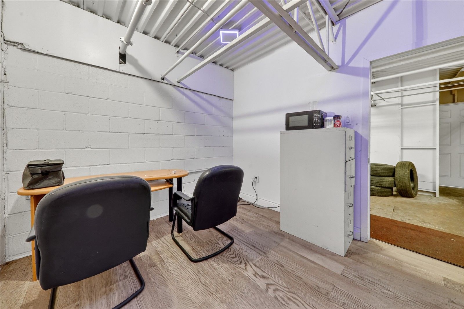 Prime location, location garage unit in a well-managed complex with quick access to major highways, public transit, and nearby amenities. Plus a bonus mezzanine space not included in the total square footage. A stand-up washroom can be installed in the mezzanine area. On the main floor there is a reception desk, waiting desk, waiting area, and a full washroom.