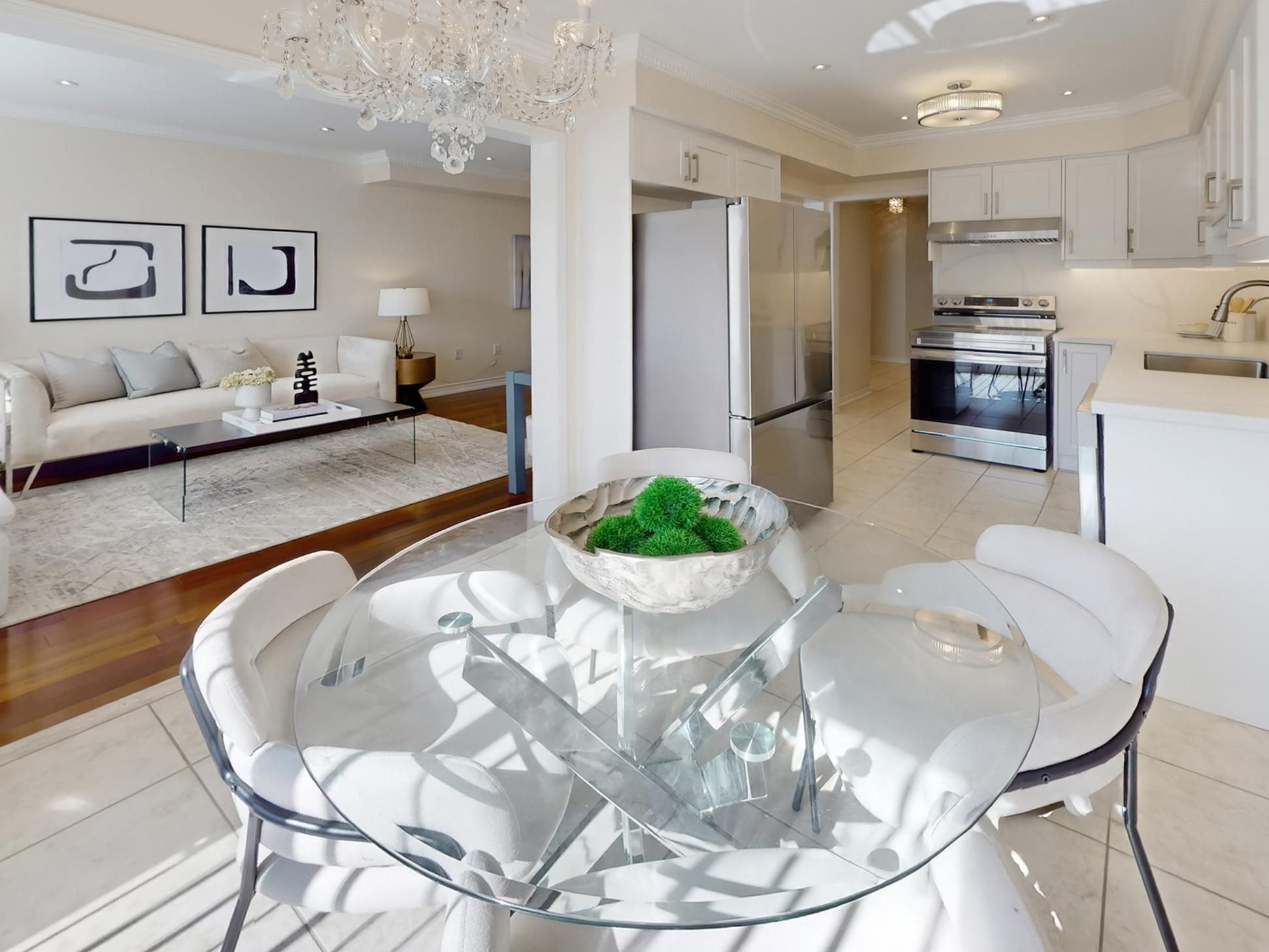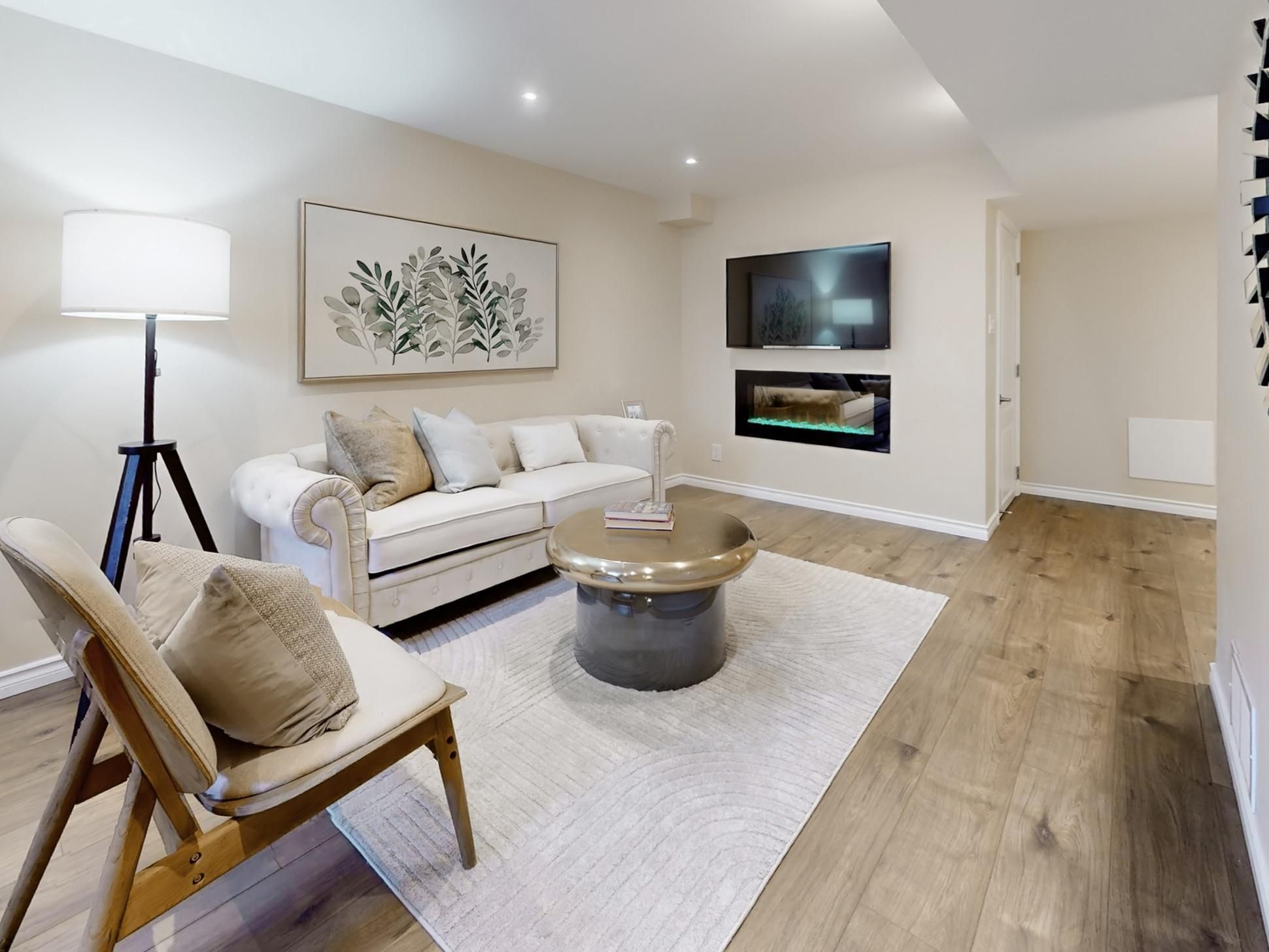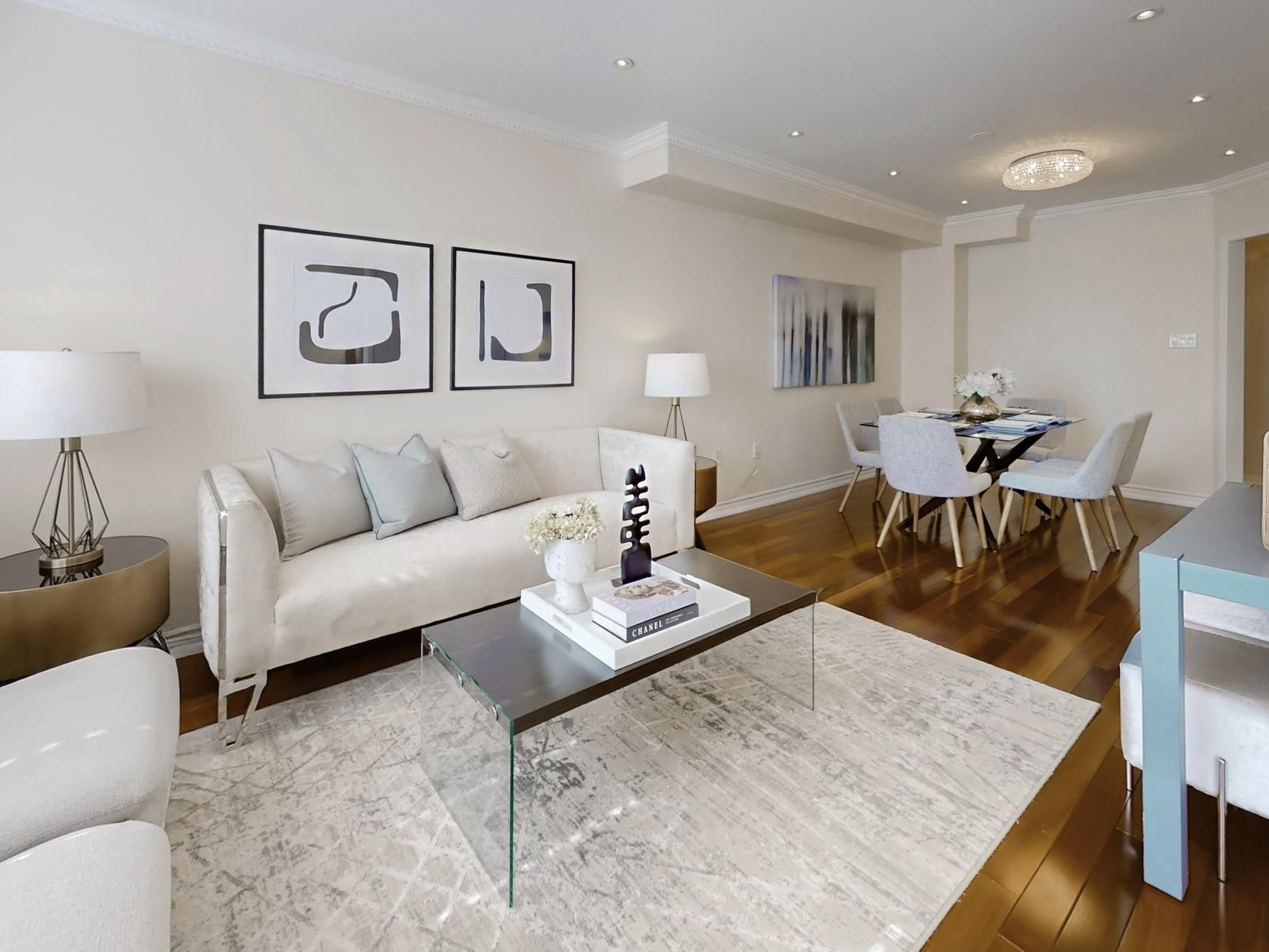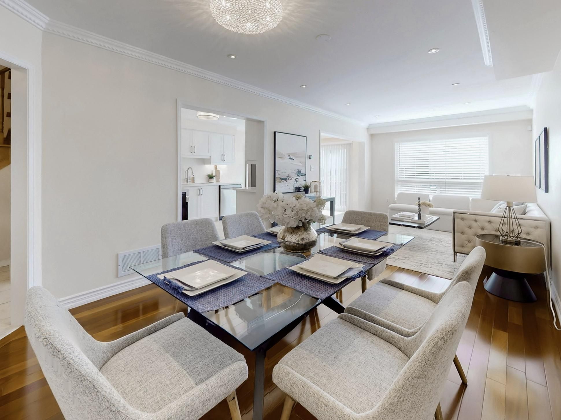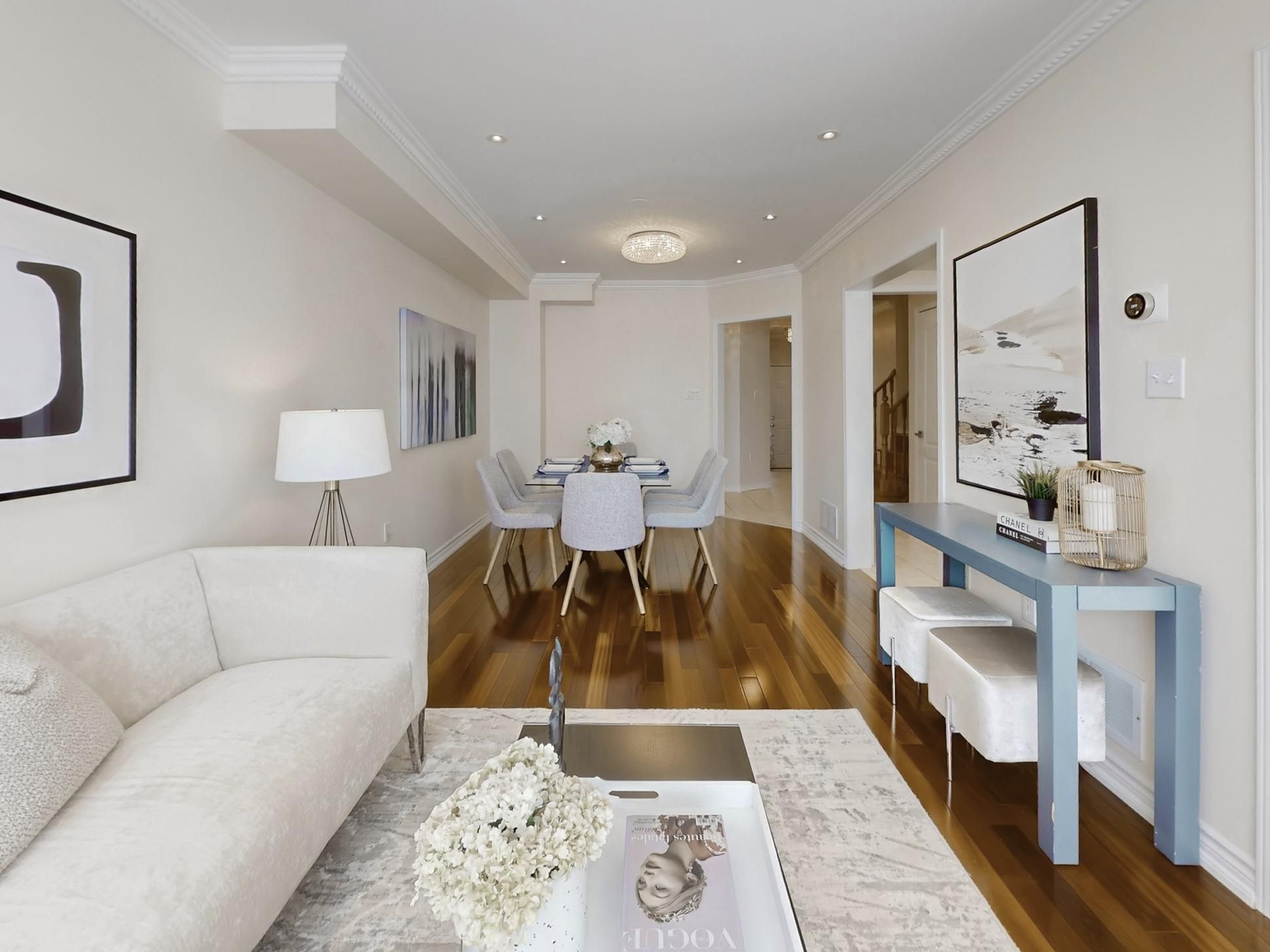 • Open-concept living and dining area with upgraded hardwood flooring.