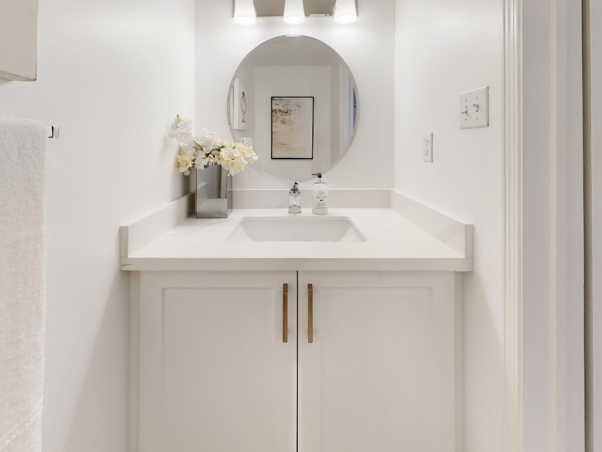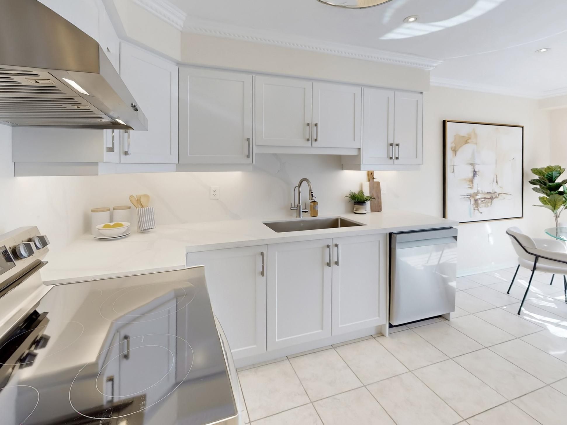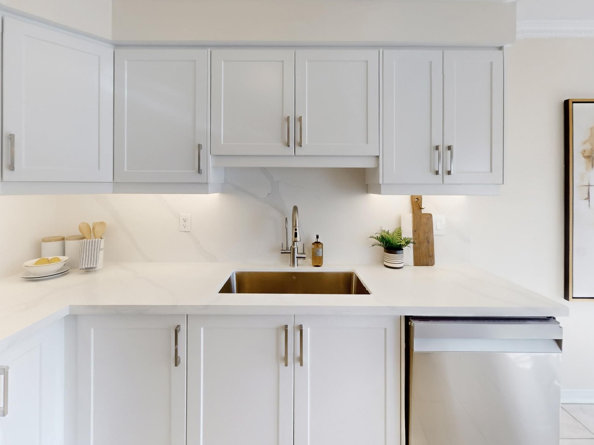 • Renovated kitchen with quartz countertops and stainless steel appliances.