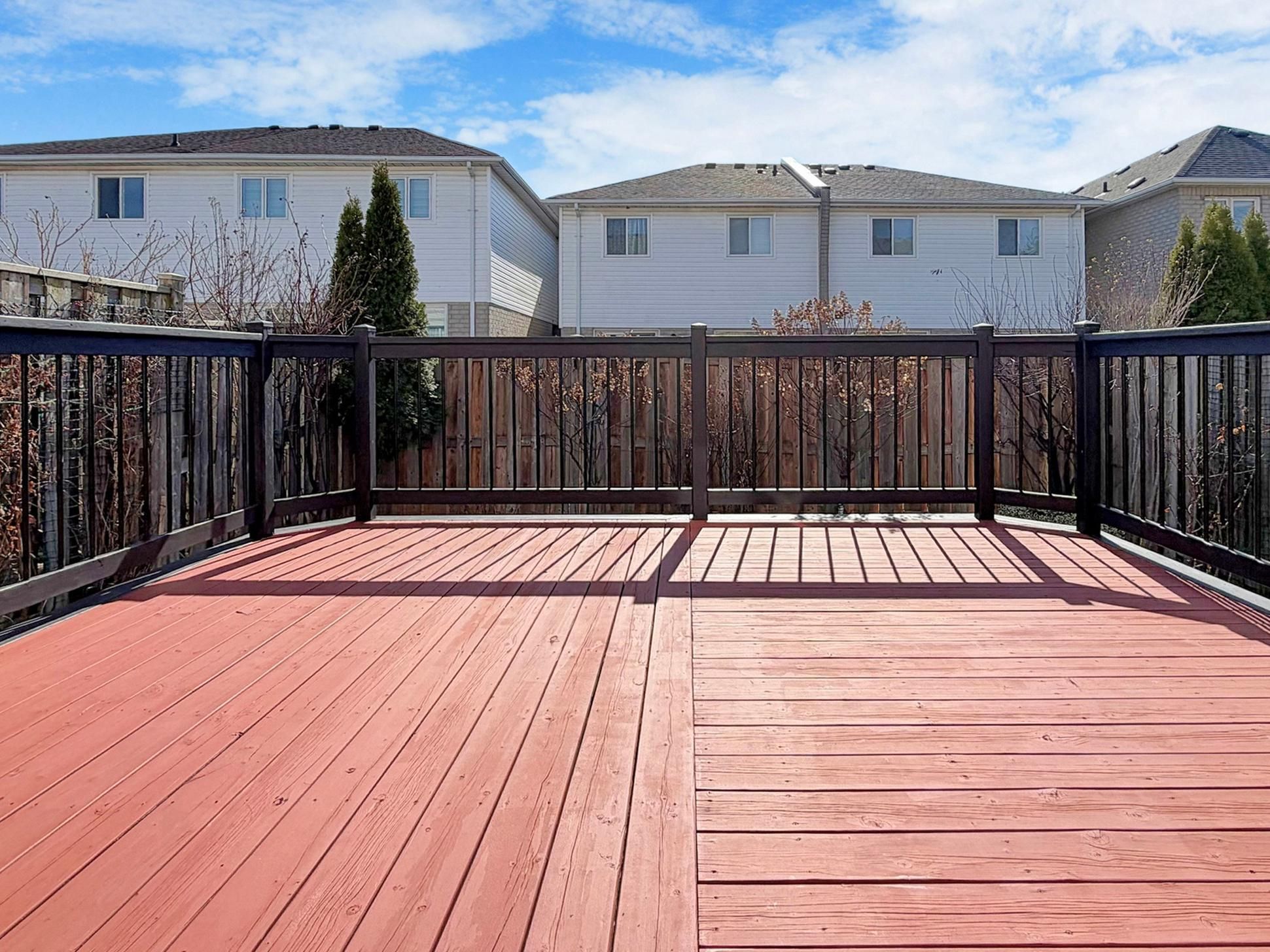 • Large, fully fenced backyard with a wood deck for relaxation.