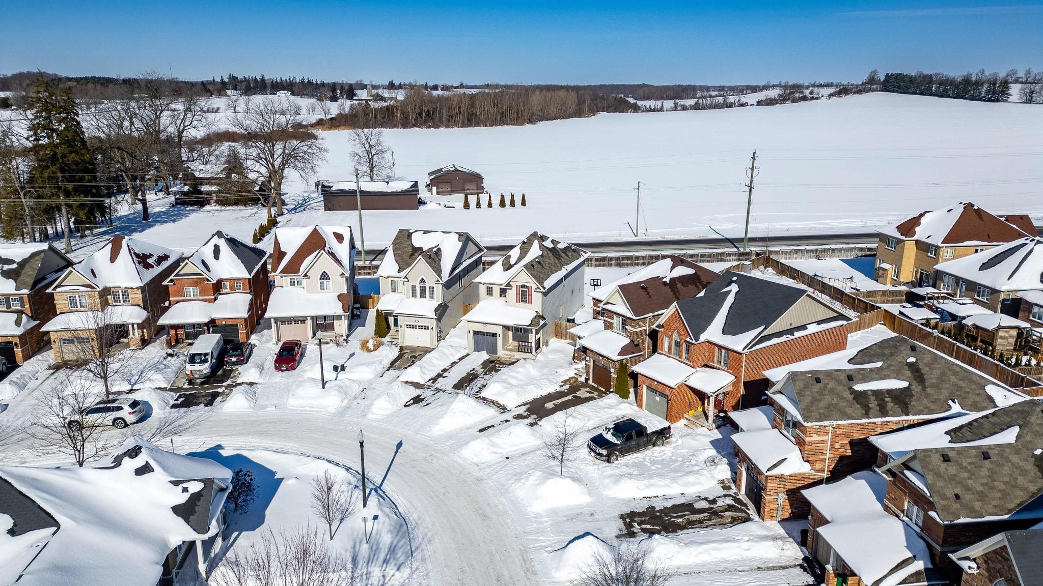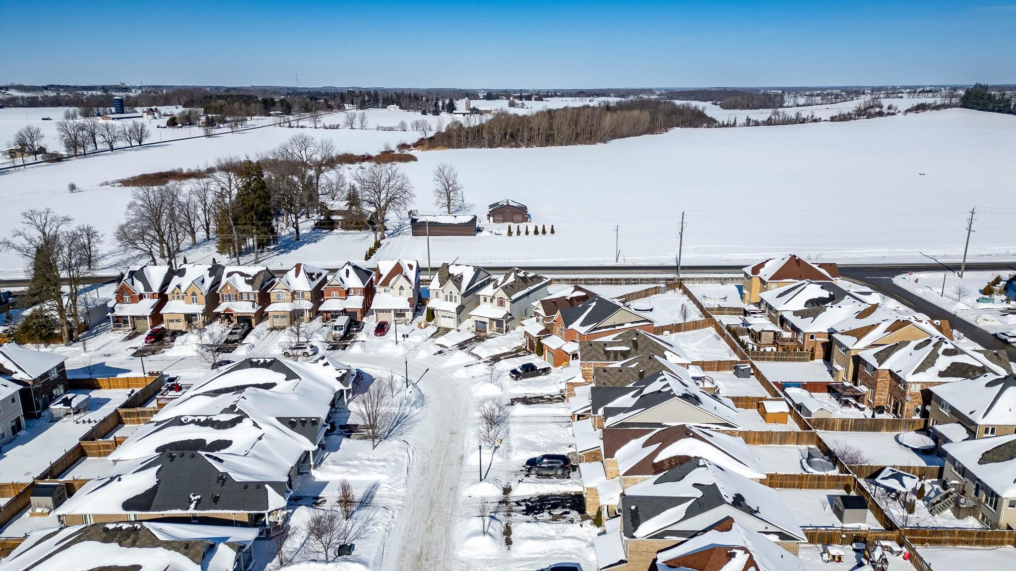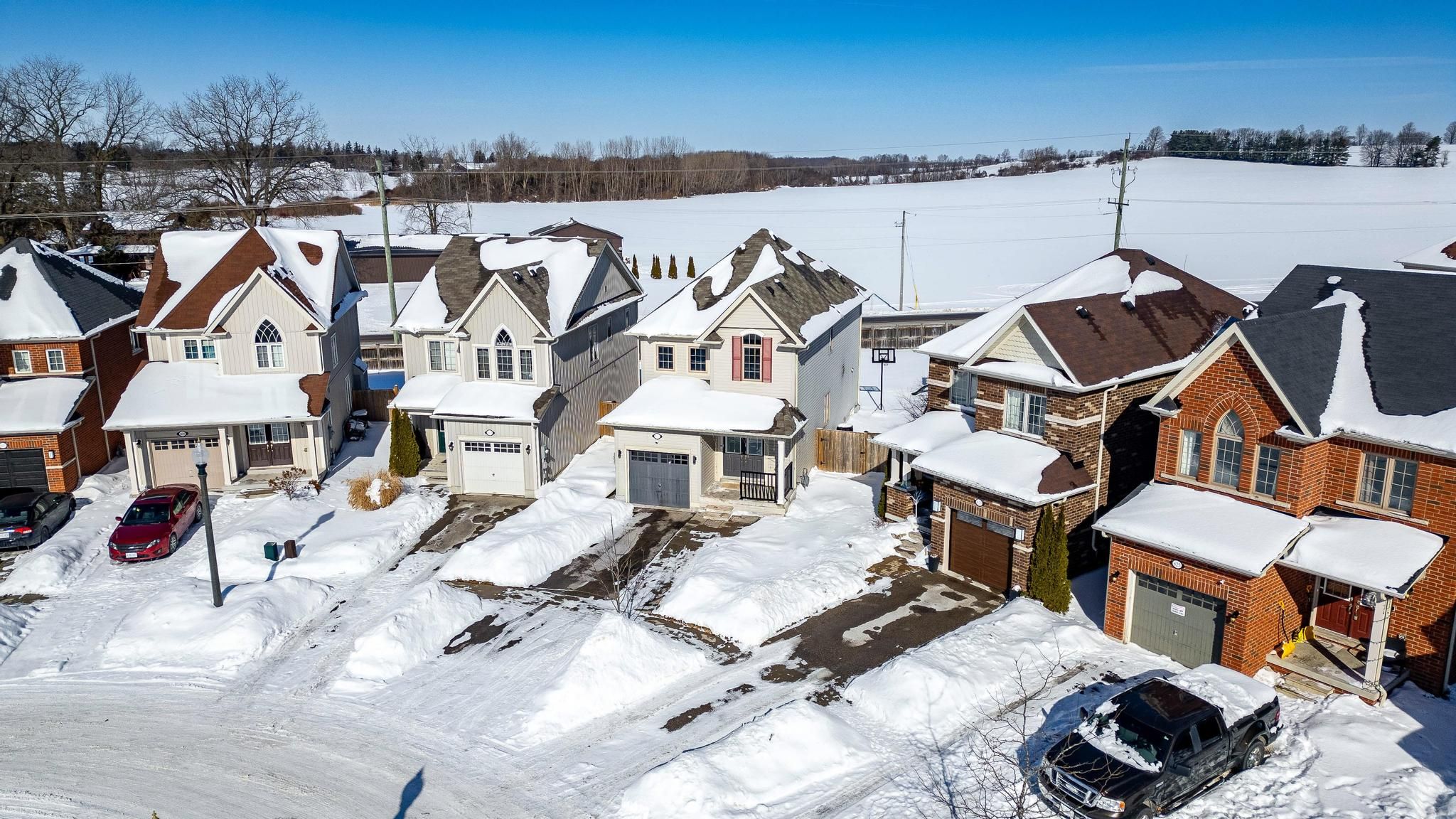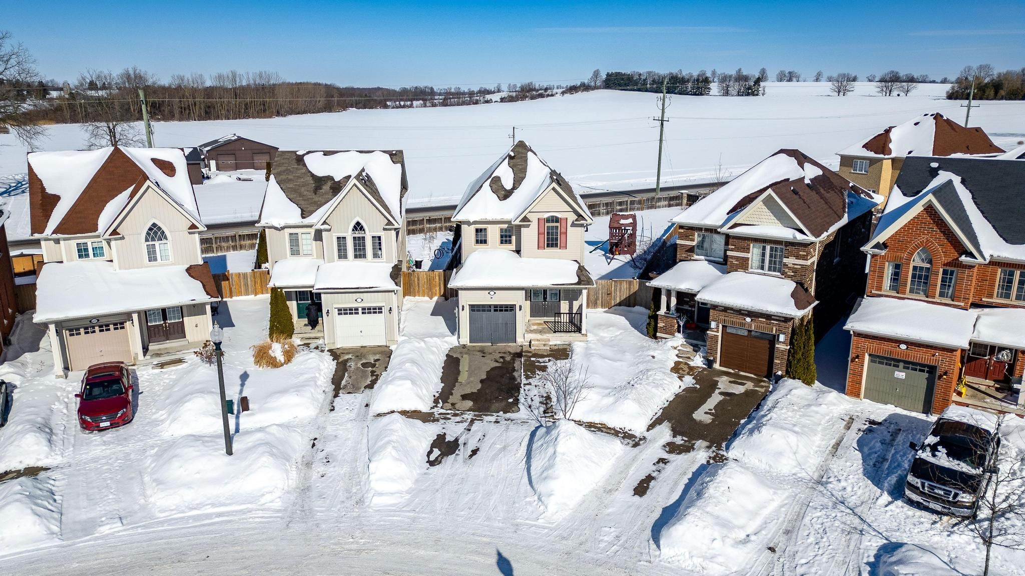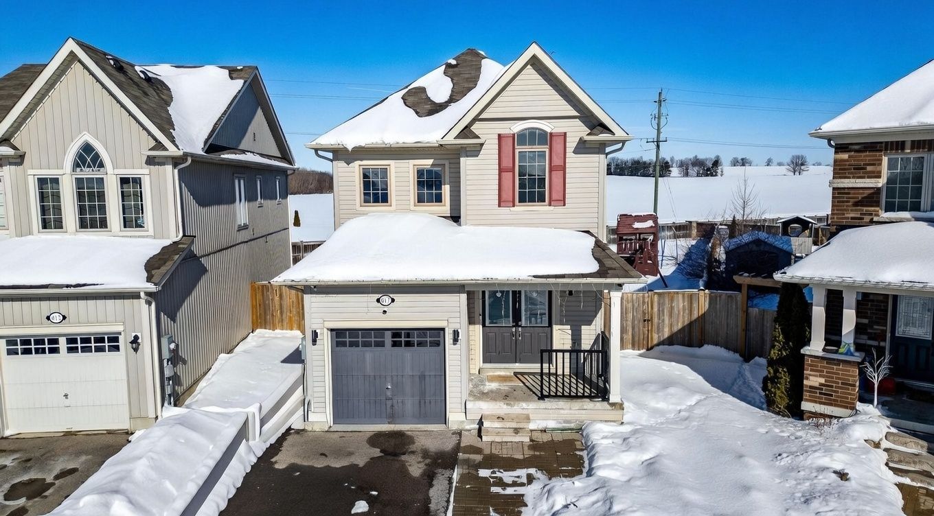 This inviting family residence offers roughly 1,800? Sq? Ft in a rapidly developing north woodstock neighbourhood just five miles from highway? 401 and the toyota plant, place of worship. The main level features hardwood flooring and oversized ceramic tiles in the kitchen, foyer and bathrooms. An open-concept layout showcases upgraded cabinetry, a dining area with patio doors, and a cozy family room with gas fireplace and mantel. Off the two-car garage is a mudroom/laundry space for added convenience. Upstairs, a solid walnut staircase leads to two spacious bedrooms and a generous primary suite with walk-in closet and luxury ensuite, complete with tiled glass walk-in shower and separate soaker tub. Outside, the extra-large pie-shaped, fully fenced yard backs onto open fields with no rear neighbours, offering beautiful sunset views over oxford's farmland.
