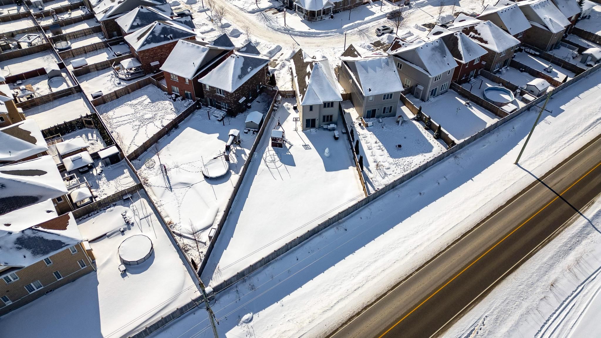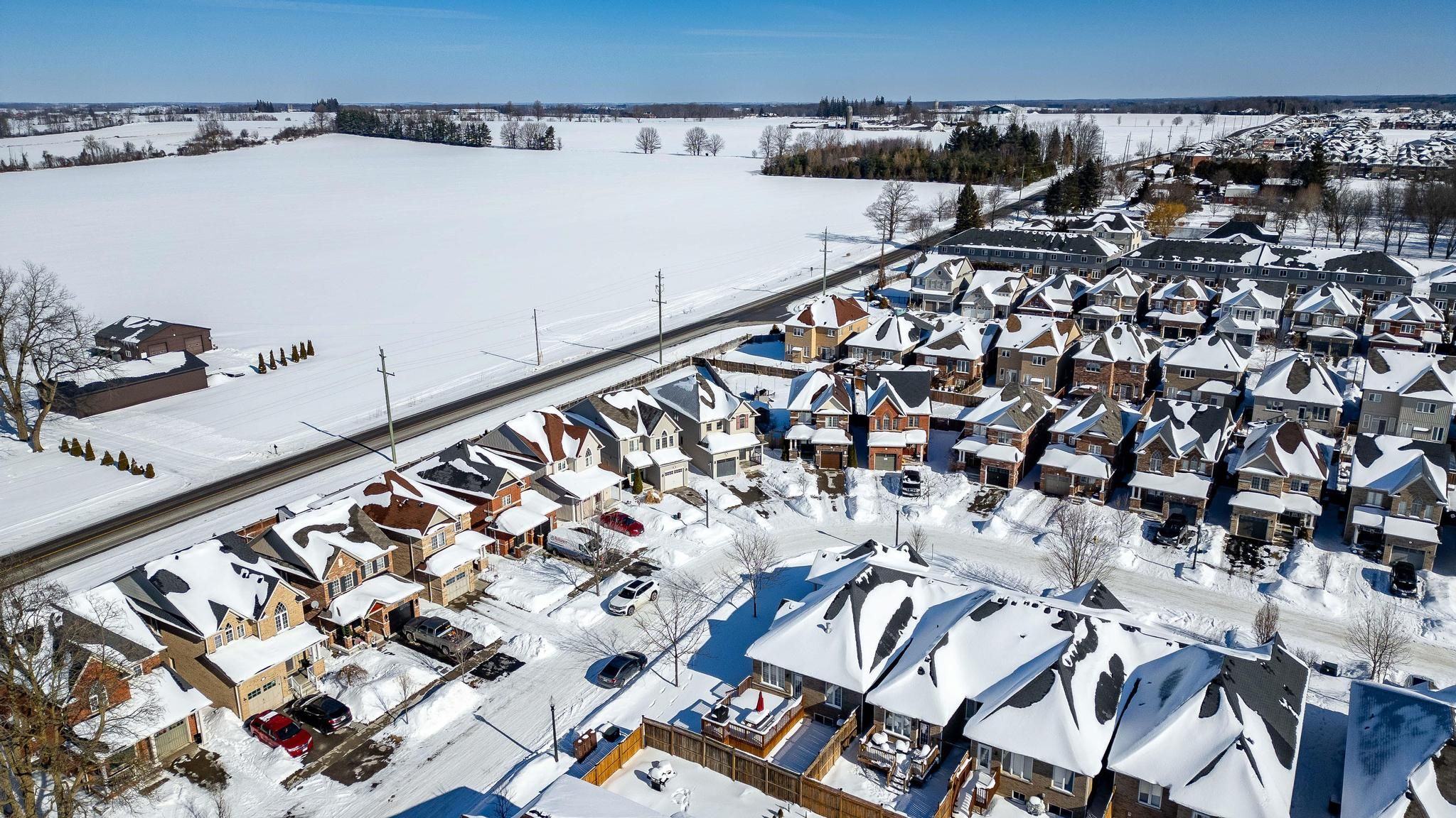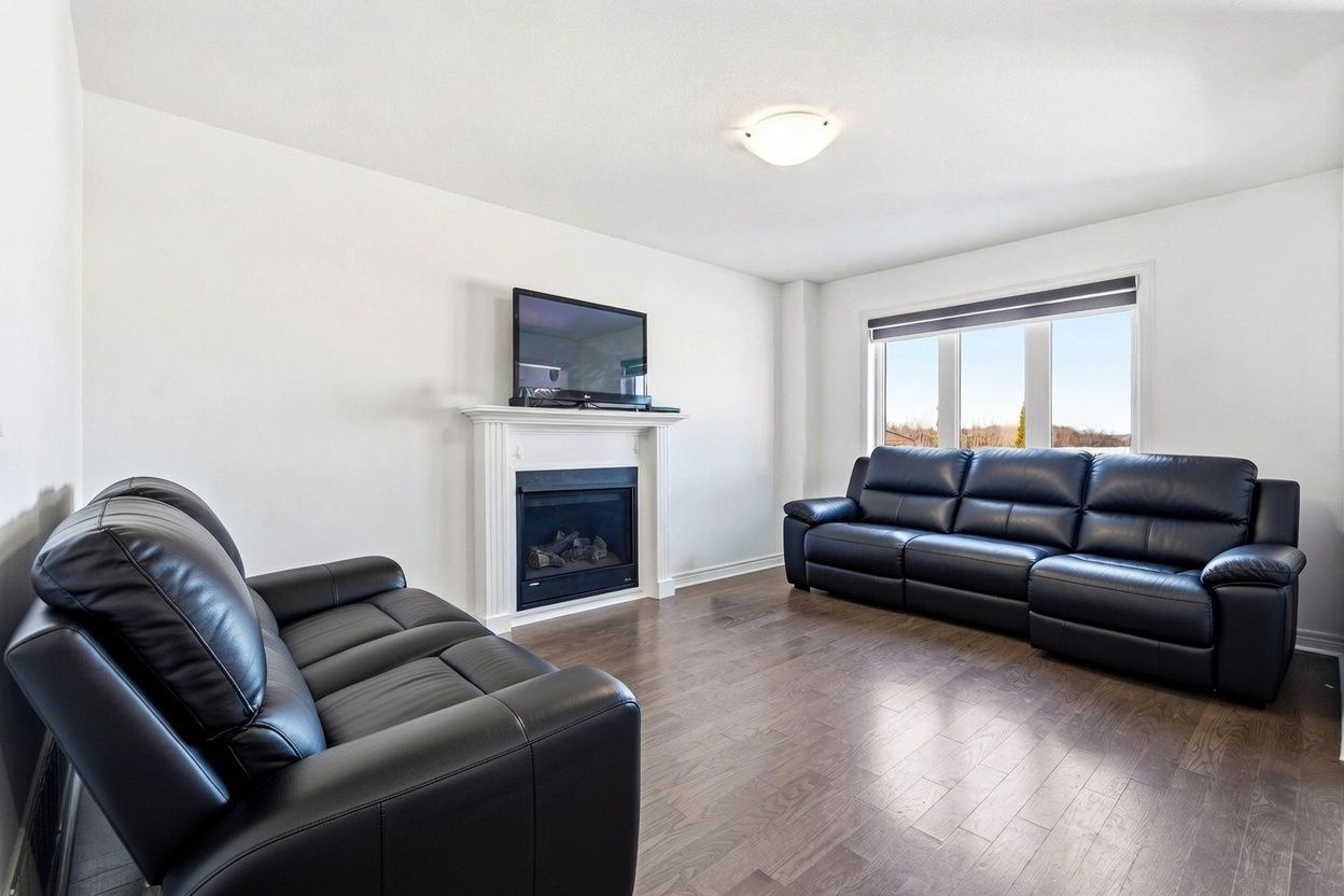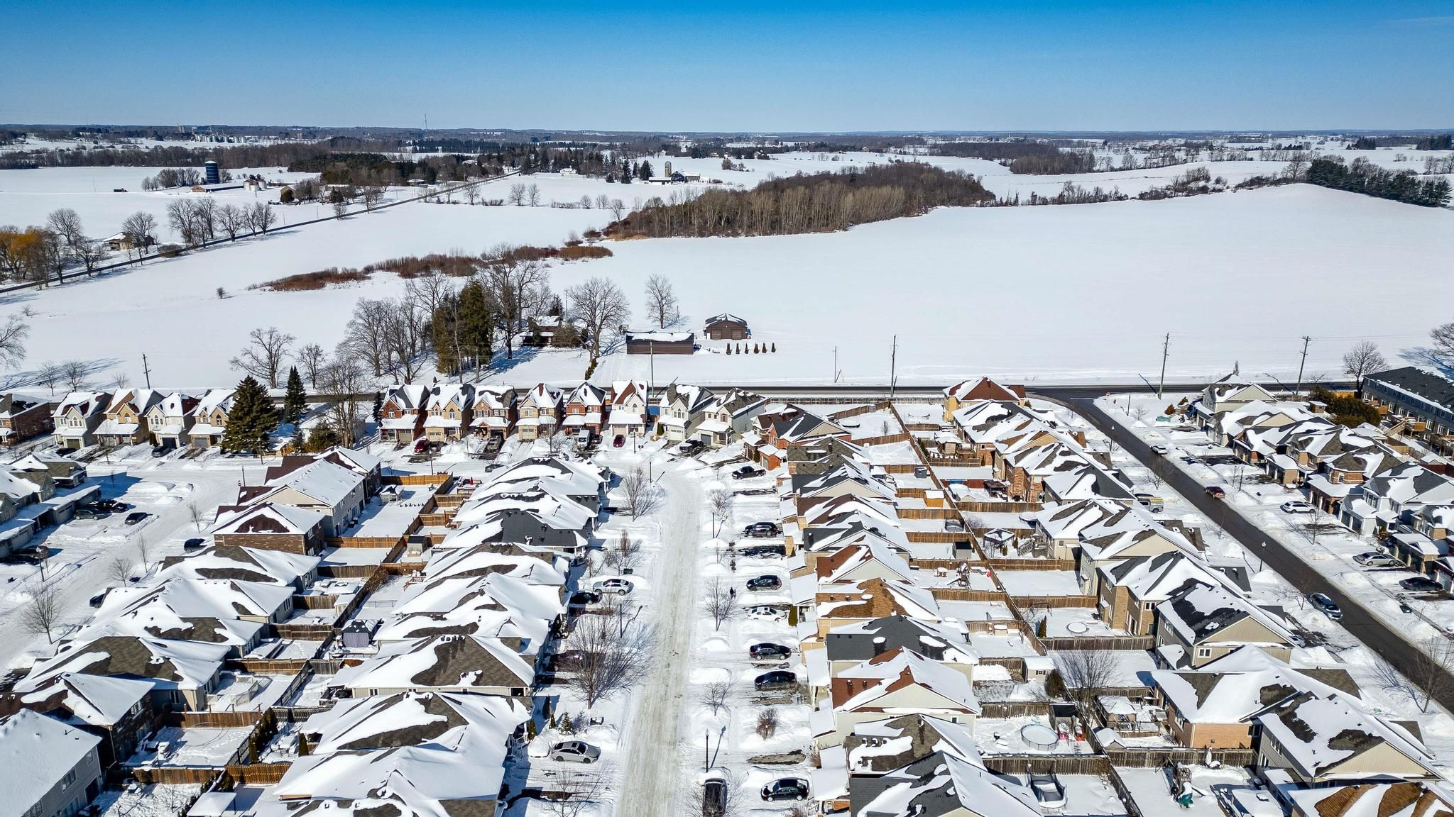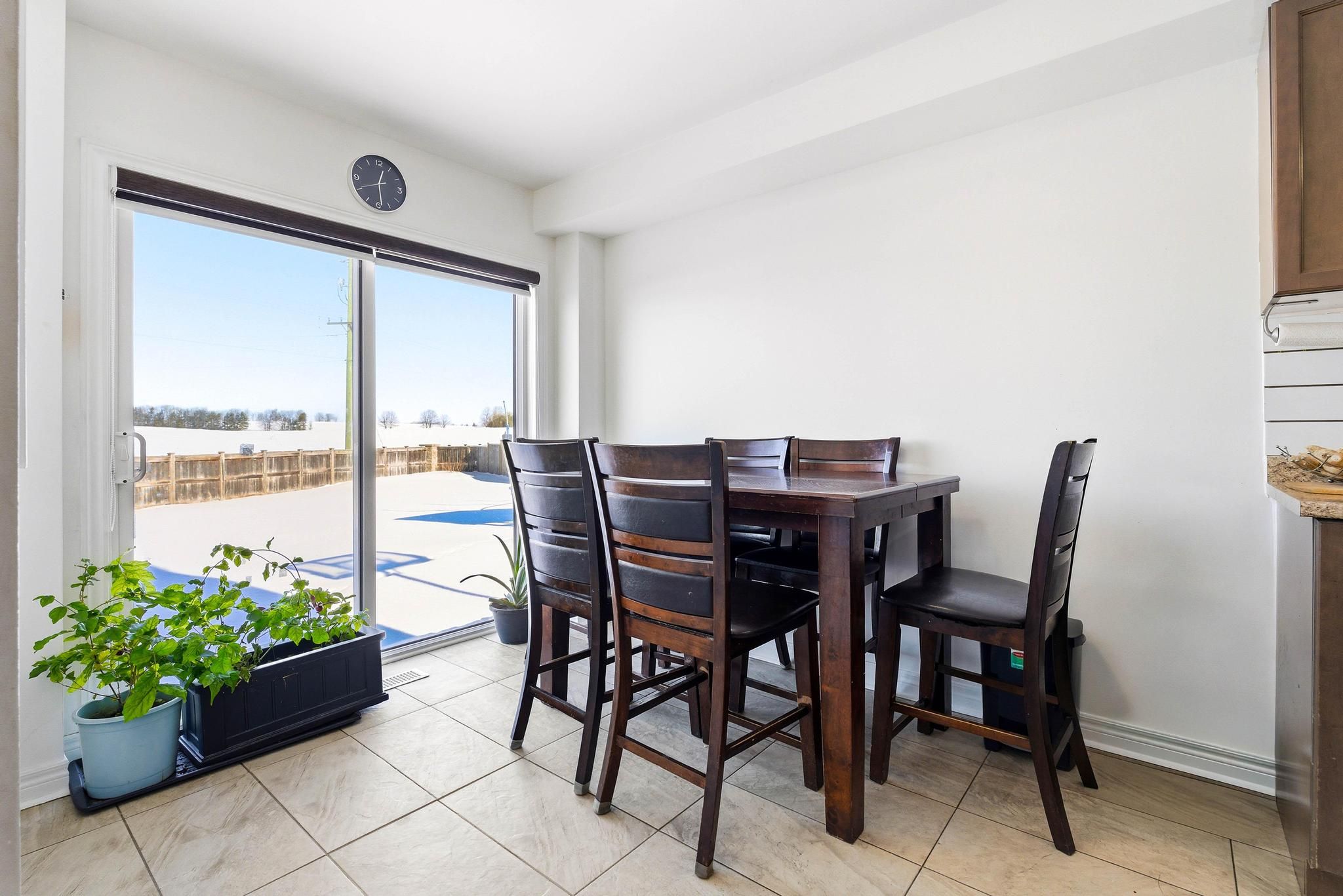 This inviting family residence offers roughly 1,800? Sq? Ft in a rapidly developing north woodstock neighbourhood just five miles from highway? 401 and the toyota plant, place of worship. The main level features hardwood flooring and oversized ceramic tiles in the kitchen, foyer and bathrooms. An open-concept layout showcases upgraded cabinetry, a dining area with patio doors, and a cozy family room with gas fireplace and mantel. Off the two-car garage is a mudroom/laundry space for added convenience. Upstairs, a solid walnut staircase leads to two spacious bedrooms and a generous primary suite with walk-in closet and luxury ensuite, complete with tiled glass walk-in shower and separate soaker tub. Outside, the extra-large pie-shaped, fully fenced yard backs onto open fields with no rear neighbours, offering beautiful sunset views over oxford's farmland.