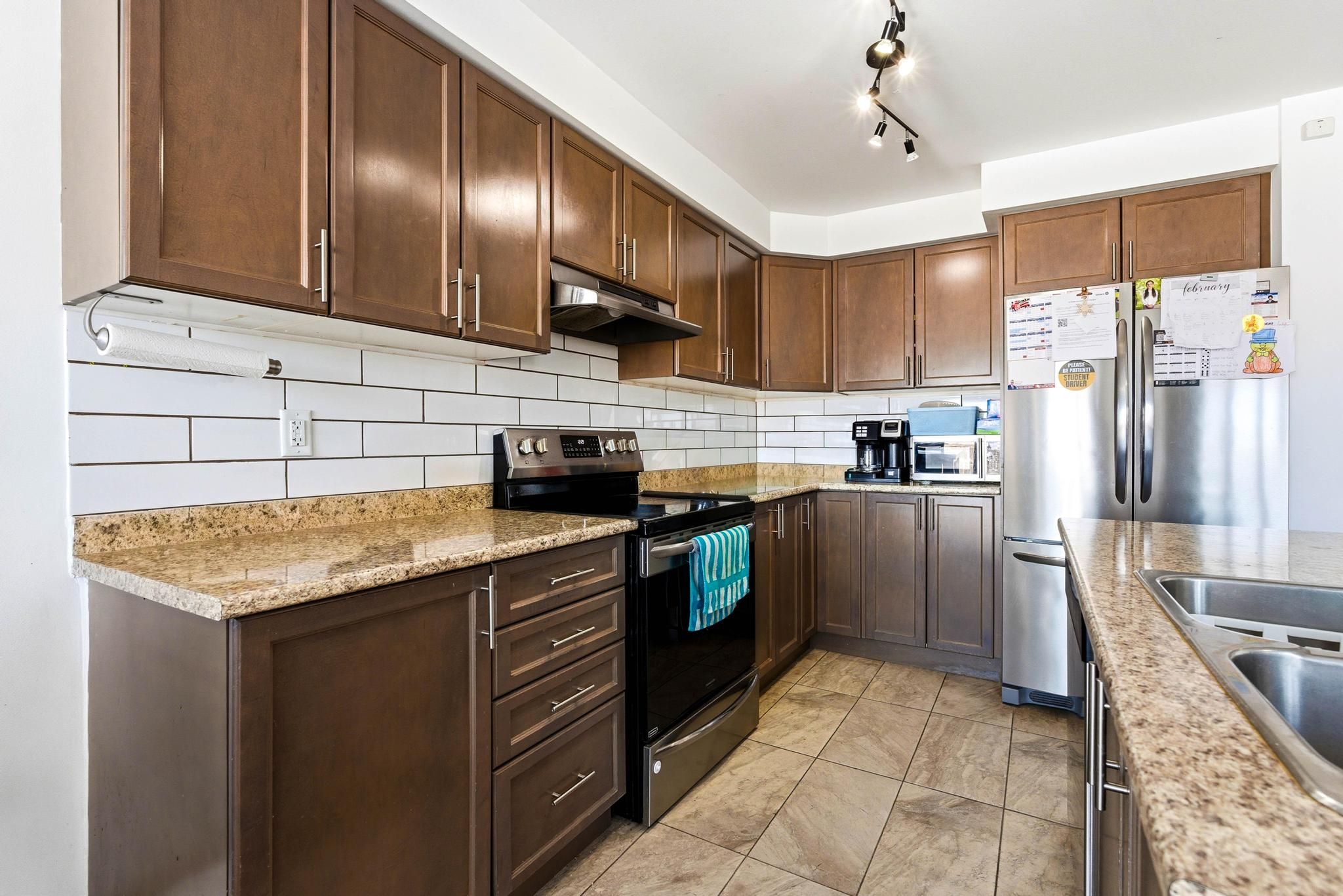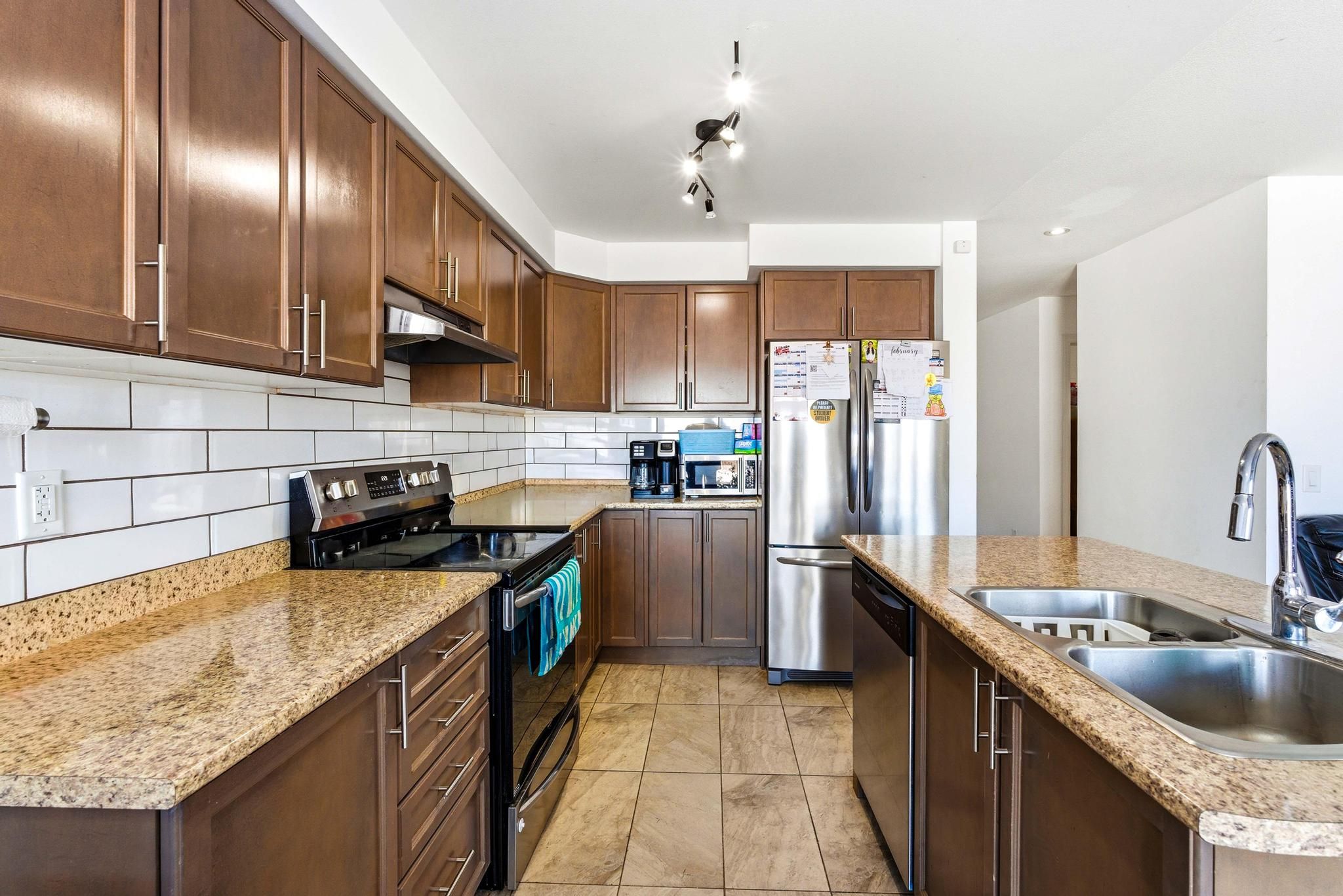 • Open-concept main level with hardwood and upgraded cabinetry.