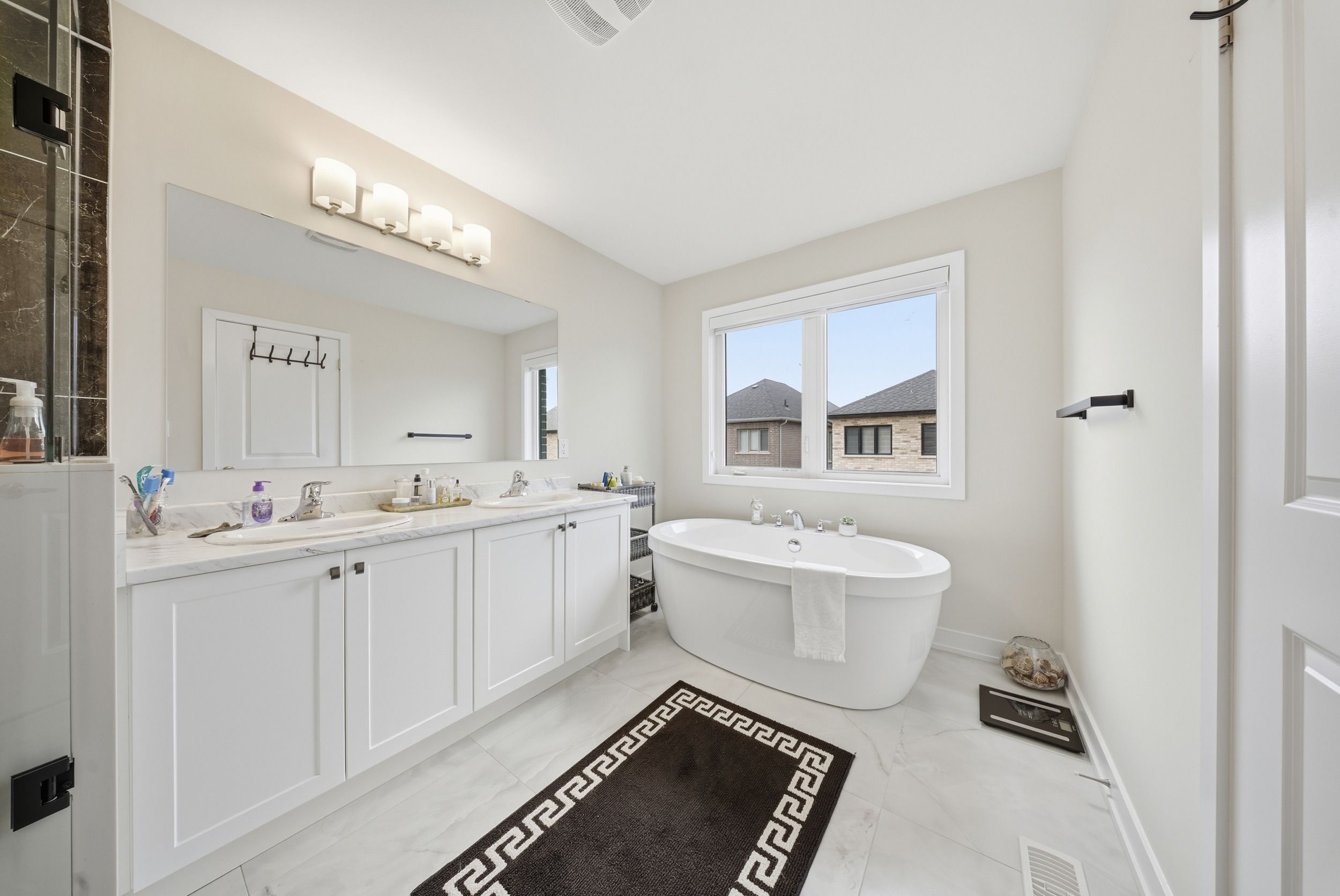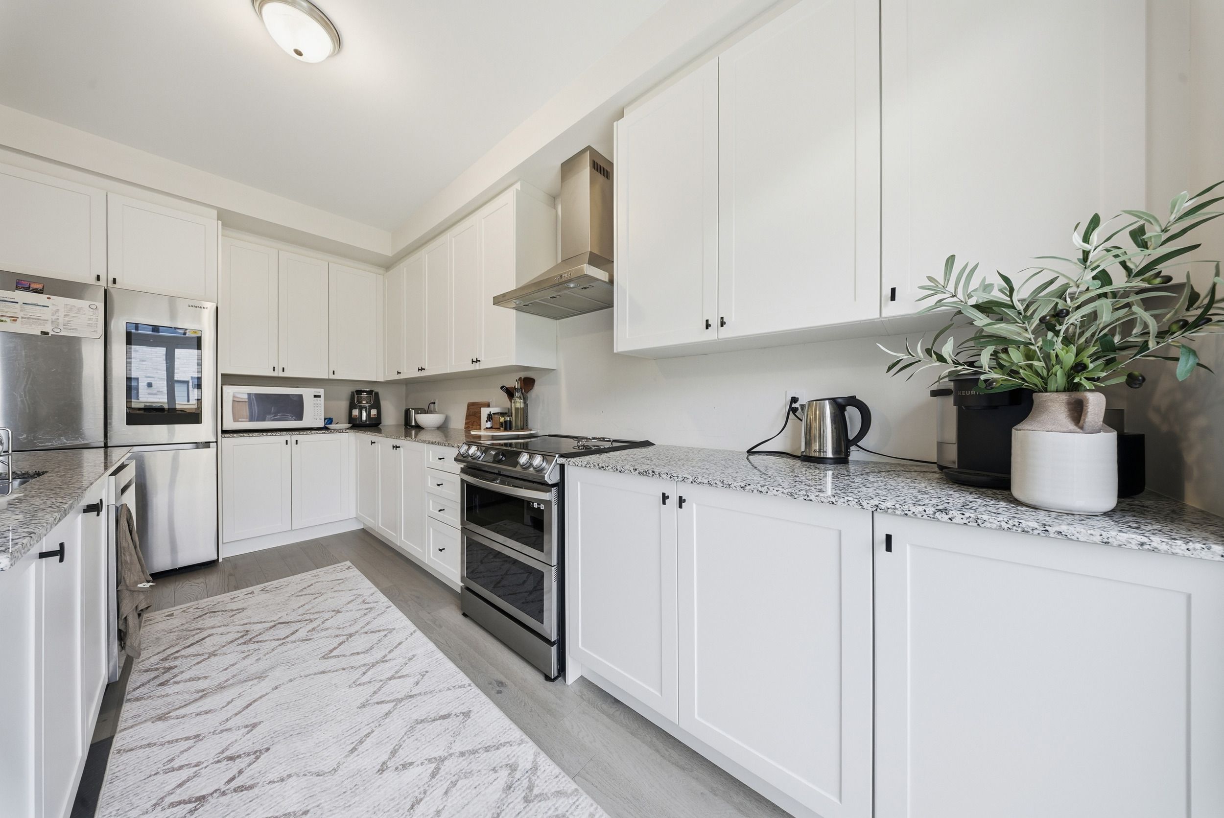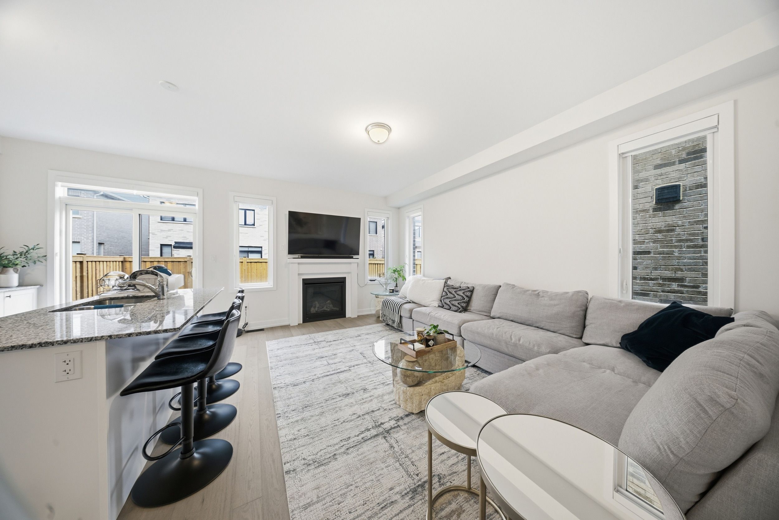 Welcome to this stunning and beautifully upgraded 3-bedroom, 3-bathroom home, located in one of milton's most desirable neighbourhoods. Less than 2 years old, this home offers a perfect blend of modern style, comfort, and convenience. Ideal for young families or anyone looking for a move-in ready home in a welcoming neighbourhood. Step inside and be greeted by a bright, open-concept main floor featuring over $25,000 in builder upgrades. The spacious living and dining areas include rich hardwood flooring, a cozy gas fireplace, and large windows that fill the space with natural light. The kitchen is beautifully finished with stainless steel samsung appliances, sleek cabinetry, and granite countertops. Upstairs, the primary suite includes a relaxing 5-piece ensuite with a frameless glass shower, soaker tub, and walk-in closet. Two additional bedrooms provide plenty of space for children, guests, or a home office. The home also features modern zebra blinds throughout, adding a stylish finishing touch. Enjoy the convenience of an second-floor laundry, and a location that truly supports family living - just steps from parks, schools, shopping, and everyday amenities. Move right in and start making memories in this modern, comfortable, and perfectly located home!