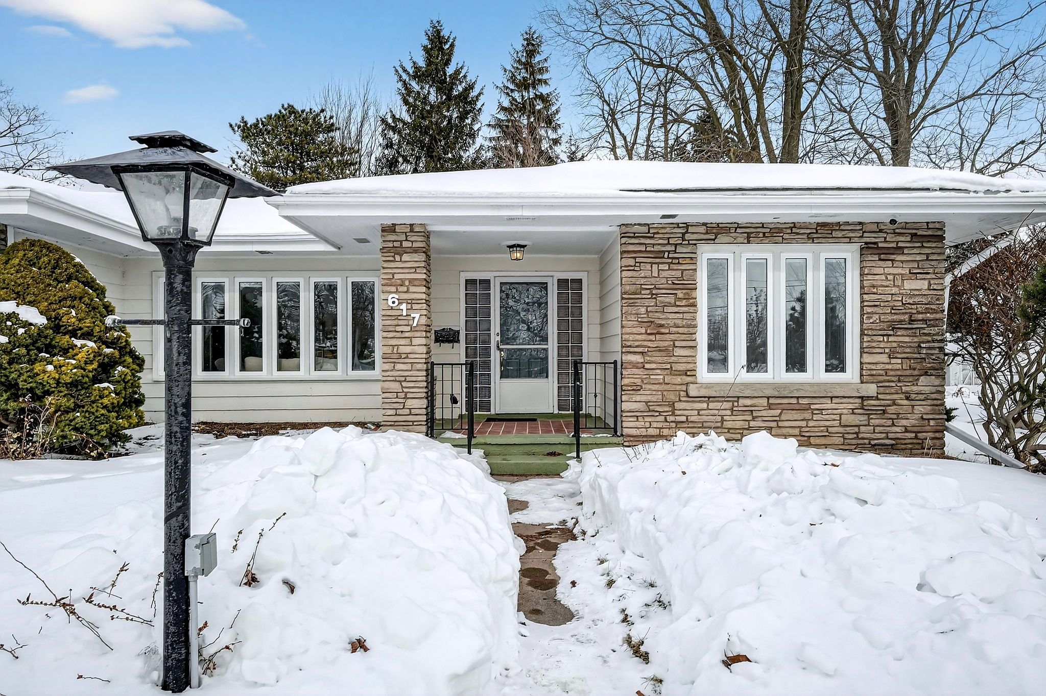 Welcome to 617 lock st w - an impressive bungalow (1472sf) in the most perfect location! This 4 bedroom home sprawls out over a generous 66x174' lot with lion's park directly across the road featuring tennis courts, pickleball, skatepark, pool, baseball diamond, & playground! A standout opportunity to purchase in this area, this home boasts great curb appeal with a paved driveway, elegant stone façade, crisp white siding, and mature landscaping. Step through the covered front porch into a welcoming foyer that flows effortlessly connect to a large living room with a cozy gas f/p - and abundant south facing sunlight! A secluded & versatile bedroom is tucked off the living - could serve as a home office. Eat-in kitchen includes white cabinetry, sleek black countertops, & space for the whole family. On the west side of the home features another south facing bedroom with a 2pc bath. A large mudroom & laundry room combo that leads to a 9x13 sunroom completes this side of the home. The east wing of the home has 2 additional bedrooms, a full 4pc main bath, and a large master that includes 3pc ensuite with direct access to the rear-yard. Gorgeous backyard with lots of mature trees. Just getting started in home ownership or looking to downsize & simplify? Don't miss your opportunity to make it yours!