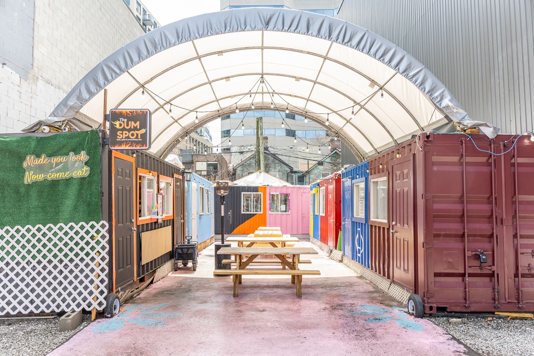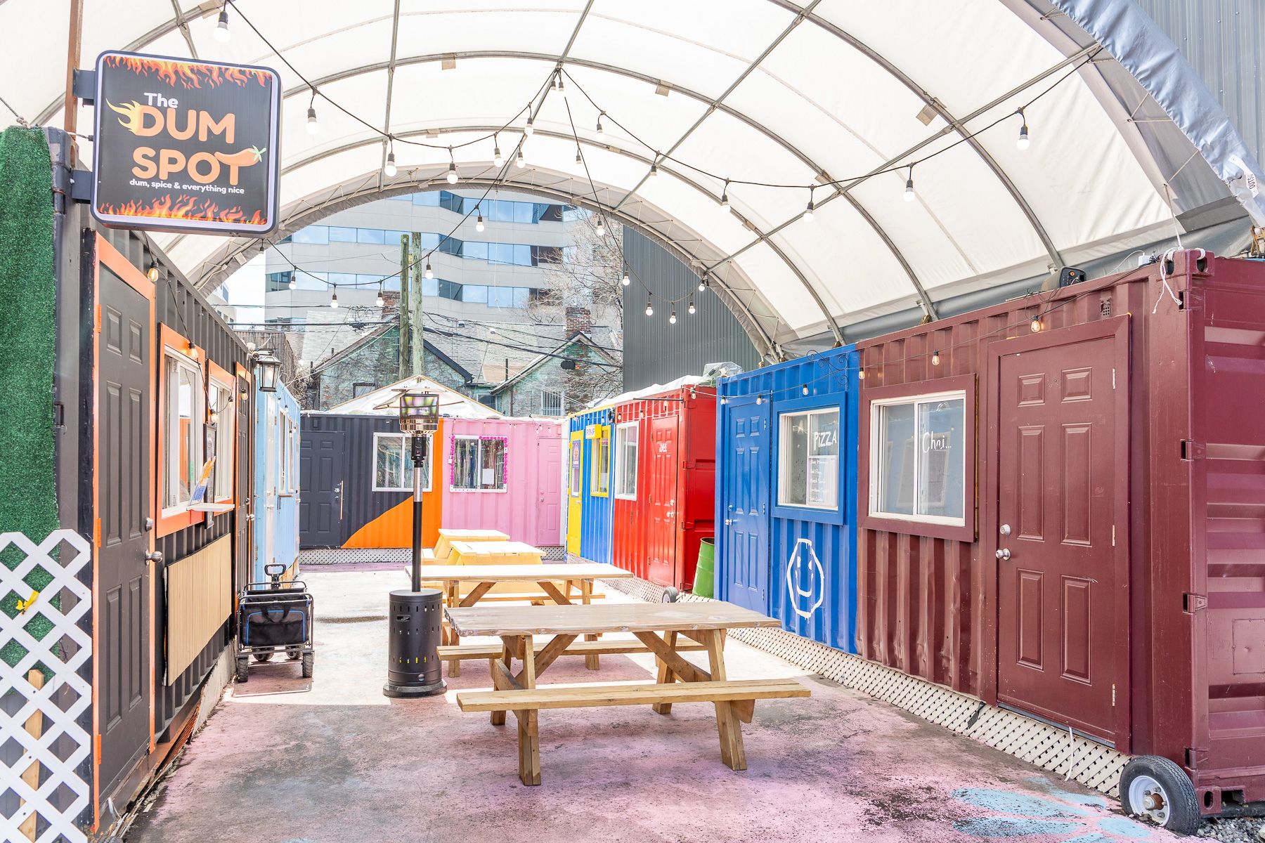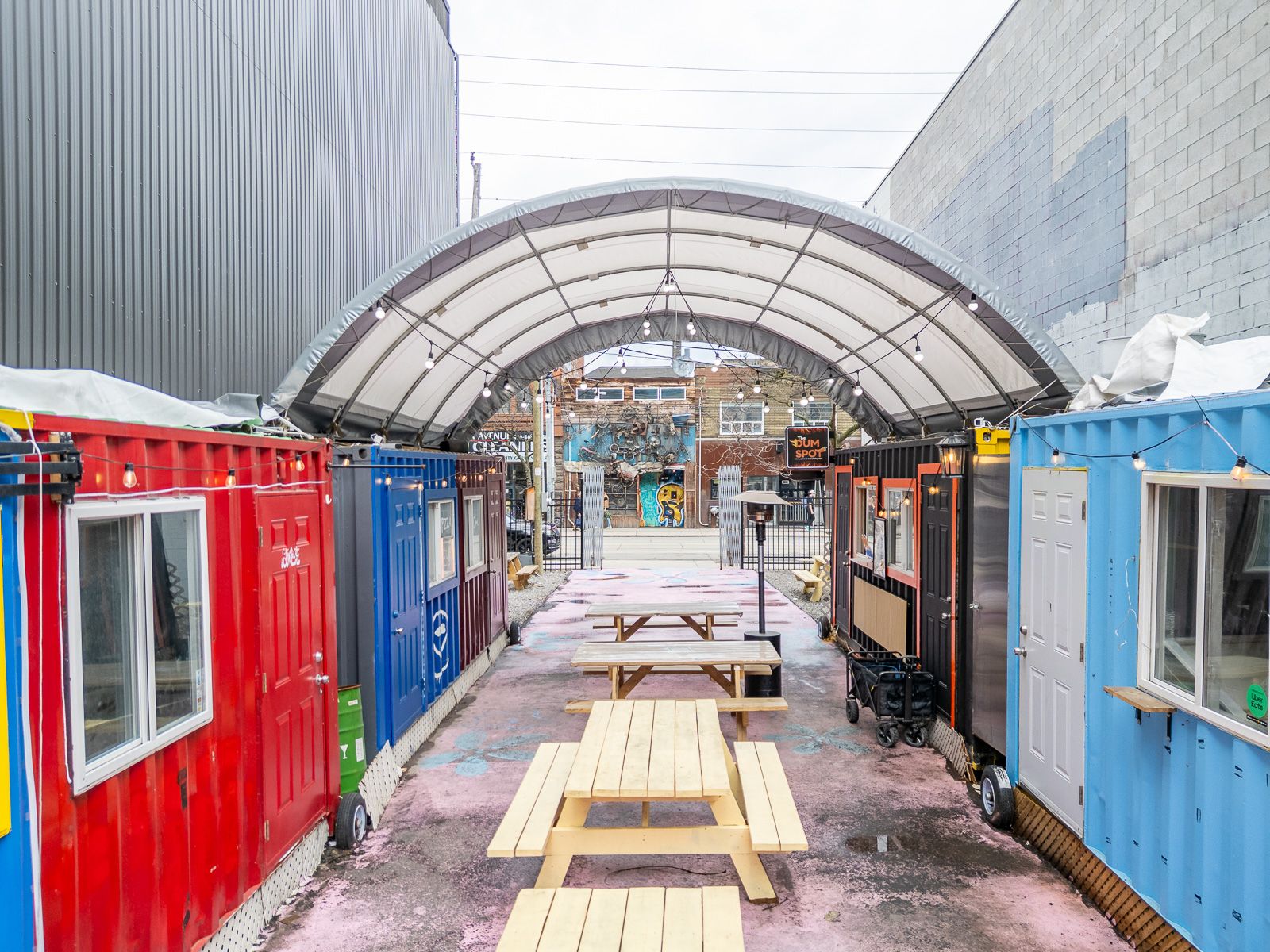 • Converted shipping containers offer affordable kitchen and retail spaces.
