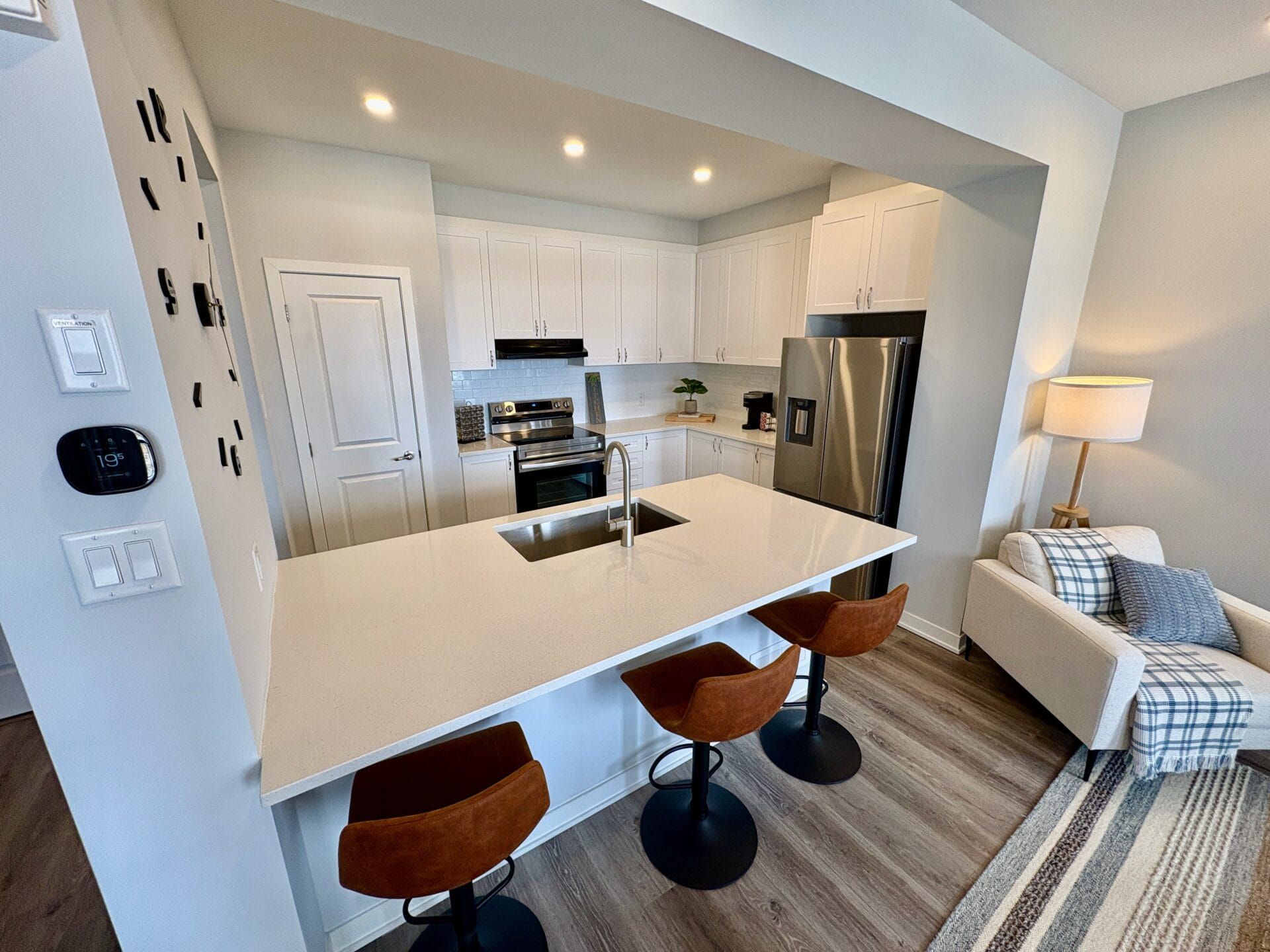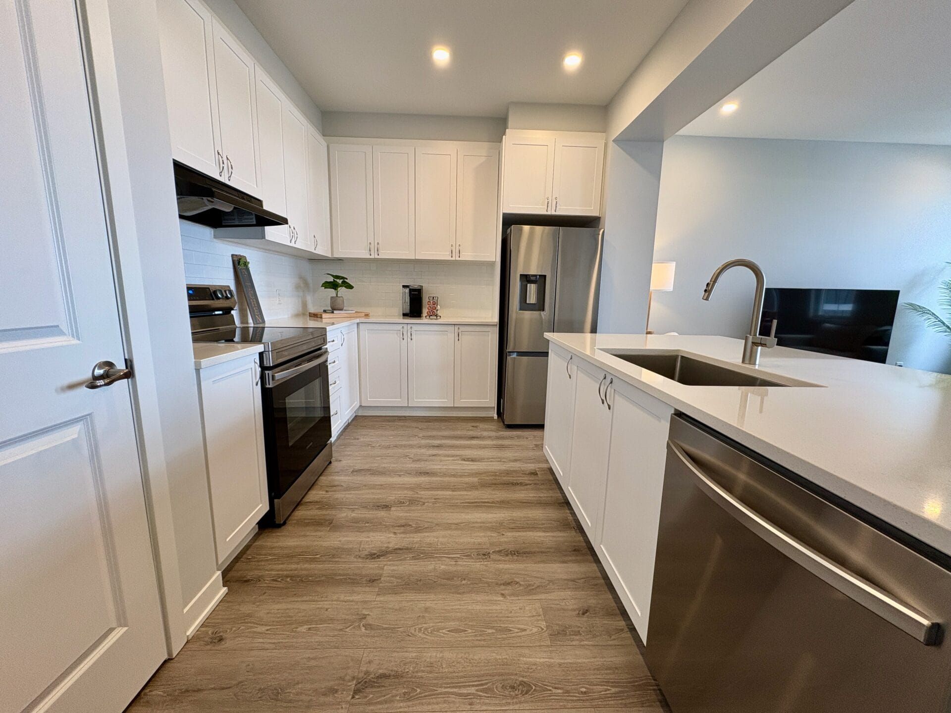 • Bright open-concept kitchen with quartz countertops and full appliance package.