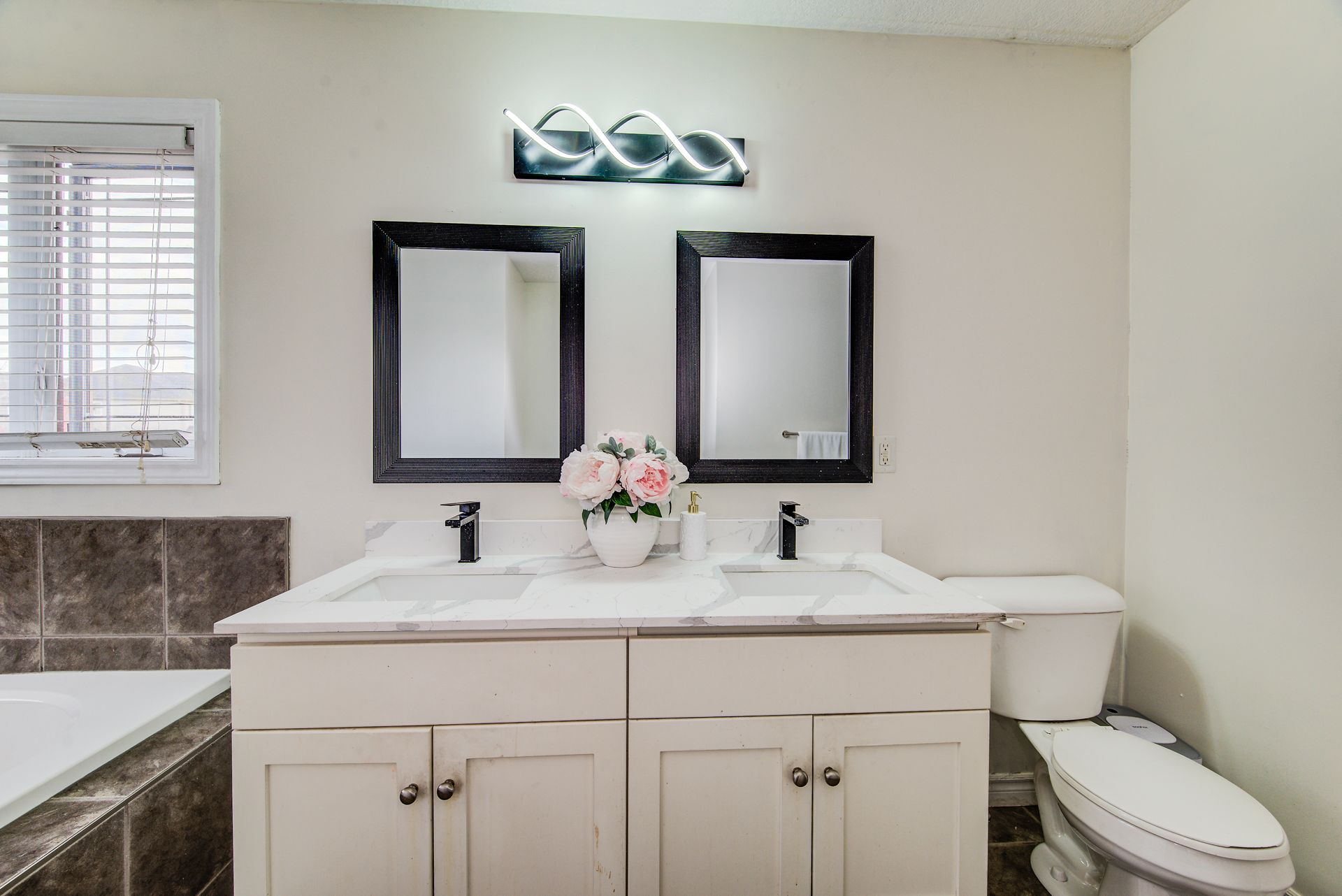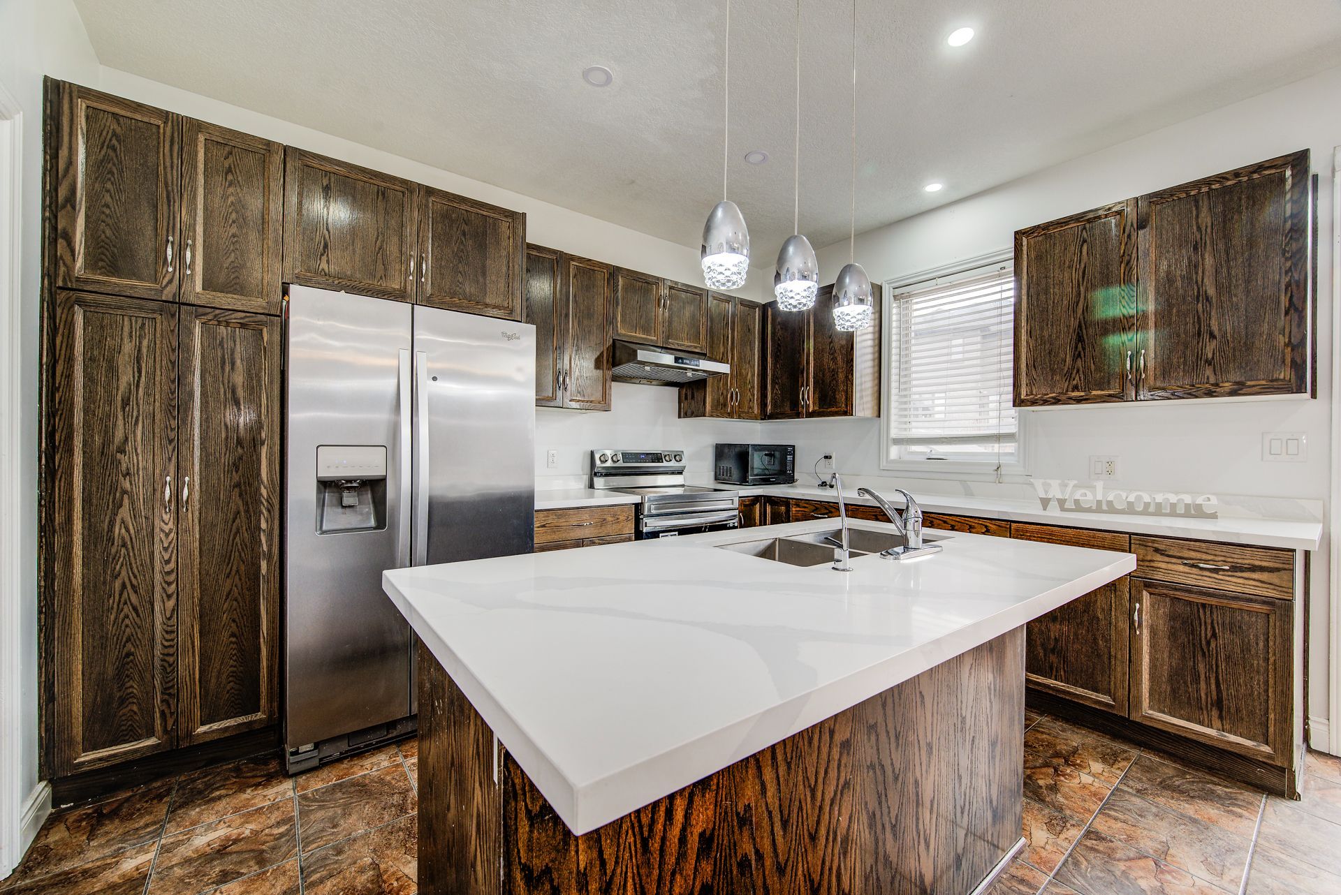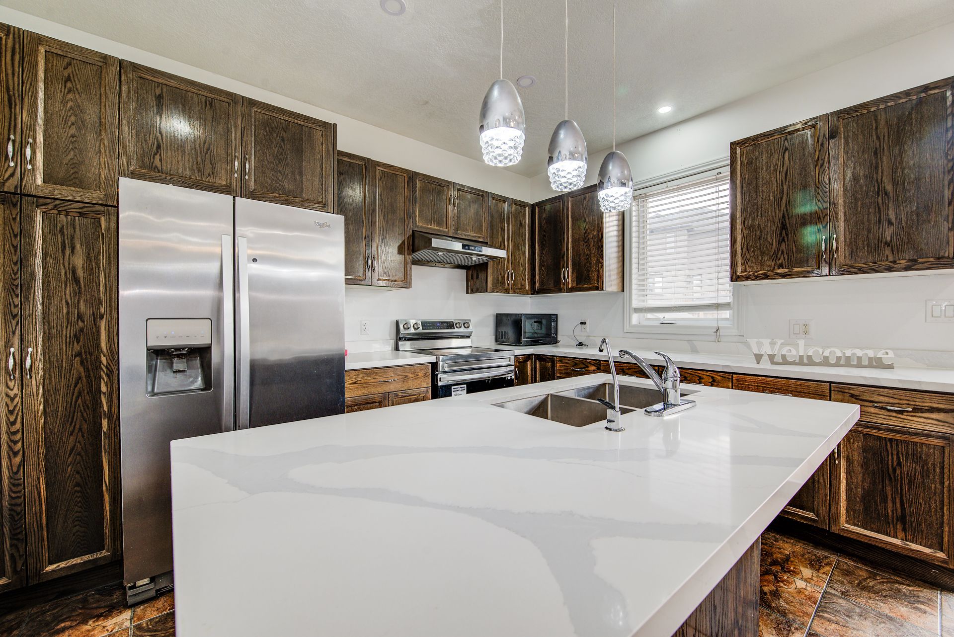• Open-concept kitchen with quartz countertops, ideal for family meals.