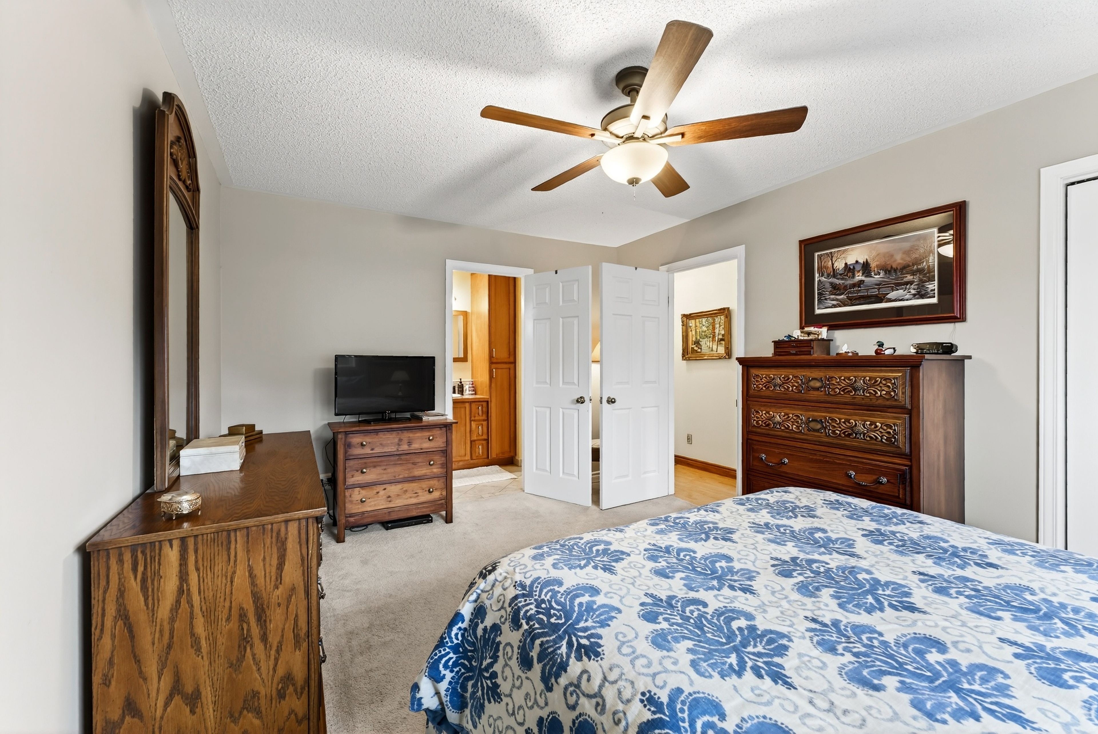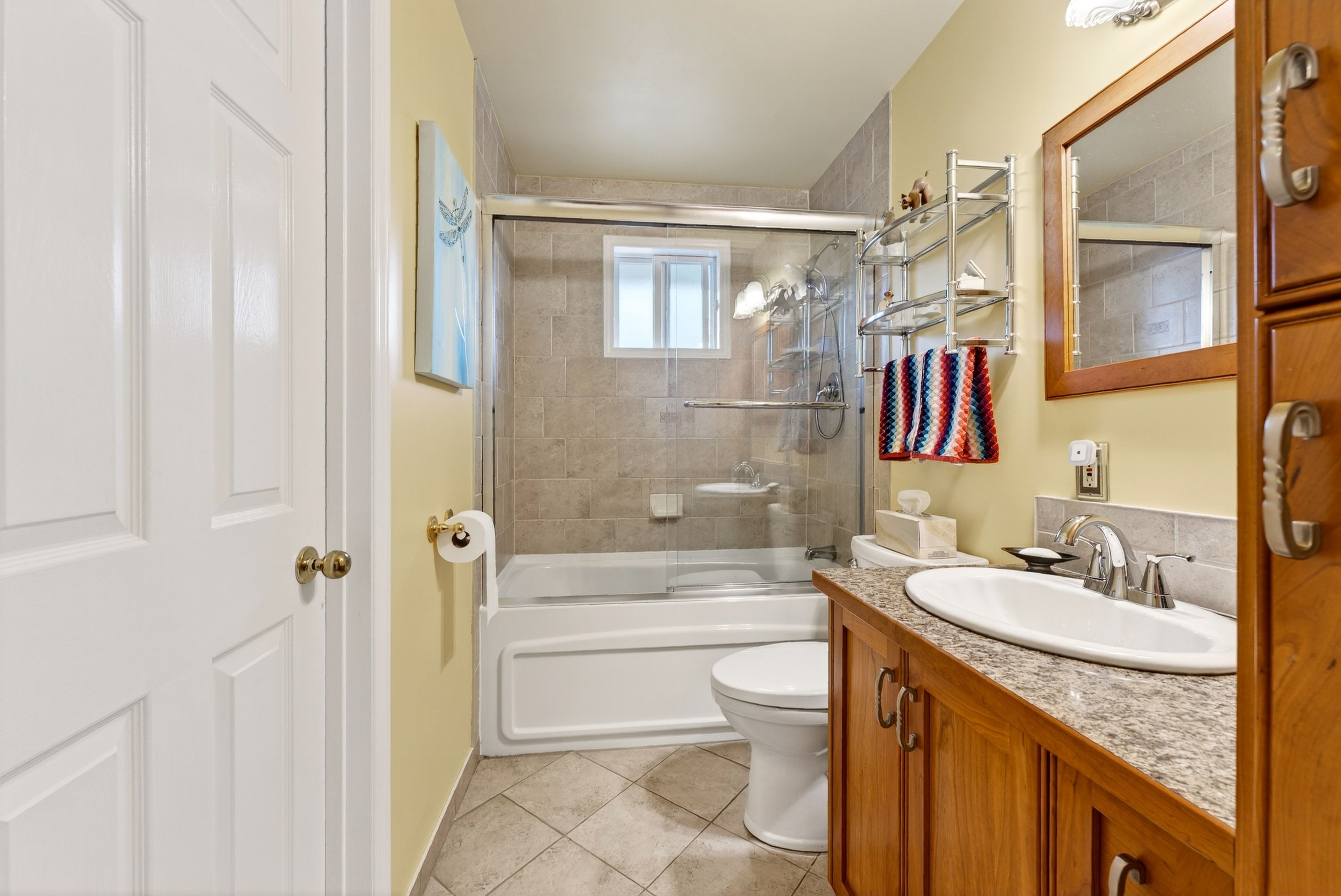 • Spacious lower level with rec room, cozy gas fireplace, and workshop area.