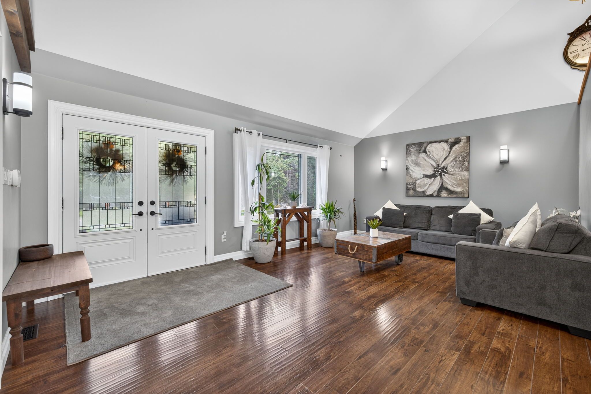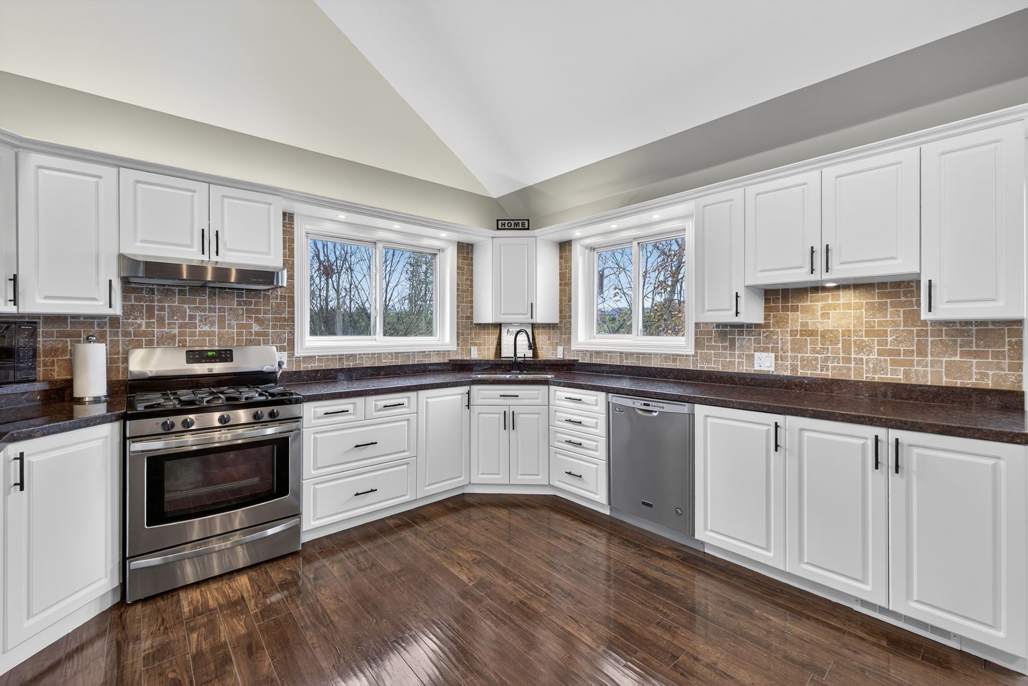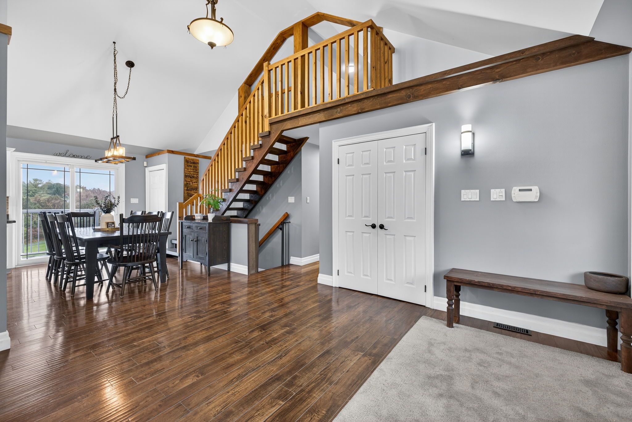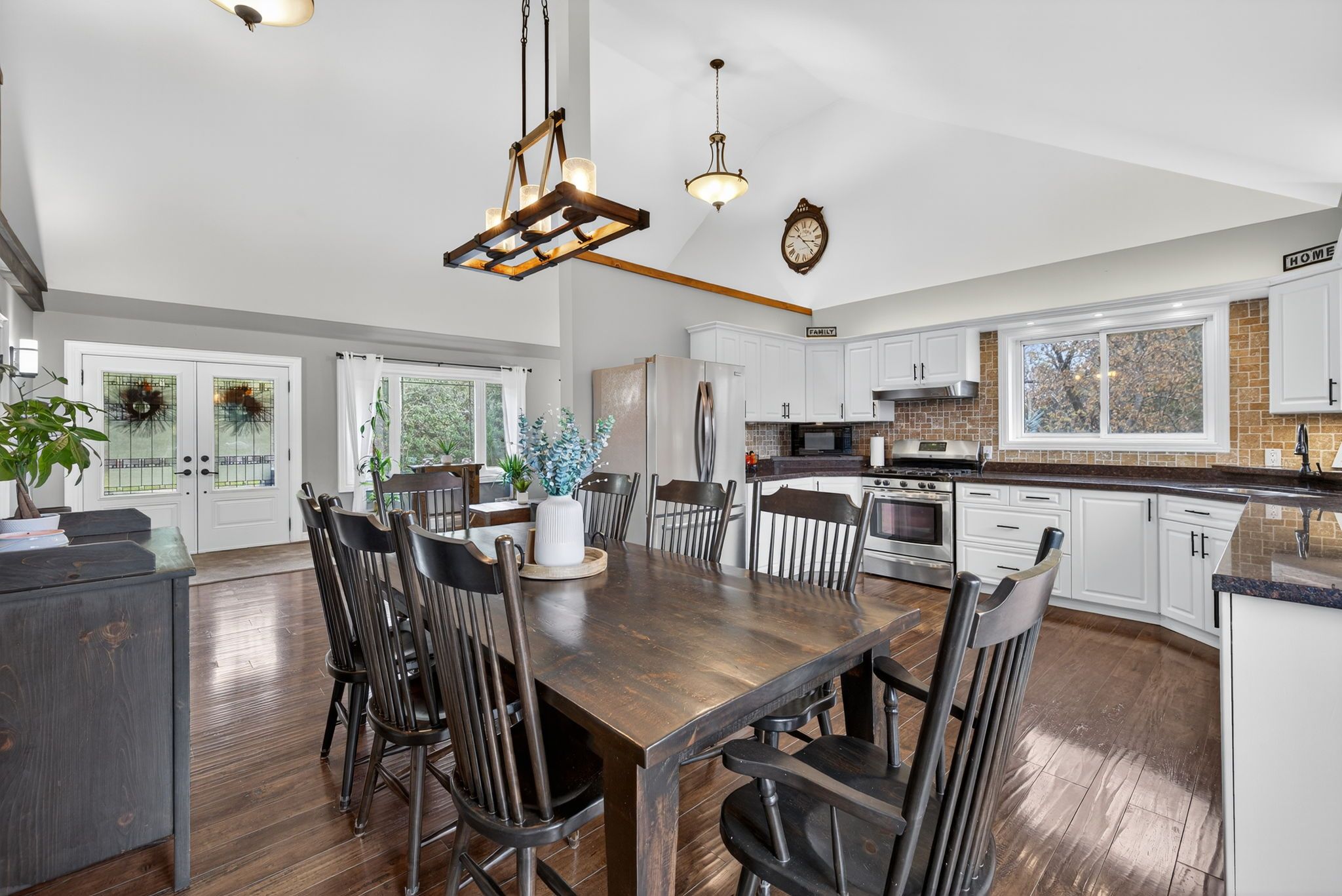 • Bright open-concept main floor with 16' cathedral ceilings and large windows.