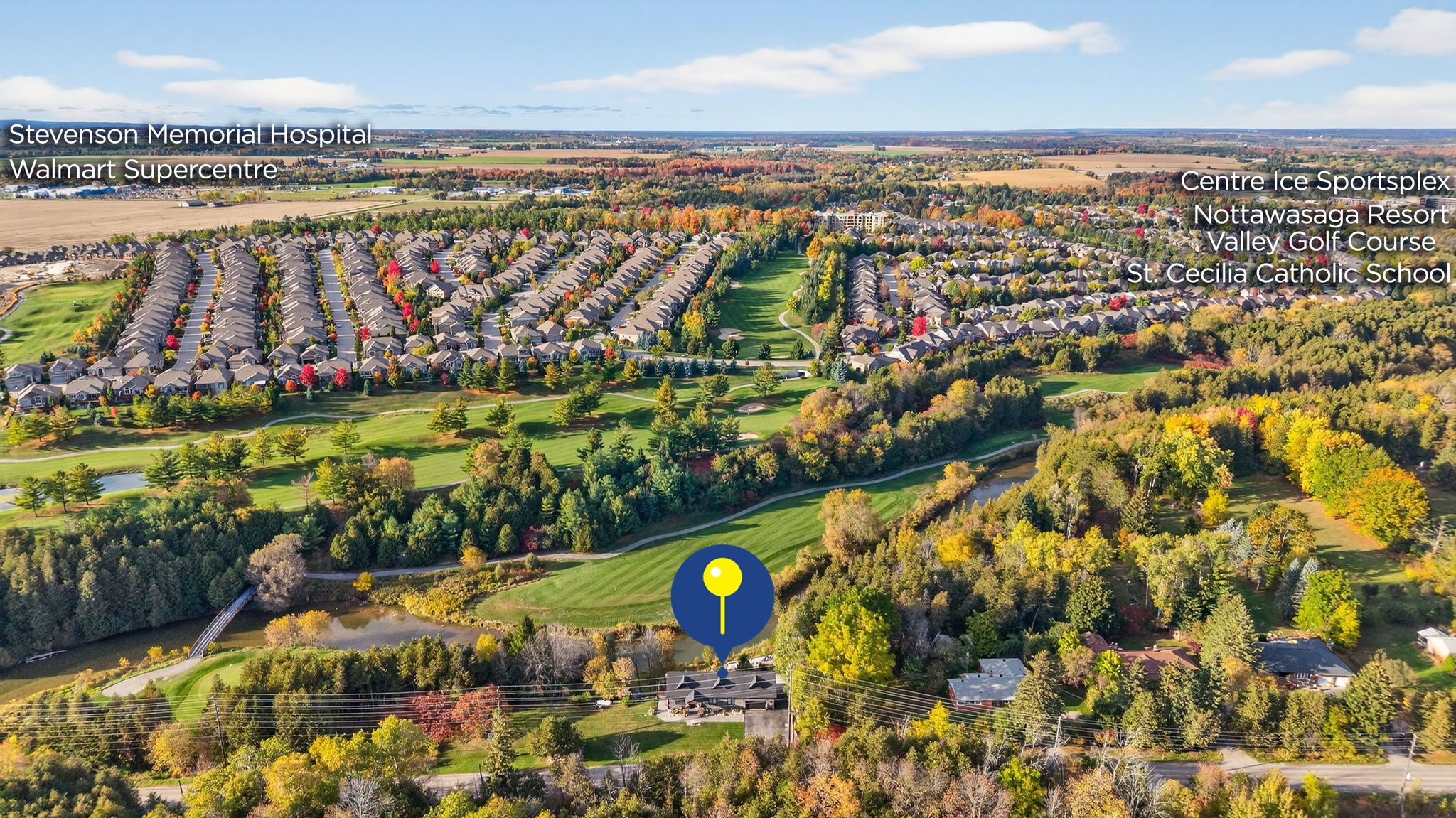 A beautifully appointed custom-built bungalow fronting directly on the scenic nottawasaga river with breathtaking views of the water and the lush greens of nottawasaga inn resort golf club just beyond your backyard. Located in new tecumseth, this property offers the perfect blend of privacy, nature, and convenience. Step inside to a bright open-concept main floor featuring stunning 16' cathedral ceilings and expansive windows that flood the home with natural light while showcasing beautiful river views. The updated kitchen features granite counters, backsplash, high-end stainless steel appliances, and a walkout to a spacious deck-perfect for morning coffee or evening entertaining. A versatile 16' x 24' loft and attic space provide flexibility for a home office, studio, or additional storage. The fully finished basement with two walkouts offers excellent potential for in-law living with two bedrooms, two full bathrooms, and a cozy recreation area featuring a new fireplace. Enjoy an incredible outdoor lifestyle. Fish right from your backyard, launch a kayak or canoe from your permitted private floating dock, and paddle down the nottawasaga river all the way to wasaga beach, passing campgrounds and wildlife along the way. Spend evenings entertaining by the river or relaxing around a bonfire while watching salmon swim by. Golf enthusiasts will love being steps from 45 holes of golf at nottawasaga inn resort golf club. Additional features include an oversized heated garage with storage above, 100 amp garage panel (200 amp in house), 2x12 & 2x10 trusses, and a professionally landscaped yard with access to peaceful river walks. A rare opportunity to own a truly special riverside retreat.