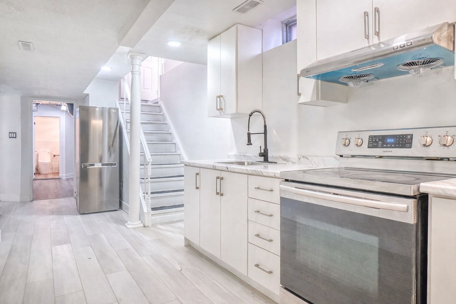Well-appointed 2-bedroom, 1-bathroom basement apartment in desirable heartland! Features a separate entrance, in-unit laundry, and one dedicated parking spot on the driveway. The modern kitchen comes equipped with stainless steel appliances, and you'll enjoy ample storage throughout the unit. Unbeatable location steps from heartland town centre with easy access to highway 401. Walking distance to schools, parks, public transit, grocery stores, and restaurants. Everything you need is right at your doorstep! Perfect for professionals or small families looking for comfort and convenience in a prime mississauga location.