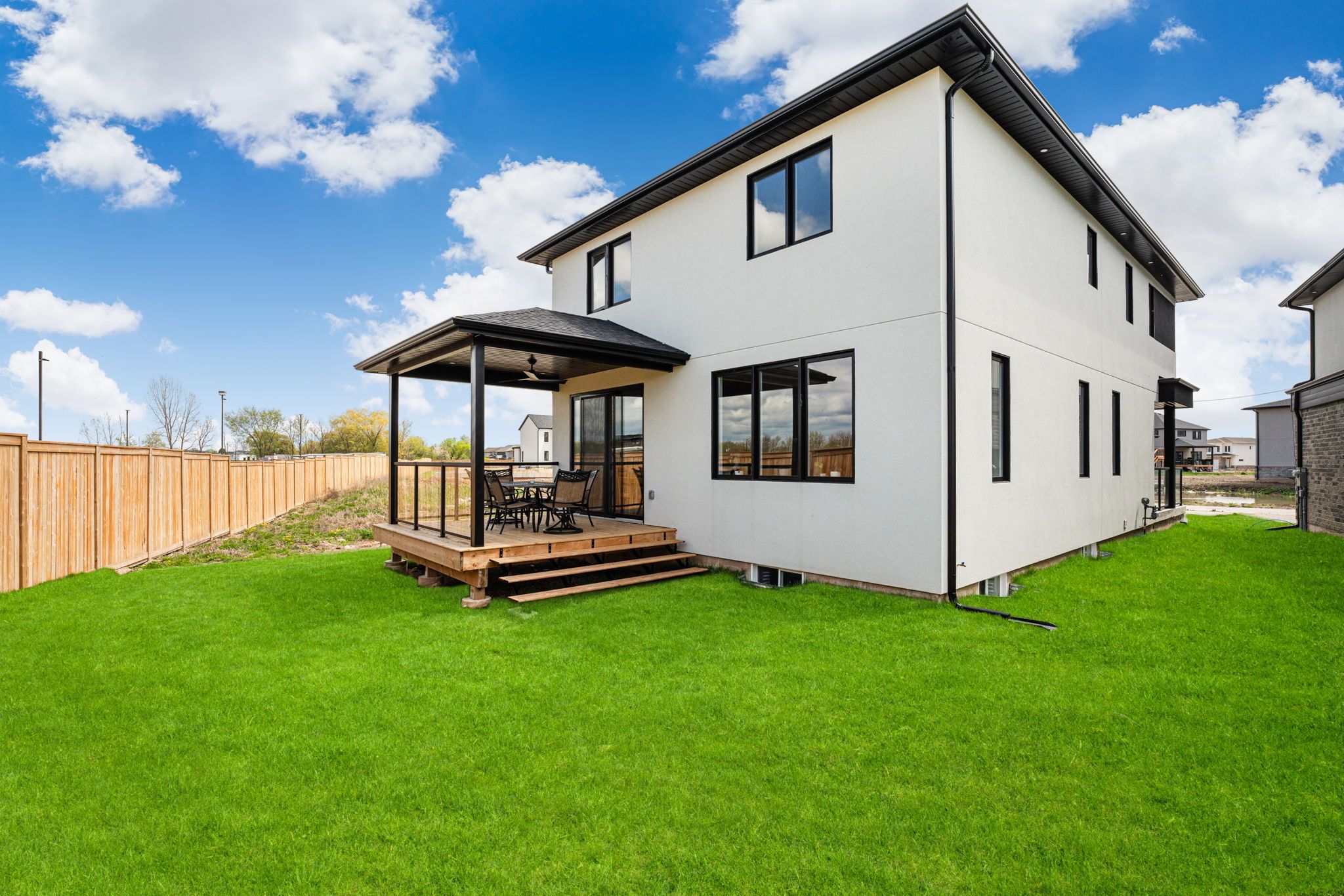 Elevated design. Exceptional versatility. Located on a quiet crescent in the sought-after garner estates, 6176 curlin crescent is a custom-built scandinavian-inspired home that stands apart from the typical new build. With its modern stucco exterior and warm light oak finishes throughout, the home blends clean contemporary design with a calm, welcoming atmosphere. A key highlight is the fully finished lower level with its own separate entrance, offering a complete in-law suite with a full kitchen, bedroom, bathroom, living area, and laundry. Ideal for extended family, guests, or potential rental income, it adds valuable flexibility rarely found in homes in this area. The main floor features a bright open-concept layout with 9-foot ceilings, engineered hardwood floors, and a striking solid oak staircase. The designer kitchen pairs style and function with quartz countertops, a waterfall island, matte black fixtures, wall oven, sleek cooktop, soft-close cabinetry, and a walk-in pantry. The adjoining living and dining areas create a natural space for both entertaining and everyday living. Upstairs offers four spacious bedrooms and three full bathrooms, including two private ensuites, along with a versatile loft lounge perfect for a home office, media space, or playroom. The primary suite features double walk-in closets and a spa-inspired ensuite with a glass shower and double vanity. Minutes from costco, excellent schools, highway access, and the growing amenities along lundy's lane, this home delivers thoughtful design, flexible living space, and lasting value in one of niagara falls' most desirable communities.