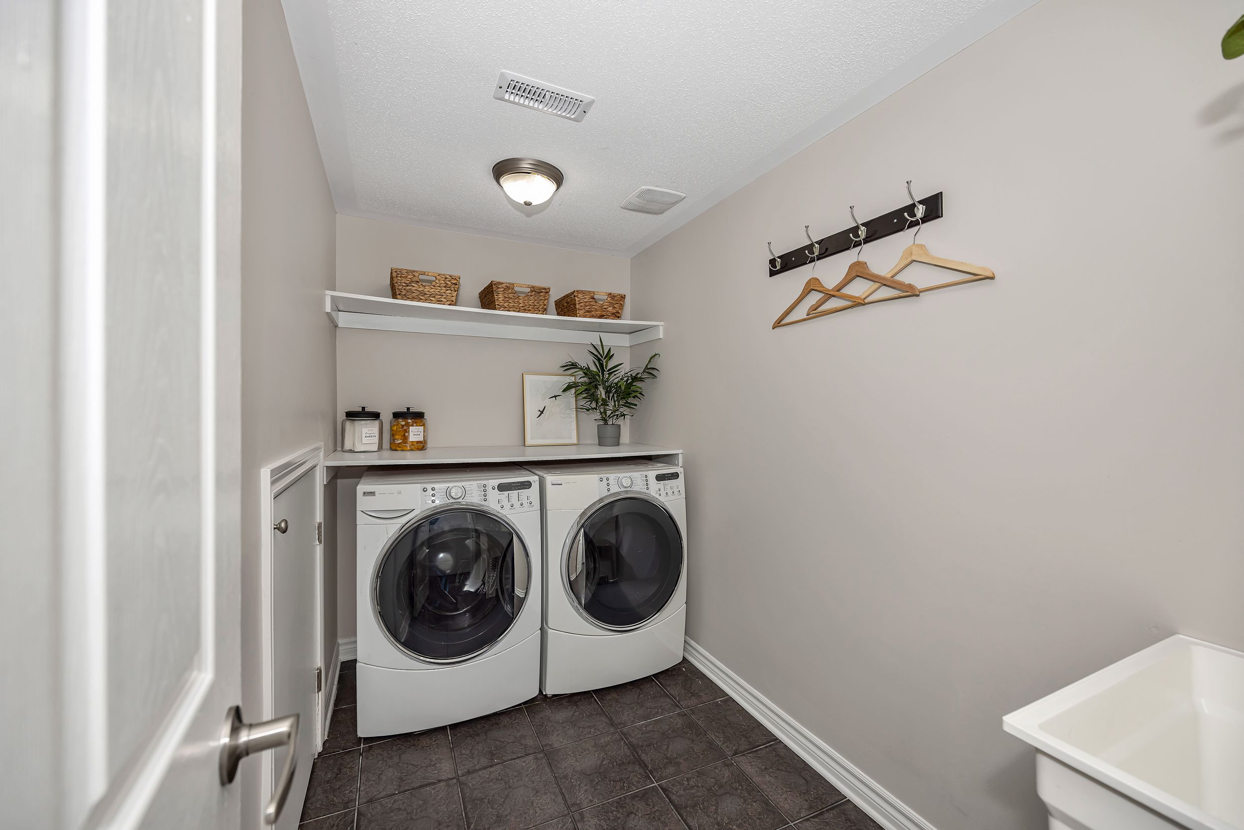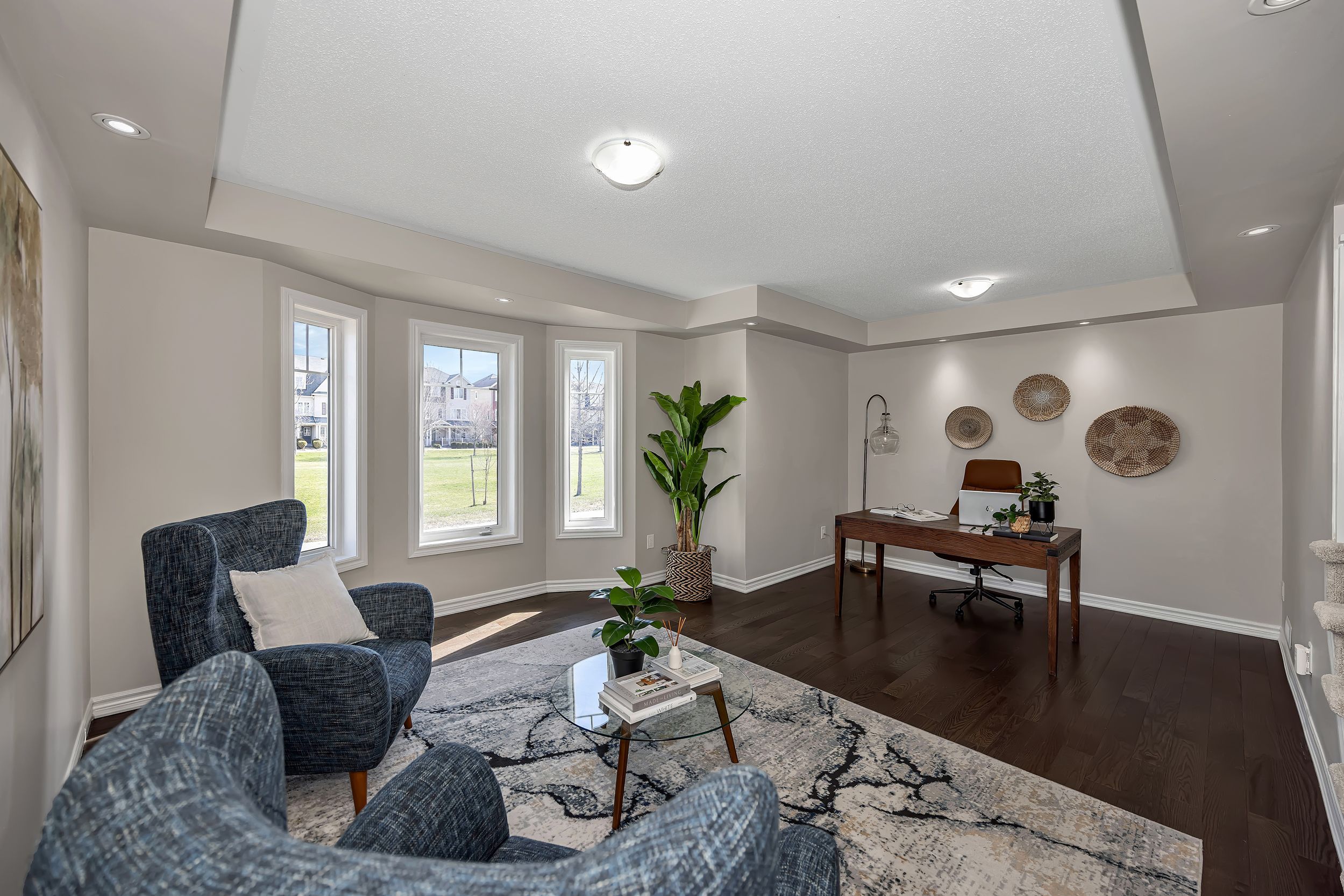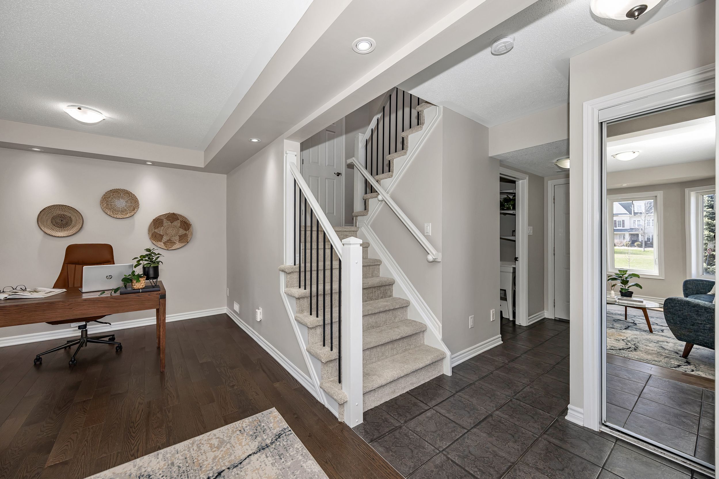 • Versatile main level includes a den, laundry, and garage access.