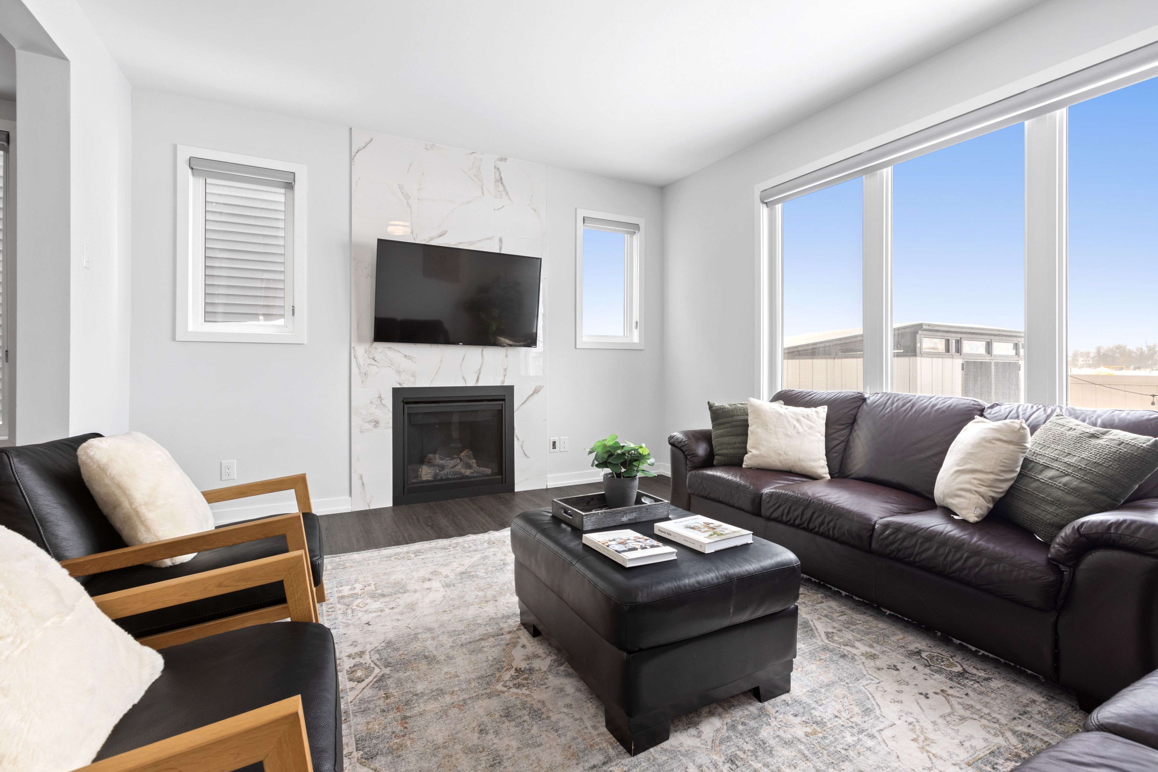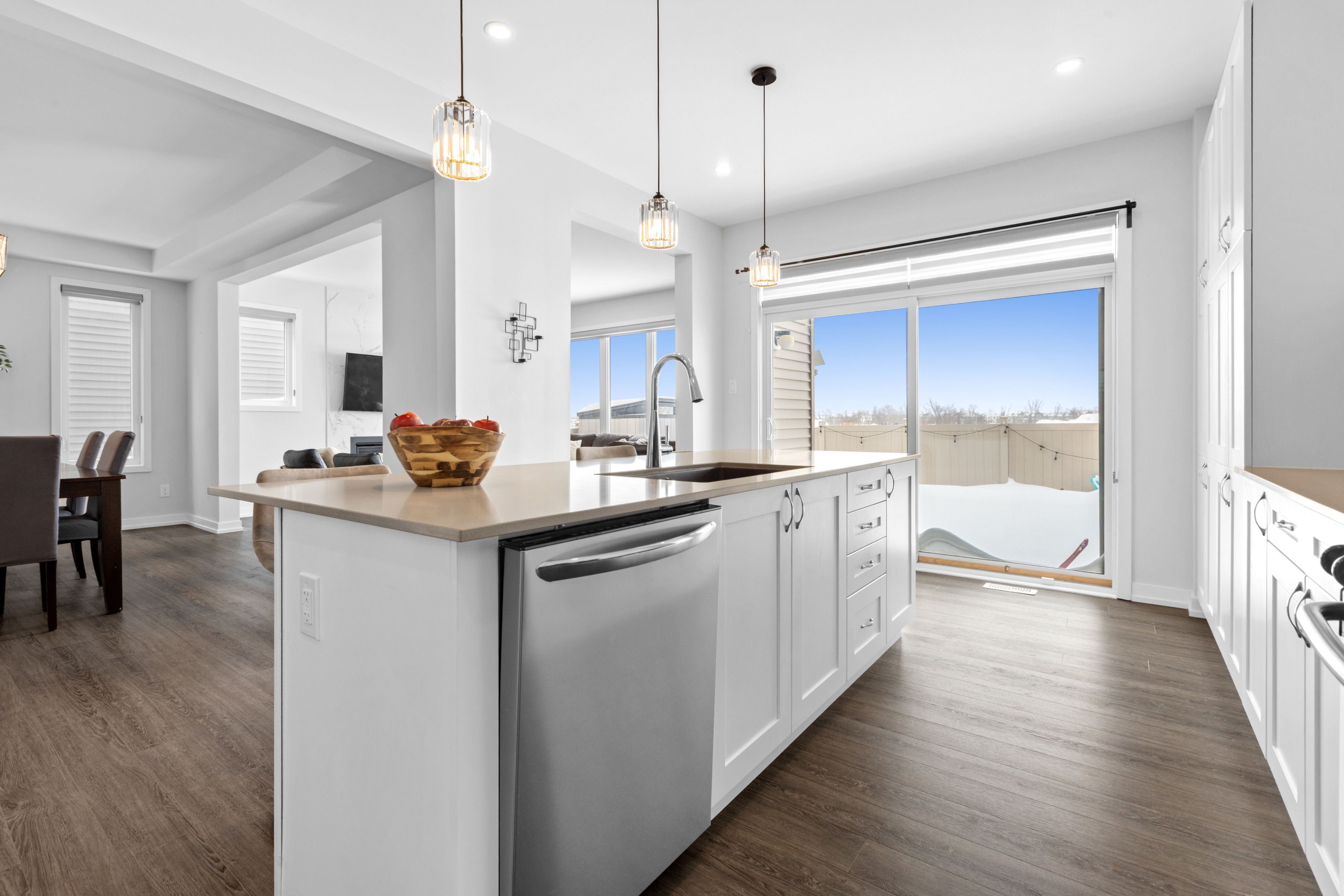 Located in the highly sought-after community of half moon bay, this stunning mattamy sycamore model offers over 2,300 sq. Ft. Of thoughtfully designed living space, perfectly tailored for modern family living. The main level showcases a bright, open-concept layout with stylish luxury vinyl flooring throughout. The upgraded, chef-inspired kitchen is the true heart of the home, featuring stainless steel appliances, abundant cabinetry, upgraded finishes, and a spacious centre island ideal for entertaining or everyday gatherings. Upstairs, retreat to the expansive primary suite complete with a massive walk-in closet and a beautifully appointed 4-piece ensuite with upgraded stone countertops. Two additional generously sized bedrooms and a versatile loft with oversized windows provide plenty of natural light, perfect for a family lounge, play area, or functional home office. Step outside to your own private entertainer's haven. Thoughtfully enhanced with luxury interlock across the front, side, and backyard, the exterior offers exceptional curb appeal and low-maintenance outdoor living. Just steps to schools and parks, and only minutes to the marketplace and everyday amenities, this exceptional home presents an incredible opportunity to join the vibrant barrhaven community. Don't miss your chance to call this one home!