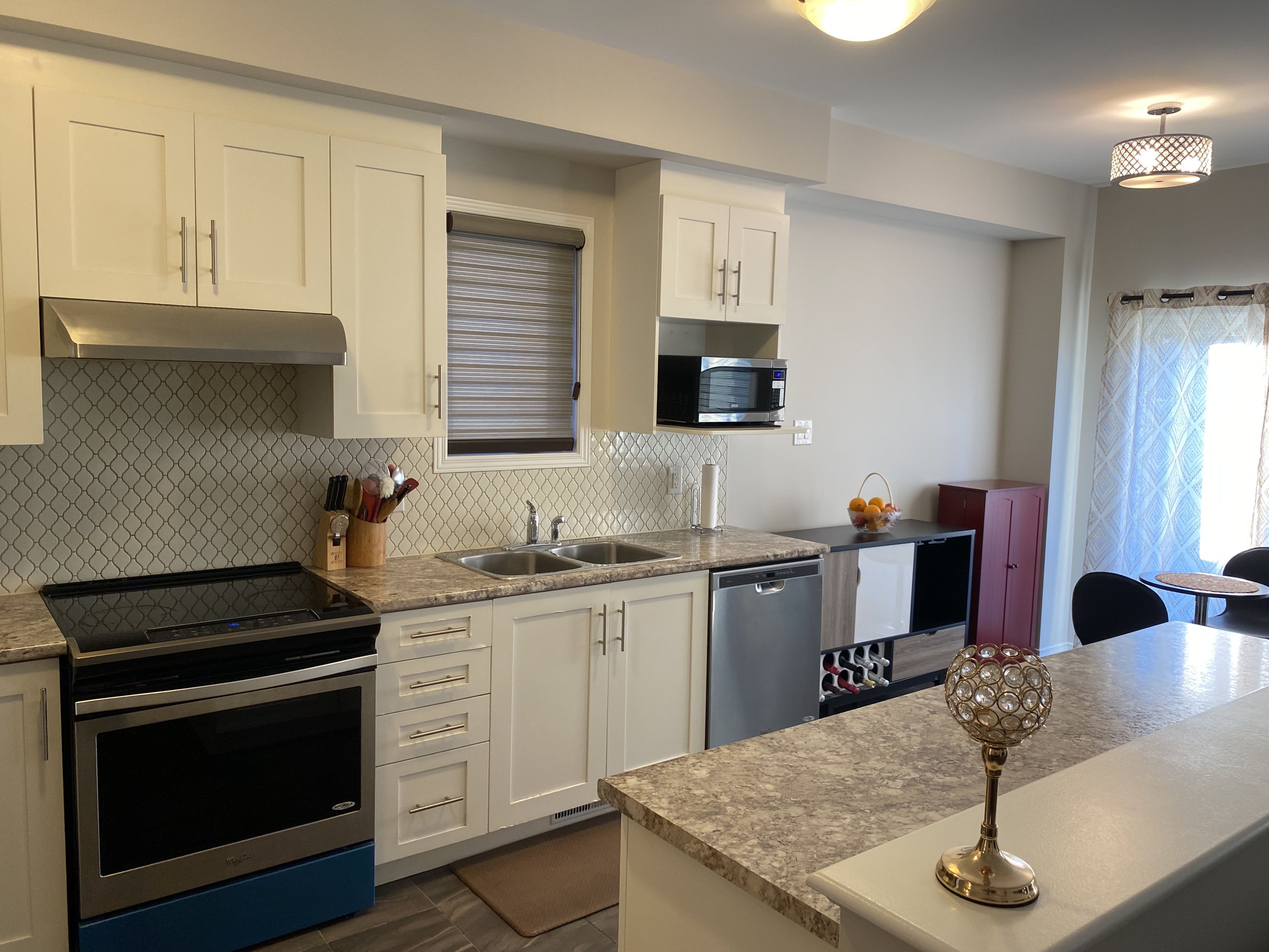 Welcome to this beautifully maintained end unit town that combines convenience, space, and style. Perfectly situated just steps from public transit and within close proximity to top-rated schools, this home offers the ideal setting for families and professionals alike. Spacious open-concept living and dining areas featuring hardwood floors are perfect for entertaining. Modern kitchen with ample cabinetry and prep space. Huge finished rec room area is ideal for a home gym, media room or play area. Convenient second floor laundry makes life just that much easier. Freshly painted and carpets cleaned... It's ready for a new owner! Generously sized bedrooms including a primary suite with ensuite bath. Neighbourhood shops just across the street create an urban feel, yet no back neighbours and a huge back yard provide a private atmosphere.