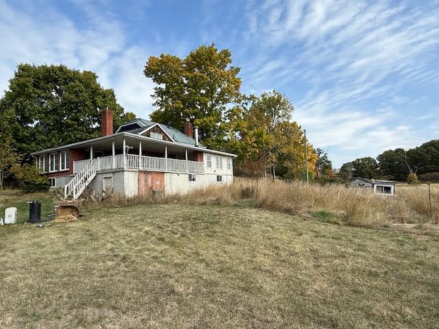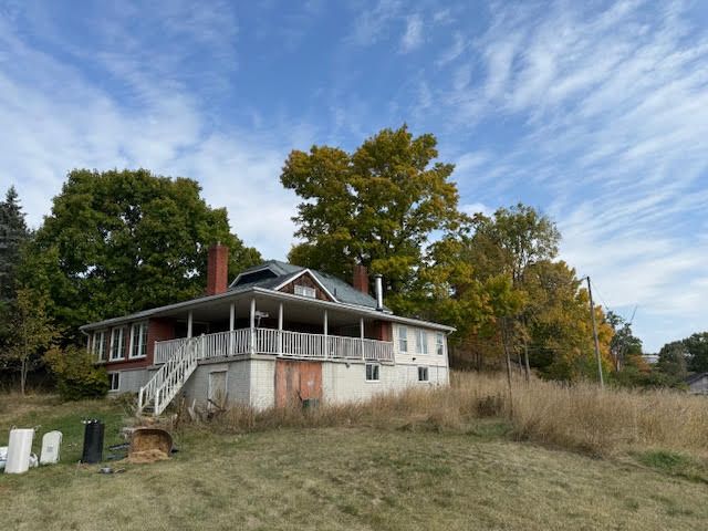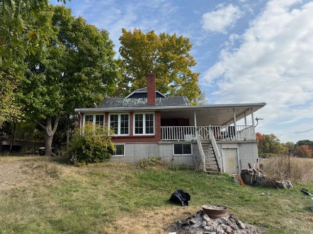 Classic brick farm house sitting quietly behind the trees sheltered from the road. Located just past the village of battersea and about 20 minutes to kingston, you will love the setting of this country home on 4 acres of gently rolling farm land with trees and pasture ideal for a hobby farm or to raise a family. Close to 2000 ft of living space, includes 3 good sized bedrooms upstairs and a large 4 pce bath. This home is filled with light, from the multi window elevated main floor family room with patio doors onto a large covered deck overlooking the meadows. A large kitchen dining room combination with woodstove and another main floor family room with fireplace adds charm. A very practical two piece bath on the main floor and a large rear sunroom which also accesses the concrete based covered deck that runs on two sides of the home to capture the views and the morning sun. A great place to raise a family and plenty of room for gardens, chickens and to enjoy the country life .