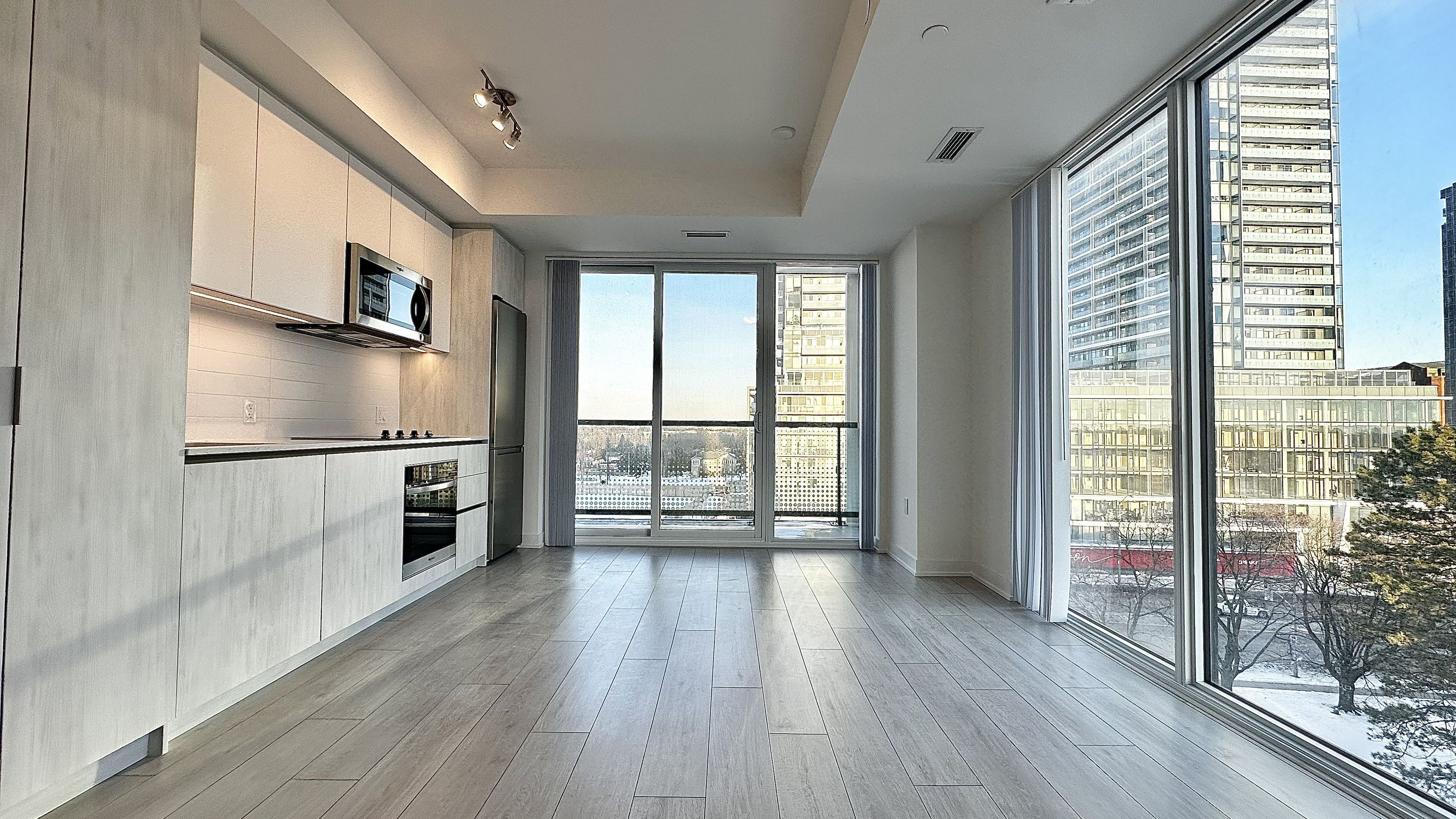 Plaza on yonge. Stunning brand new luxury corner suite featuring 2 bedrooms and 2 bathrooms with parking in the highly sought-after yonge & finch neighbourhood. This bright and thoughtfully designed unit offers a functional split-bedroom layout, ideal for modern living and working from home. As a corner unit, the suite enjoys extra windows and abundant natural light throughout, enhanced by floor-to-ceiling windows and sleek laminate flooring. The contemporary kitchen features stylish cabinetry and stainless steel appliances. Includes one underground parking space. Residents enjoy premium building amenities including 24-hour concierge and security. Unbeatable location just steps to finch subway station, ttc, restaurants, shops, parks, and schools.