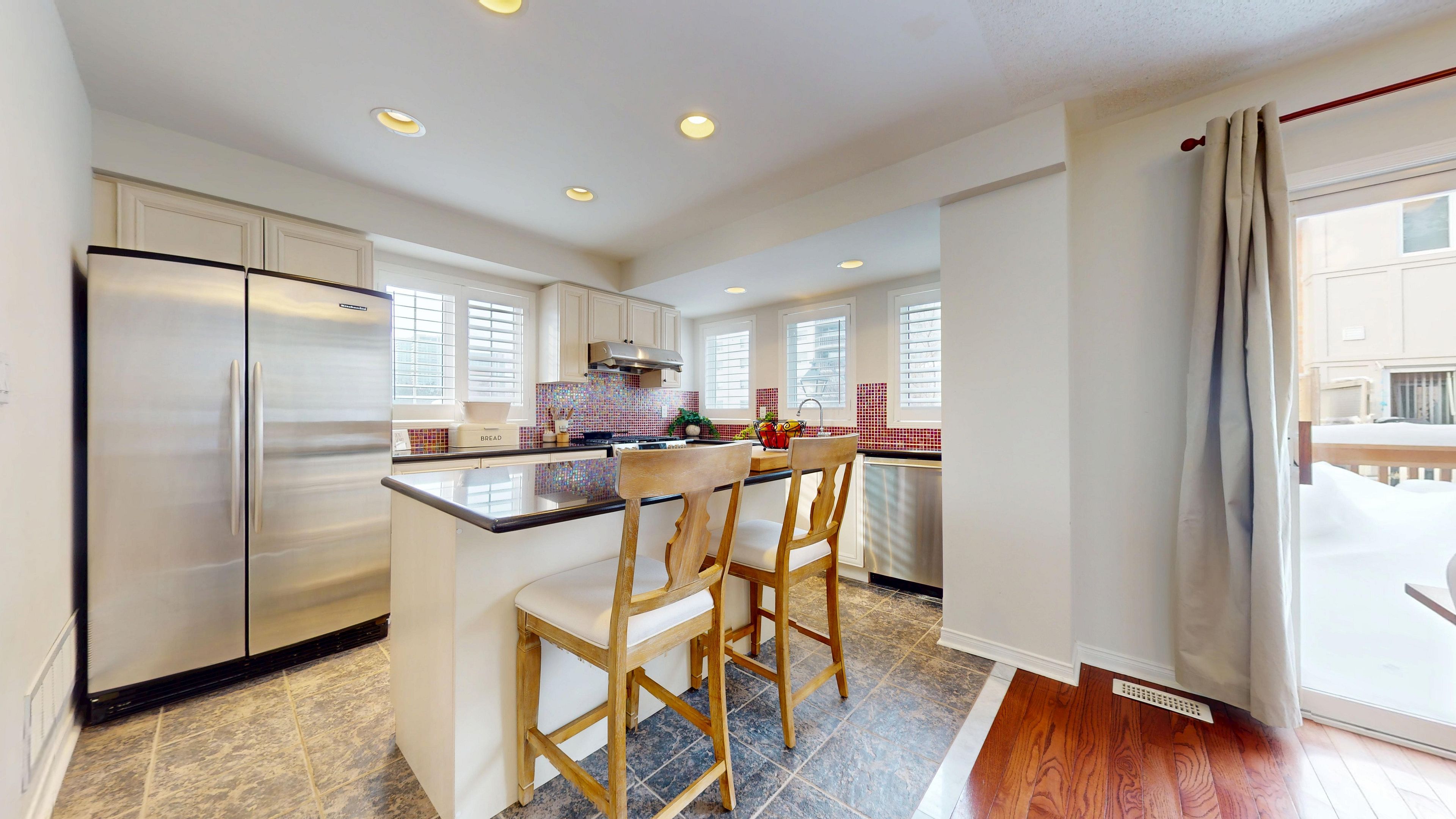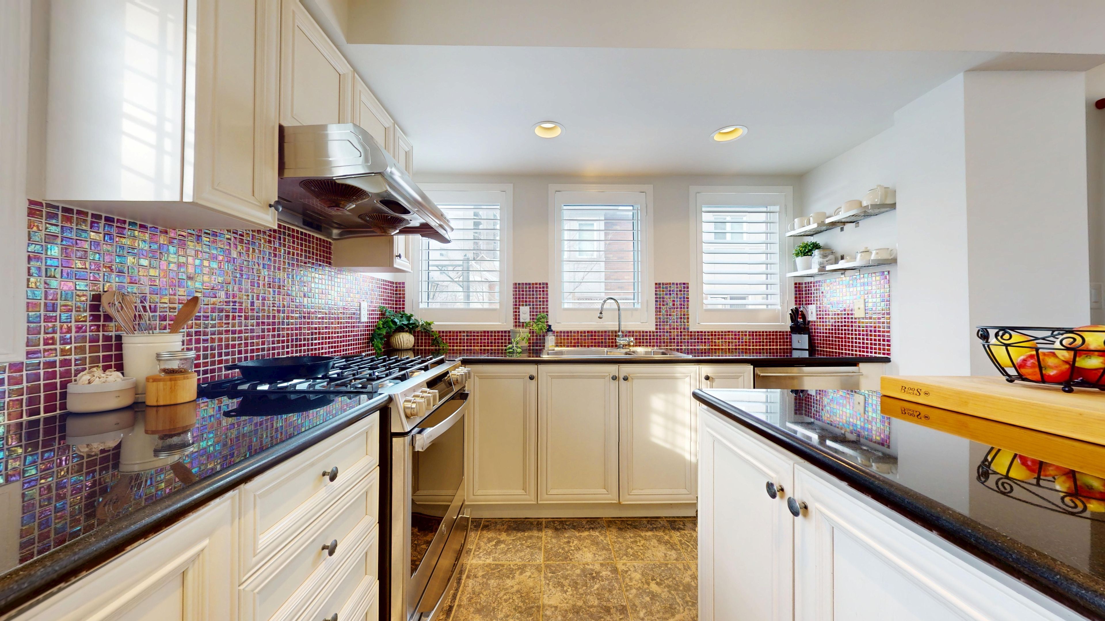 • Stylish kitchen with stainless steel appliances and gas BBQ hookup.