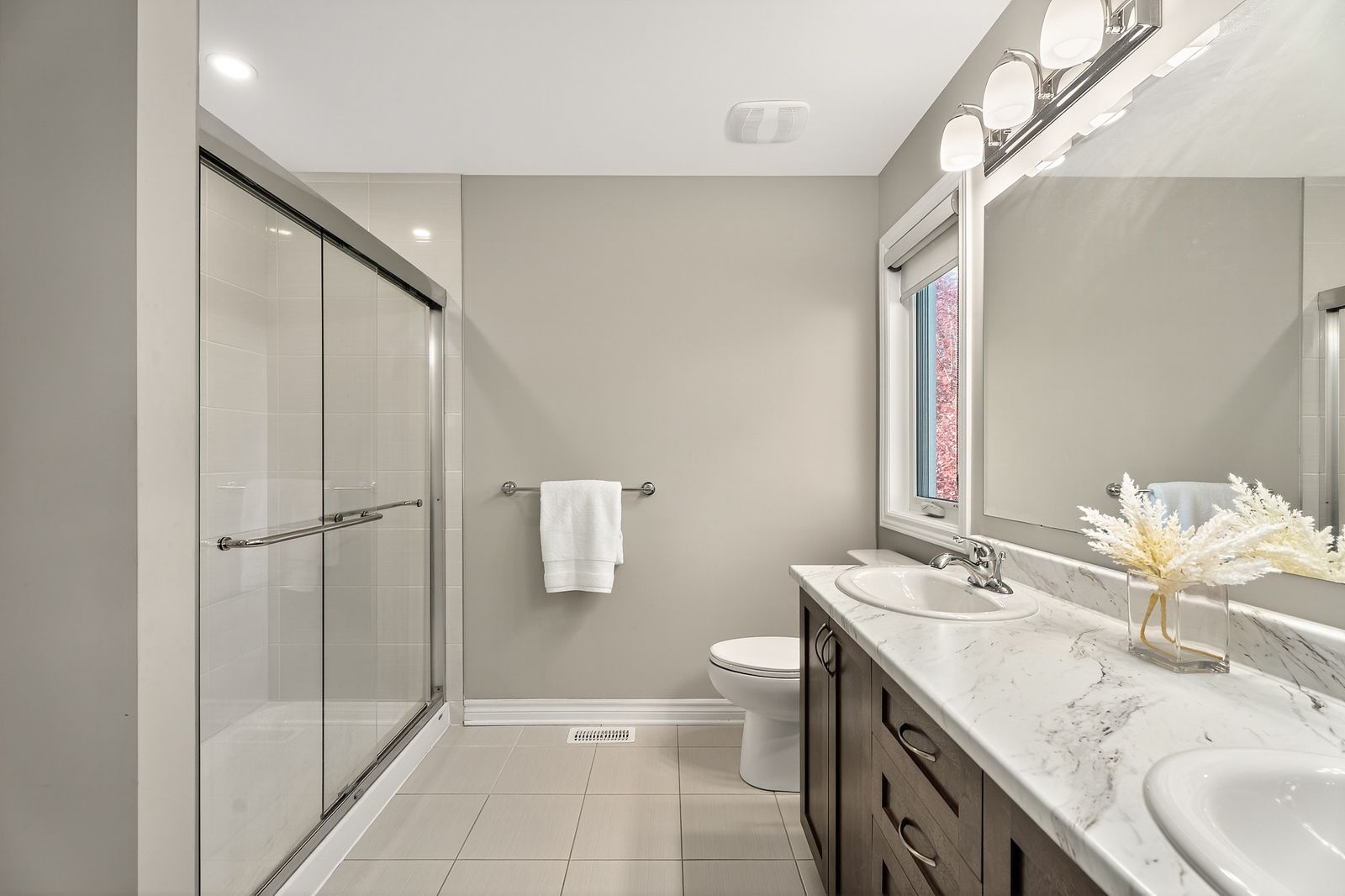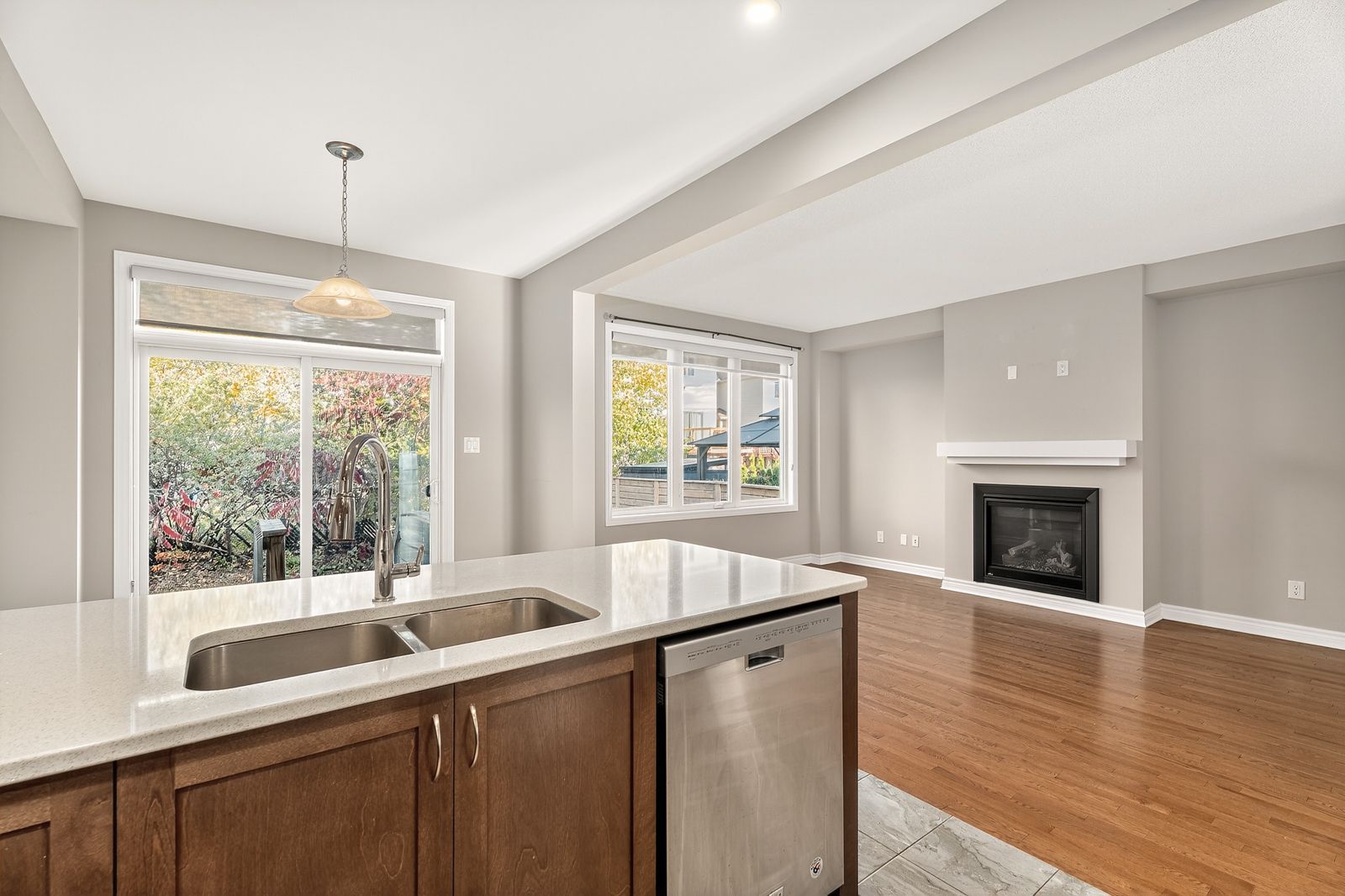 Beautifully maintained minto-built family home in the desirable potter's key community. Ideally located close to parks, schools, shopping, and restaurants along main street. This 3-bedroom, 3-bathroom home features numerous upgrades and a bright, neutral interior with 9 ft ceilings on the main level. The welcoming foyer includes ceramic tile flooring, a double closet, and inside access to the garage. Hardwood floors flow through the main living areas, including the spacious great room with a gas fireplace and custom mantle. The open-concept kitchen offers stainless steel appliances, premium cabinetry, a marble tile backsplash, breakfast bar, and an eating area with sliding patio doors leading to the backyard. Upstairs features neutral carpeting, a generous primary bedroom with walk-in closet and 4-piece ensuite with double sinks and glass shower. Two additional bedrooms with double closets and a full 4-piece family bathroom complete the second level. Unfinished lower level provides ample storage and future potential. Move-in ready and perfect for families!