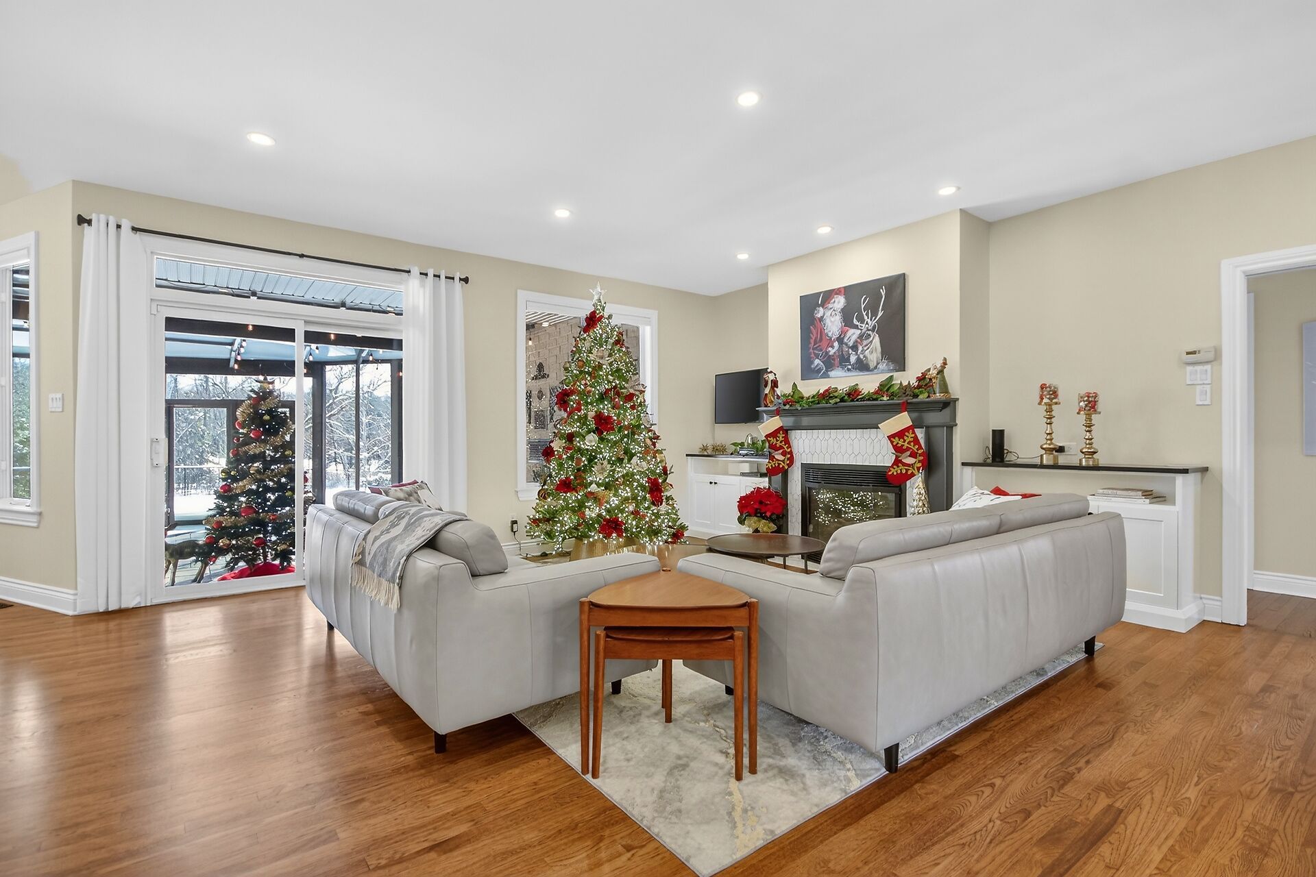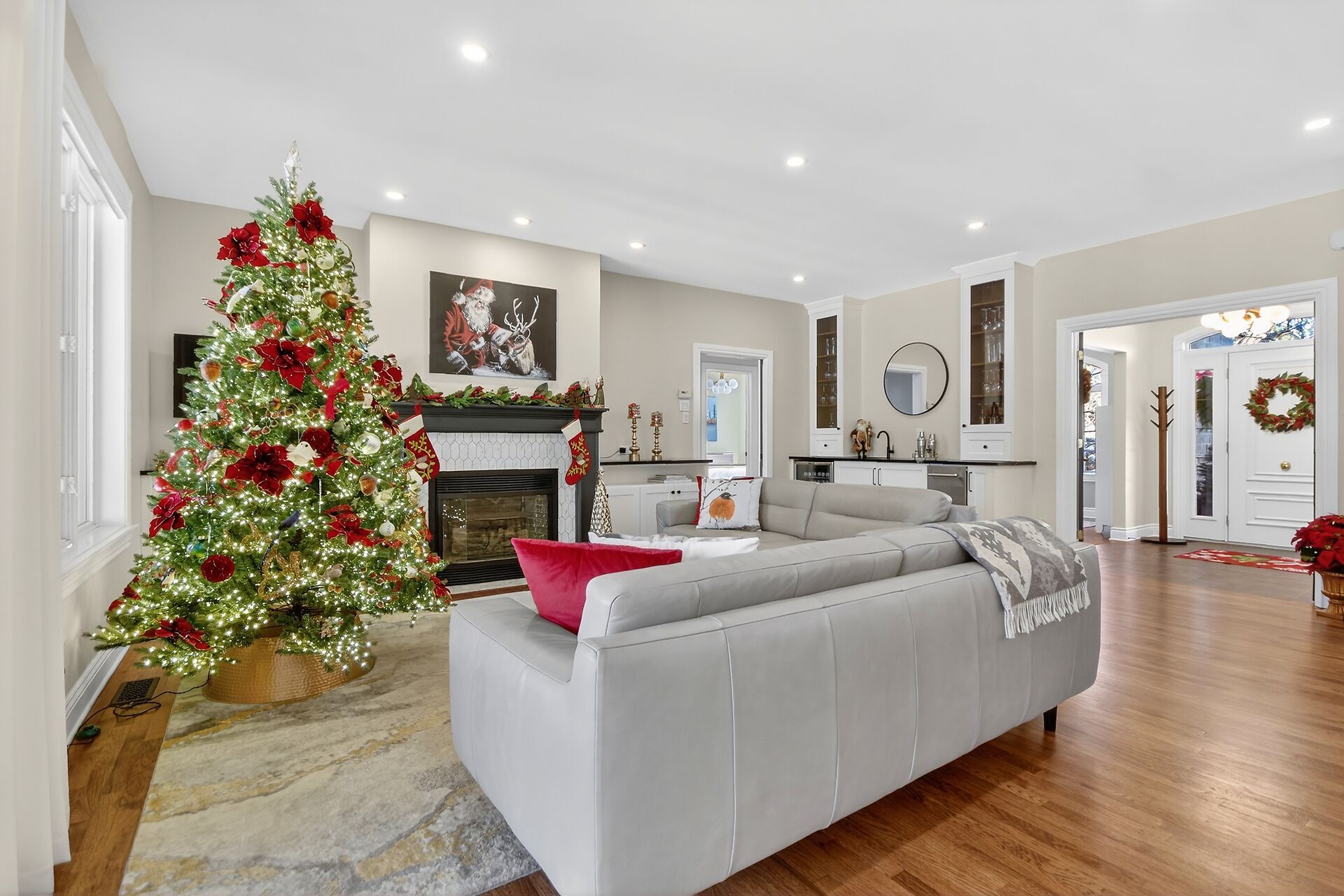 • Great room featuring a gas fireplace, wet bar, and custom cabinetry.
