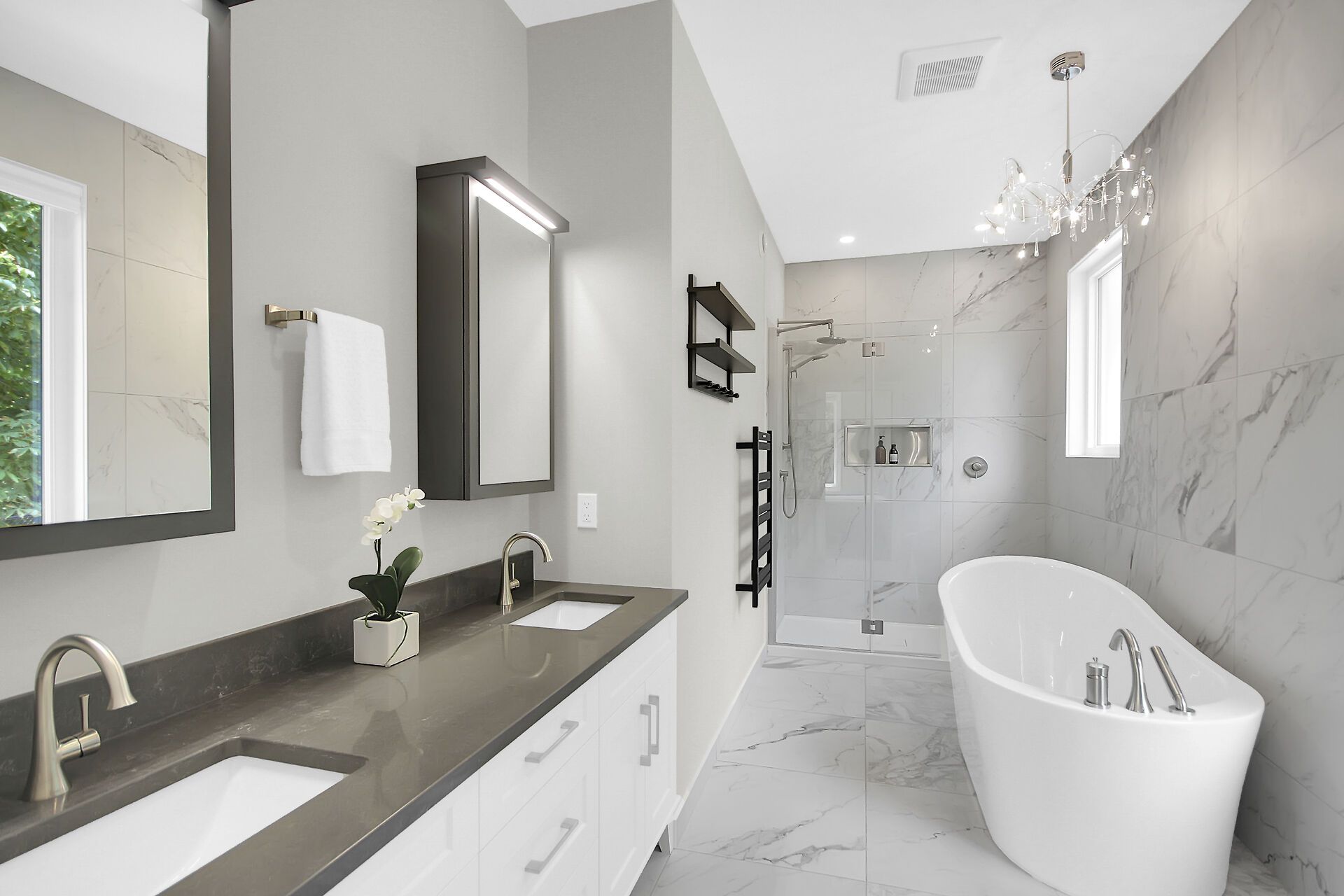 • Luxurious primary suite with spa-like ensuite and heated floors.