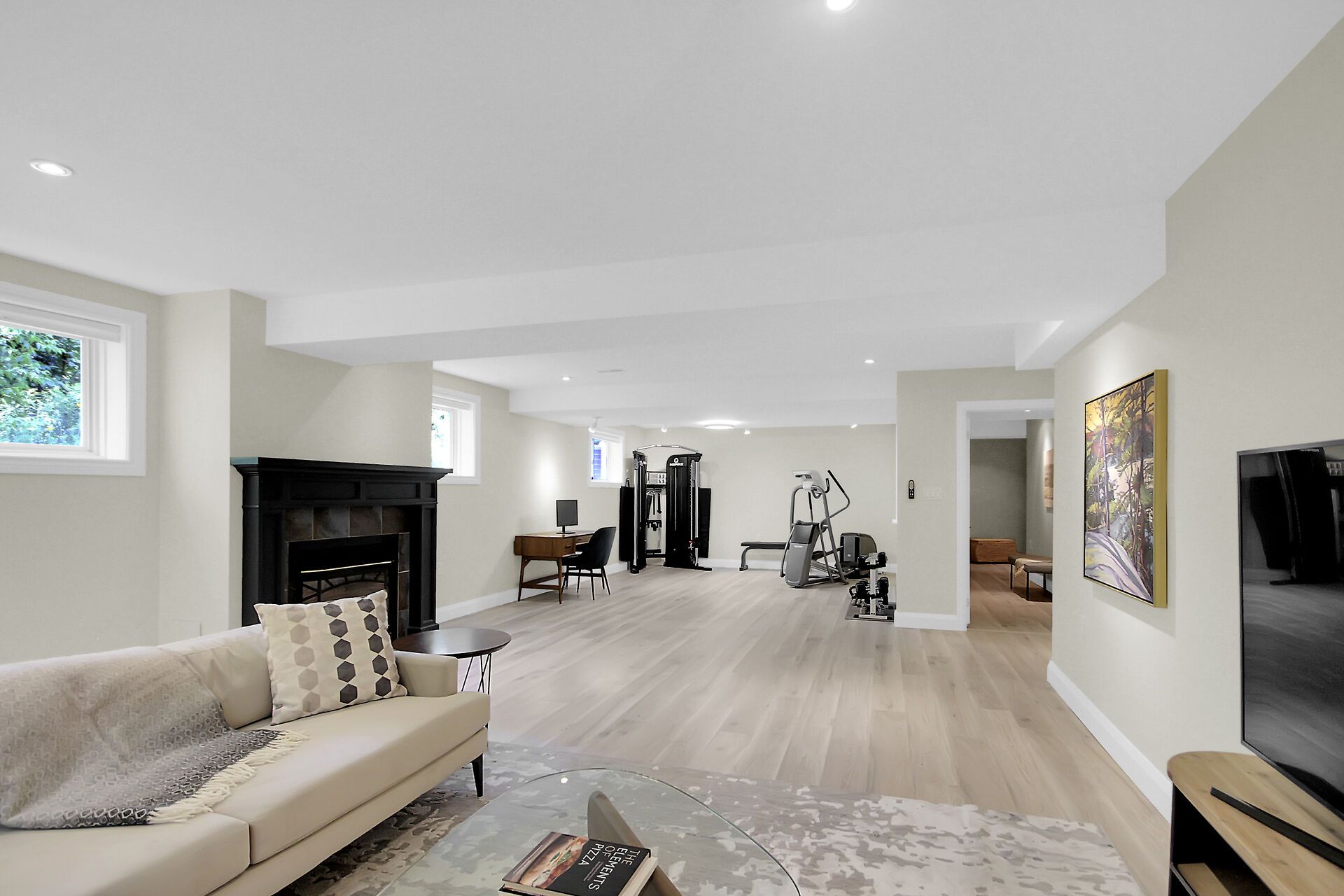• Finished lower level with family room, games area, and kitchenette.