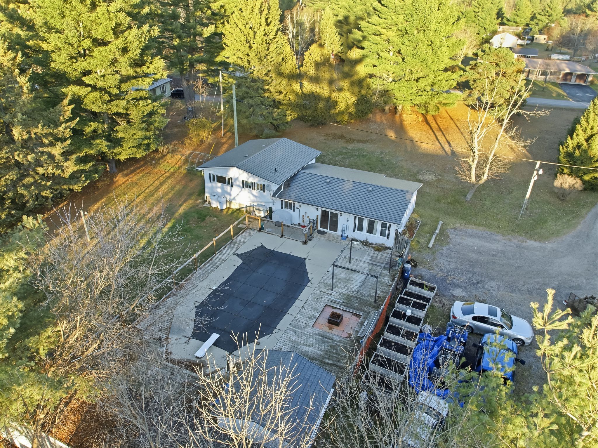 5 reasons you'll love this home! 1) the huge lot - you'll love 62 airport rd for its incredible space, privacy, and versatility, starting with its wide, open lot. You're surrounded by mature evergreens, offering the perfect blend of country quiet and neighbourhood convenience, with plenty of room for parking, play, gardening, and future ideas. 2) the bright main floor - the bright and welcoming main floor features large windows, warm engineered hardwood flooring, and an easy flow between the living room, dining area, and the oversized kitchen, complete with an island and pantry, extensive cabinetry, and multiple prep zones-ideal for everyday living or hosting family gatherings. 3) the sunroom - a stunning 4-season sun-filled bonus room with wraparound windows and vaulted ceilings creates an amazing second living area that can be used as a games room, lounge, studio, or entertainment space, extending your lifestyle options year-round. 4) the in-law suite - the lower-level in-law suite is fully finished with its own kitchen, dining space, full bathroom, and large living/sleeping area, making it perfect for multigenerational families, guests, or anyone needing independent living space with private access. 5) the expansive backyard - the expansive backyard retreat with a huge in-ground pool and massive deck gives you a private summer oasis, complete with room for lounging, barbecues, firepit nights, and outdoor entertaining, supported by multiple outbuildings for storage, workshops, or hobbies. With a peaceful setting, long list of functional upgrades, and generous square footage inside and out, this property offers comfort, flexibility, and the rural lifestyle you've been searching for-all just minutes from town amenities.