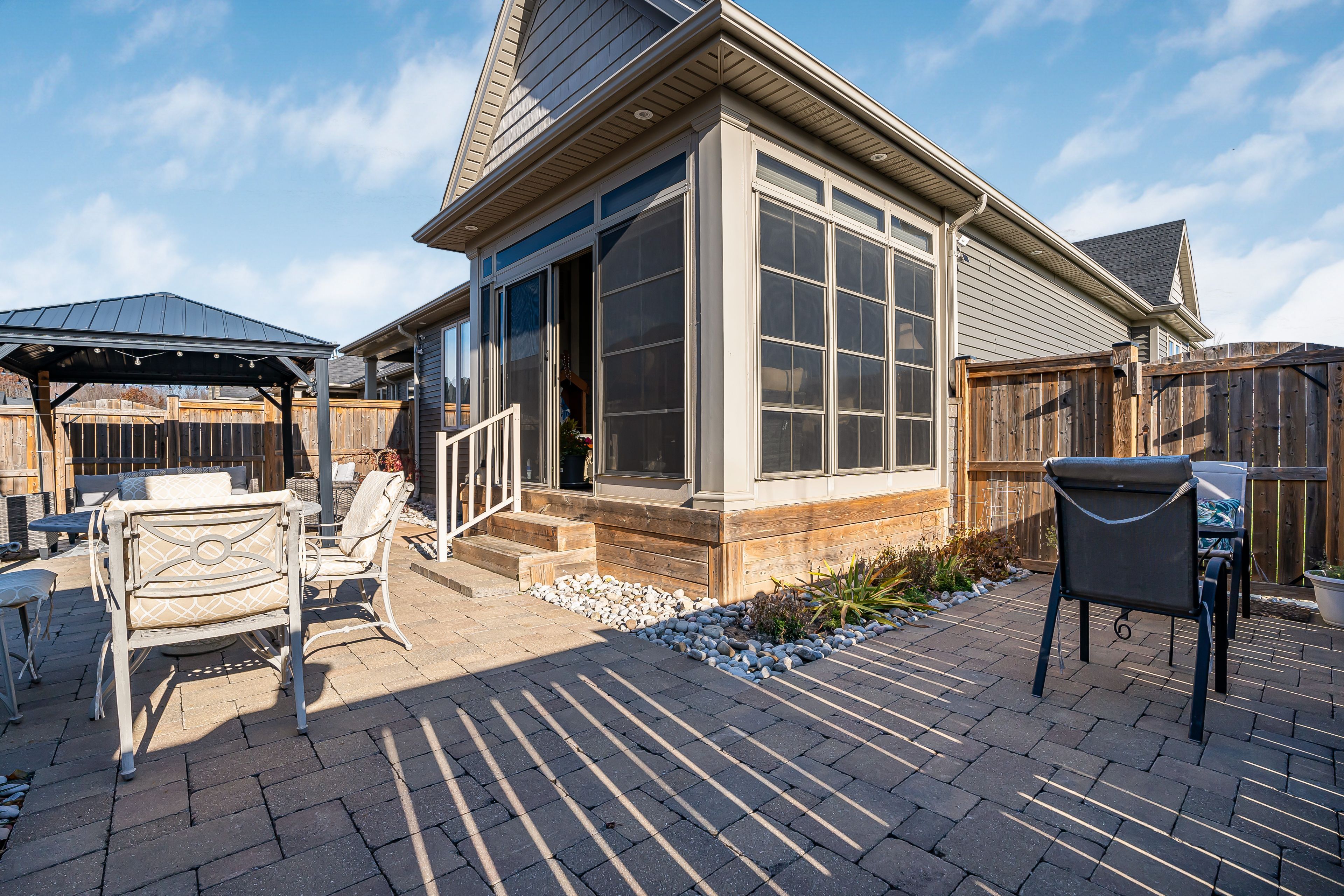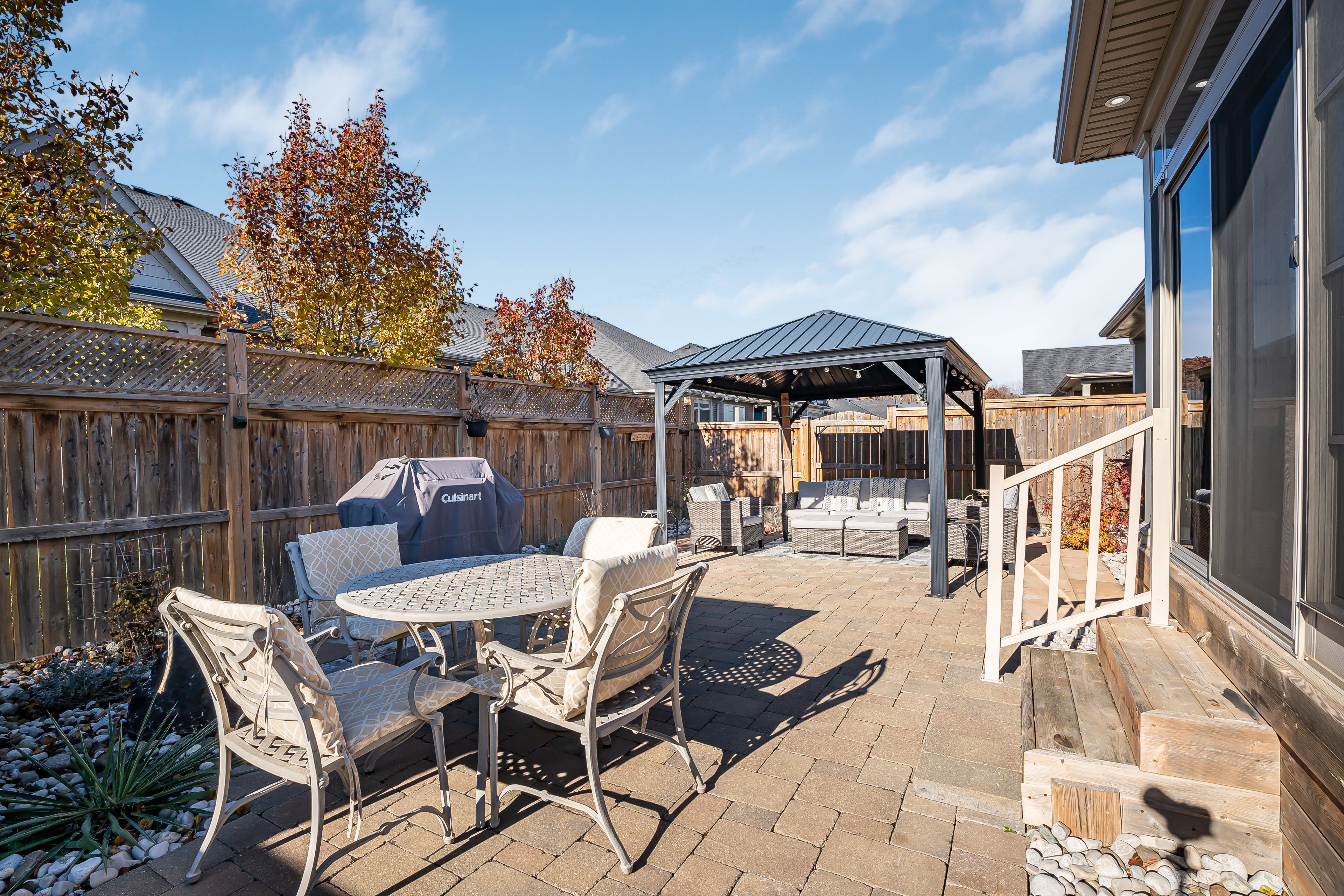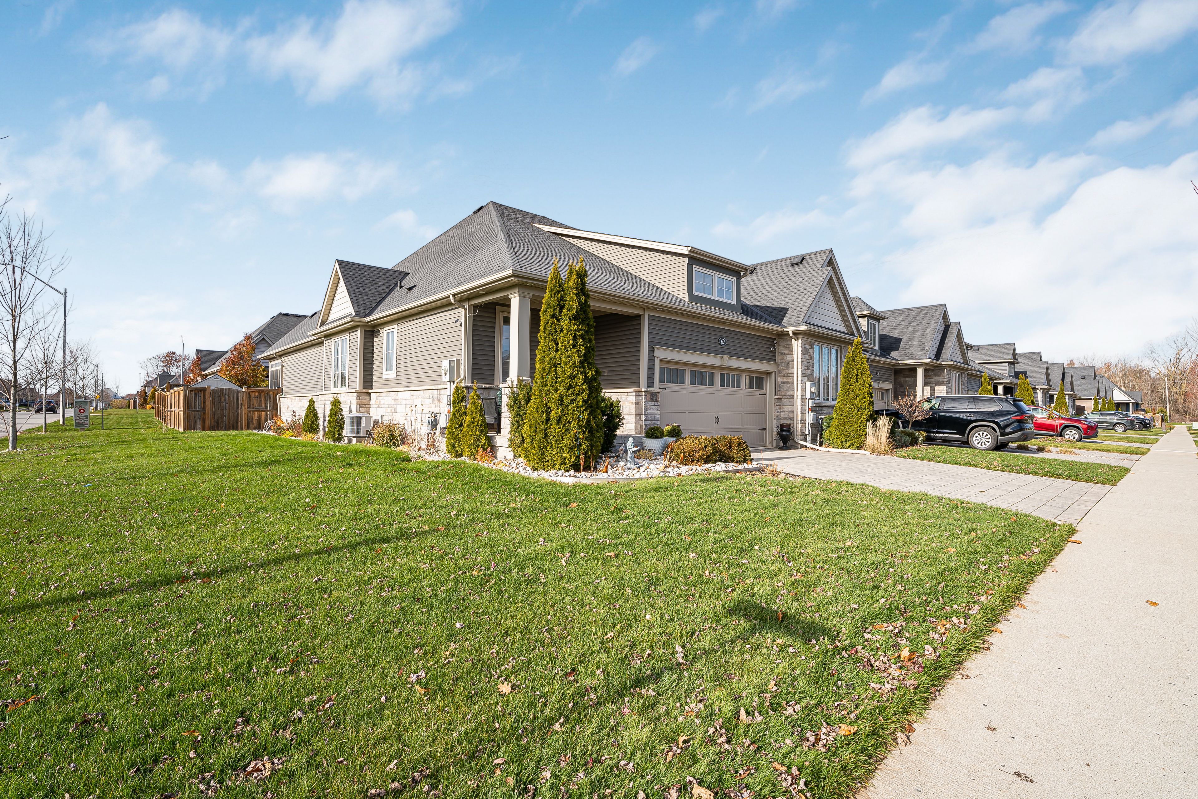Welcome to this exceptionally built and finely finished end-unit bungalow. Minutes to hwy 406, qew, niagara falls, u. S. Border crossings, wineries, golf and the new niagara south hospital site. Beautiful curb appeal with stone/siding exterior, covered porch and an upgraded double driveway. Inside features a bright open-concept layout, 9' ceilings, gourmet kitchen with large island, quartz counters, walk-in pantry, and spacious dining/living areas with oversized windows. Primary suite offers a walk-in closet and ensuite privilege. Second bedroom is ideal for guests or an office. Huge full-size basement with high ceilings provides 2 well sized bedrooms, full bathroom and a very enjoyable finished space for rec room, gym or home theatre. Beautiful oasis backyard with quality craftsmanship throughout-perfect for downsizers, retirees, and u. S. Buyers seeking easy, single-floor living minutes from everything niagara offers.