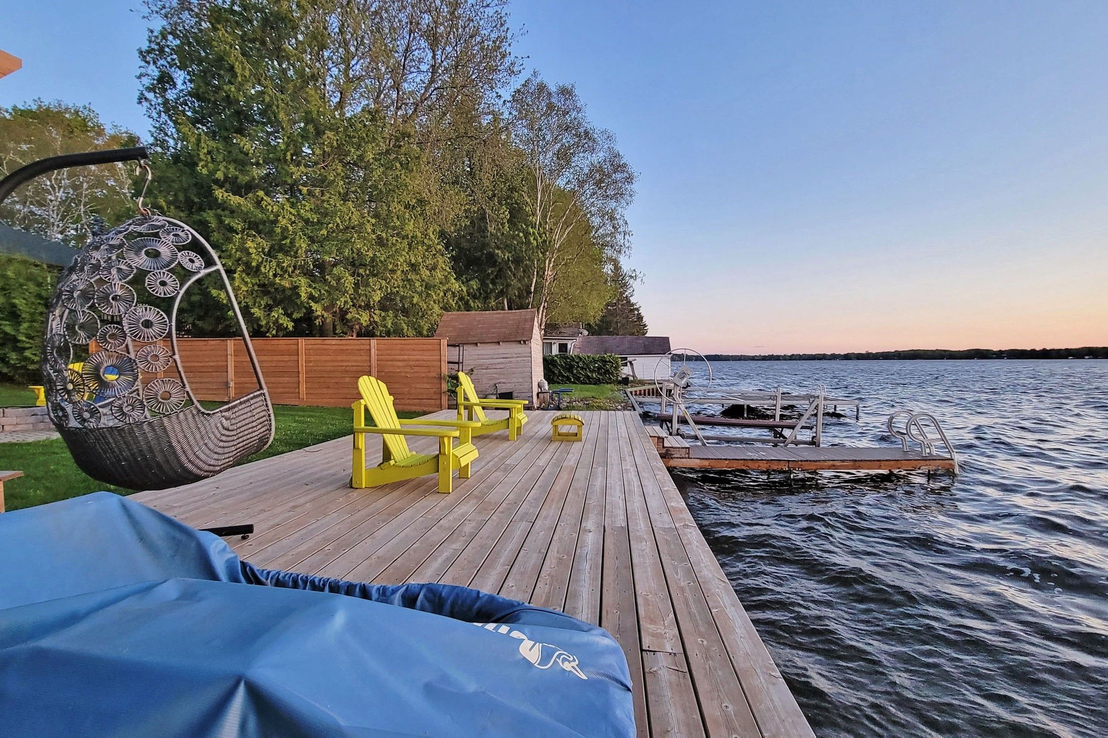 Turnkey waterfront living on canal lake( trent severn waterway) ! Beautifully upgraded year-round 3-bedroom waterfront home with 50ft frontage and rental potential. With over $200k in upgrades, this move-in ready property offers northwestern exposure and provides stunning sunset views over the lake! Bright open-concept living and kitchen area features rustic faux beams, wood stove, quartz countertops, tiled backsplash, stainless steel appliances, and vinyl flooring throughout the main floor. Enjoy stunning lake views from the living room and primary bedroom and walk out to a brand new deck with glass railings overlooking breathtaking sunset views. Finished lower level includes a third bedroom, games room with pool table, foosball, dart board and smart tv, plus walkout access to the lake. Outdoor highlights include a dock with boat lift, a pergola dining area, fire pit with muskoka chairs, large shed, and parking for up to four vehicles. Being sold fully furnished and turnkey, making it ideal as a vacation home, investment property, or year-round residence. Property being sold as-is, where-is with no representations or warranties. Extras: upgrades by current owner, including a/c, fresh interior & exterior paint, quartz countertop, updated bathroom vanity & cabinets, faux wooden beams, brand new deck with glass railings, wifi thermostat, smart locks, and new well pressure tank .(2026). Enjoy 50 ft of waterfront on canal lake (trent severn waterway) with dock, boat lift, pergola, fire pit, and sunset views. Sold fully furnished & turnkey, including appliances, furniture, games room equipment, tvs, bbq and security cameras. Parking for up to four vehicles and large shed.