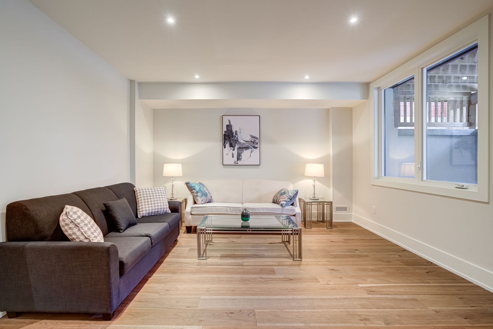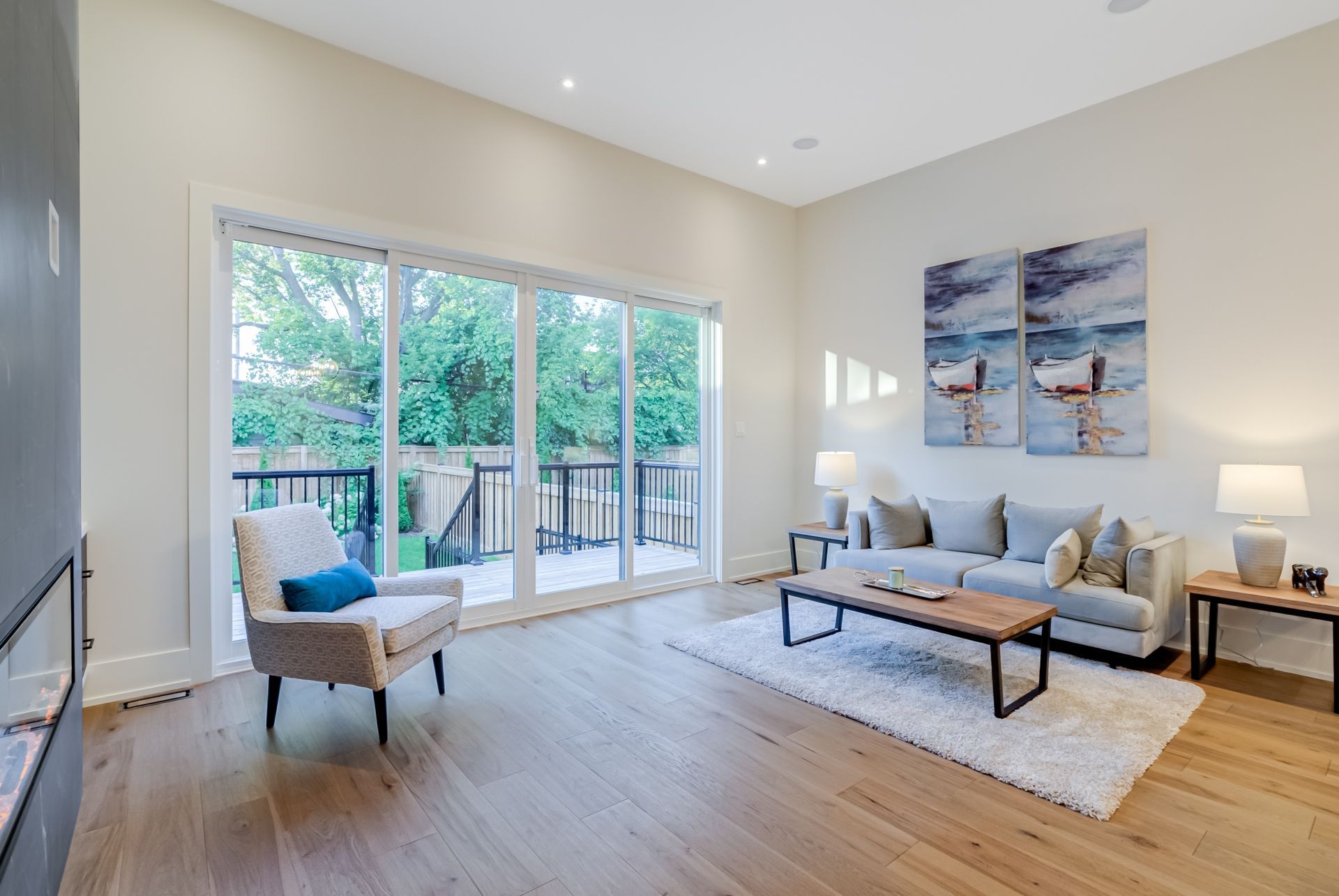 • Secluded backyard oasis accessed from the basement rec room.