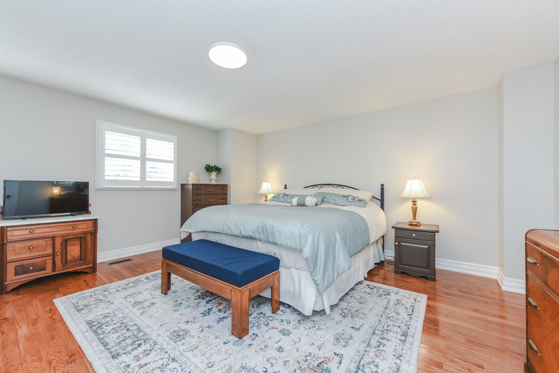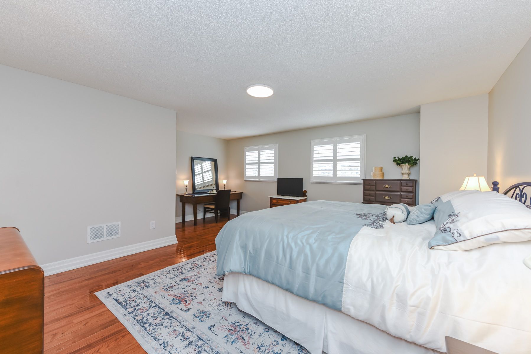 • Spacious primary bedroom with upgraded washroom and walk-in closet.
