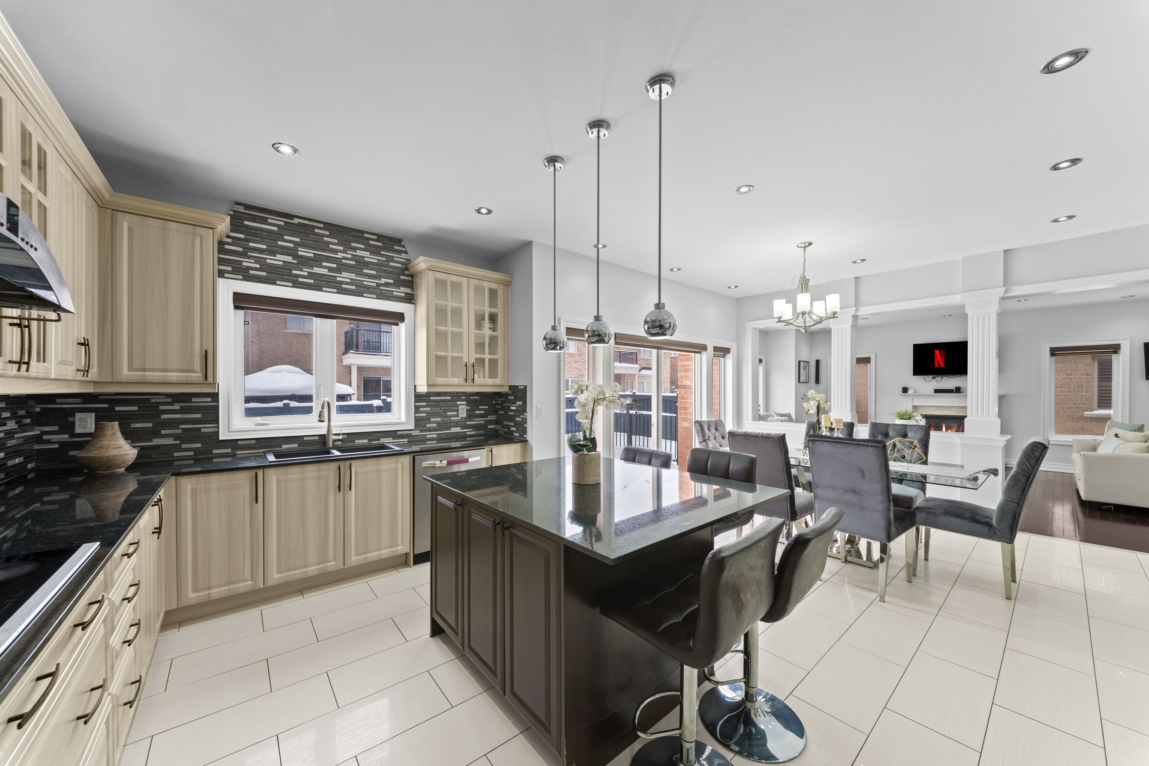 • Elegant main floor layout includes separate family, living, and dining rooms.