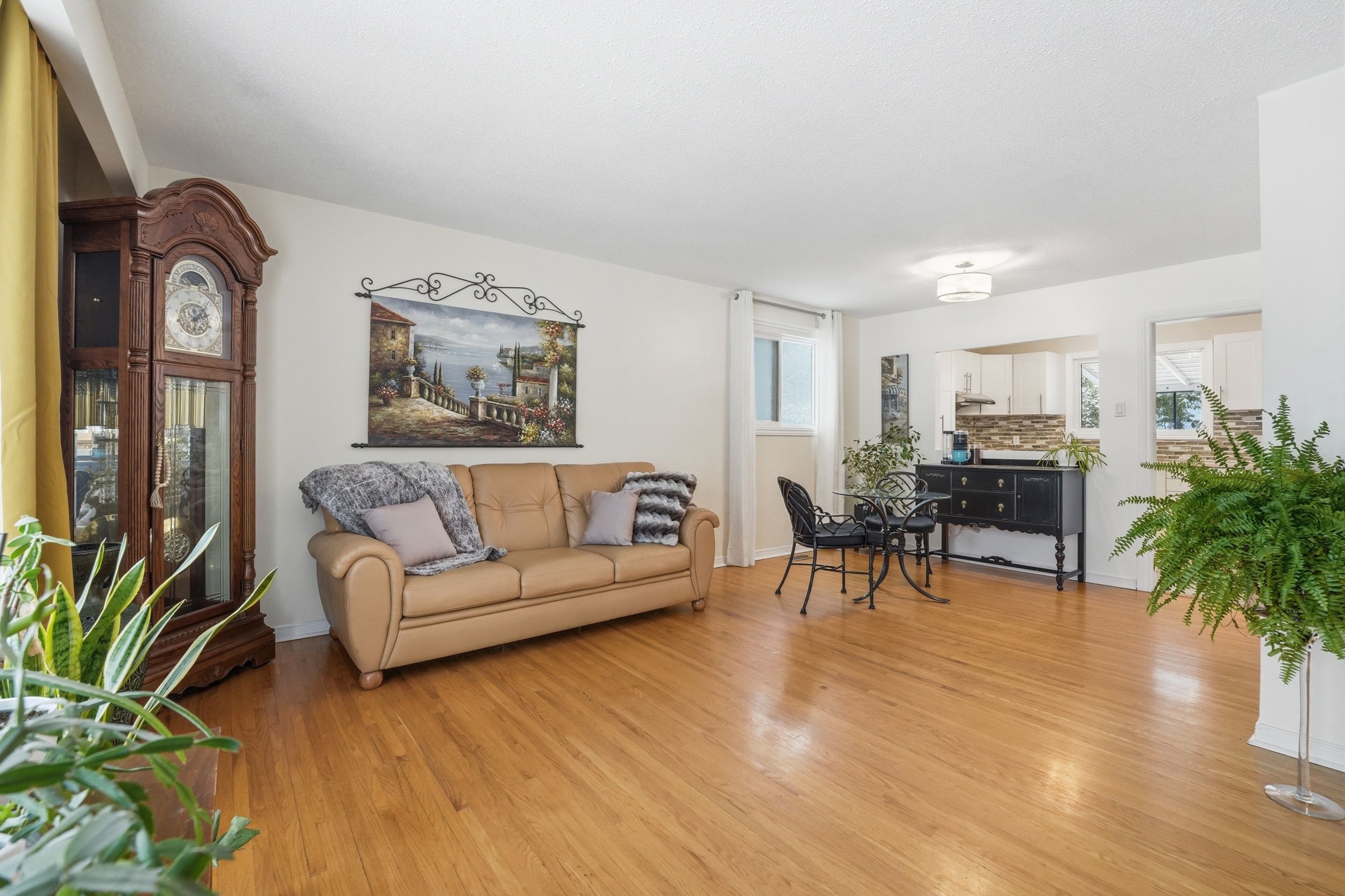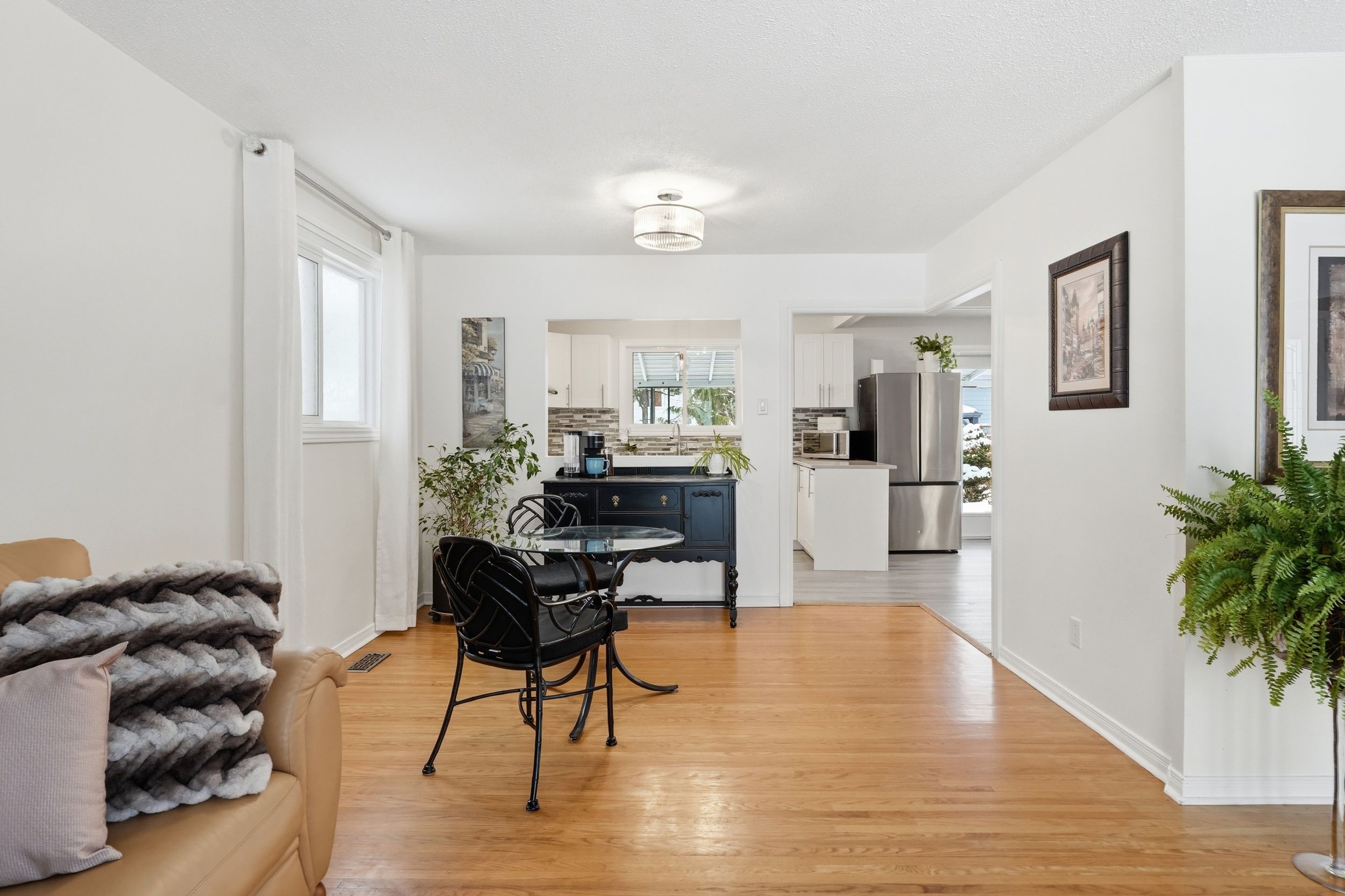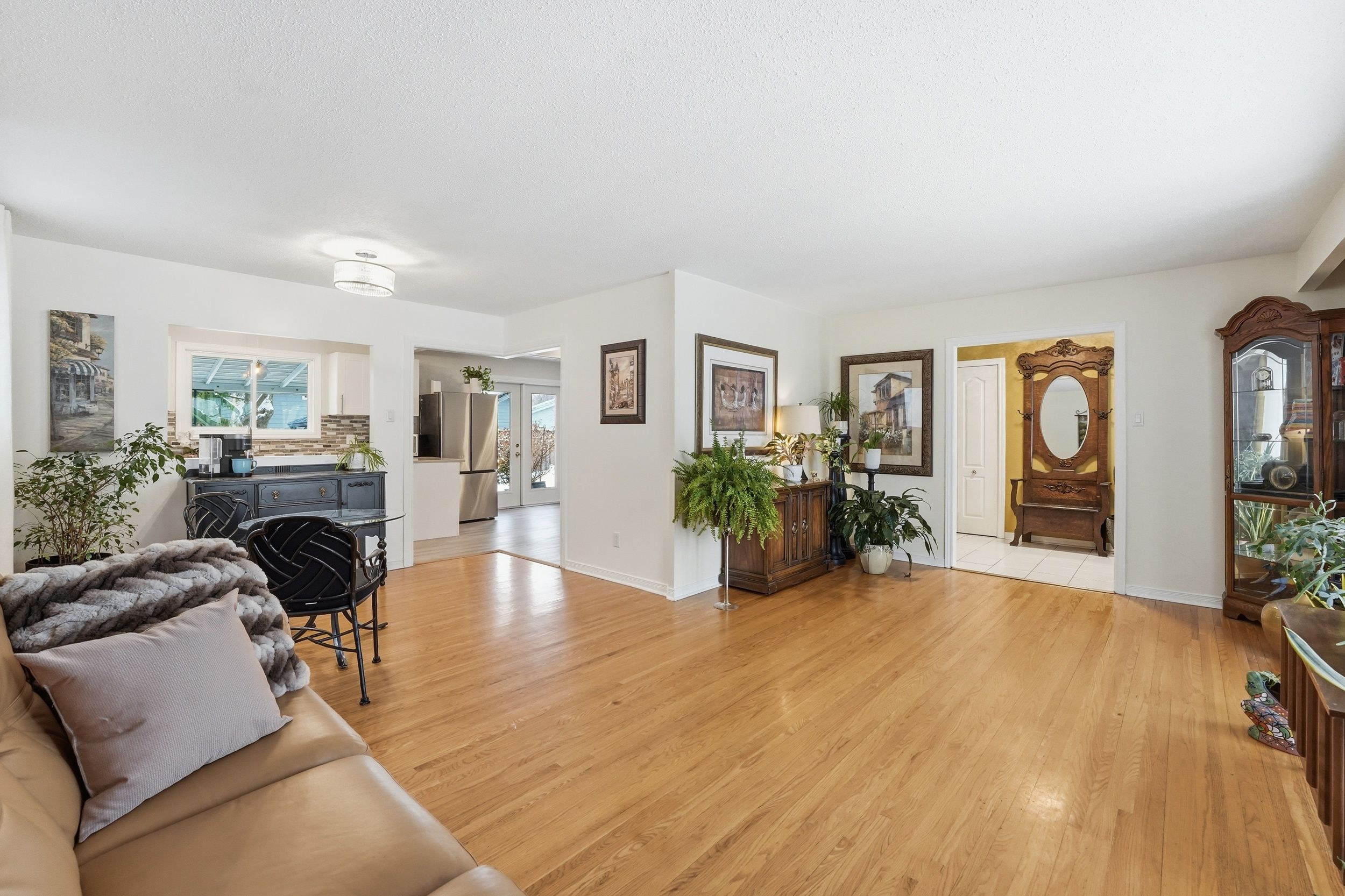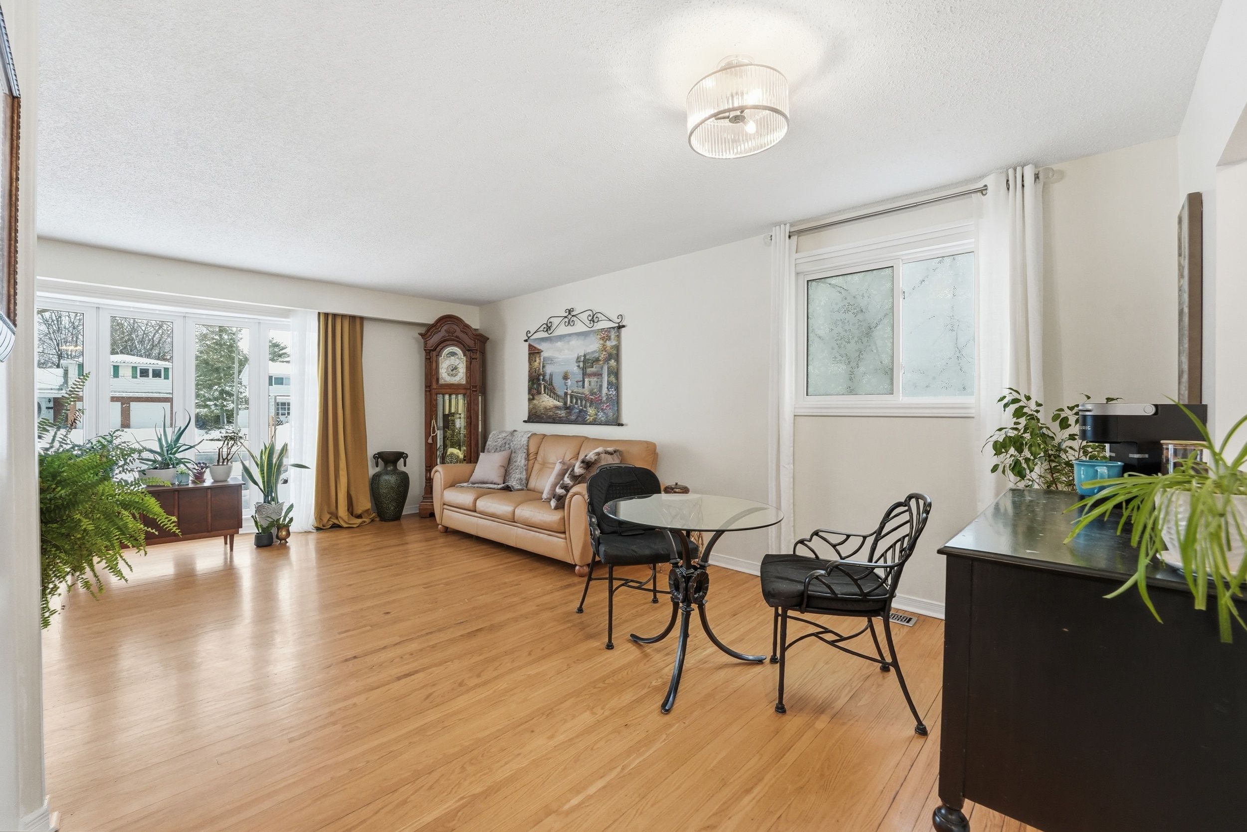 • Bright main floor with hardwood flooring and a large bay window.