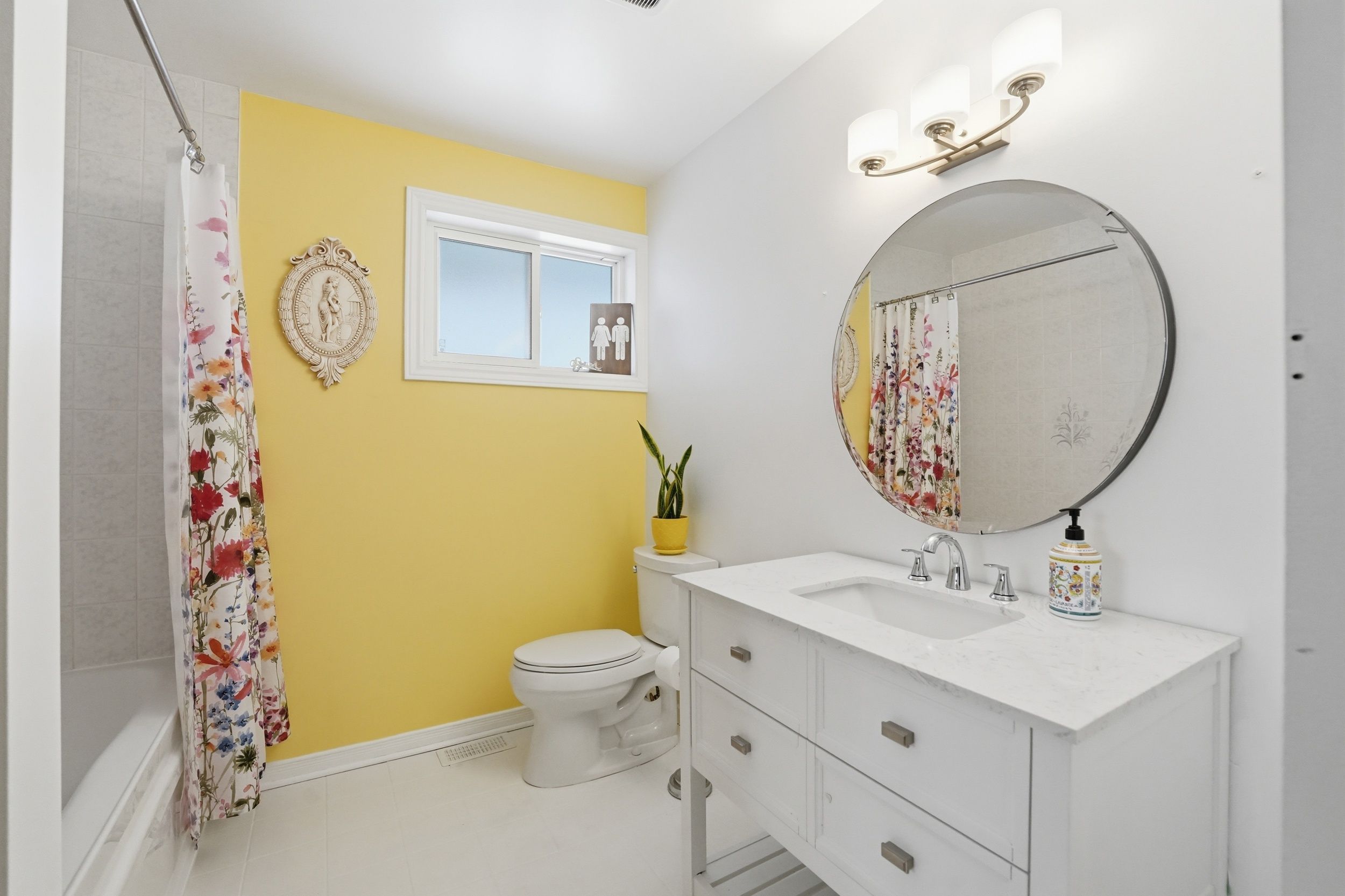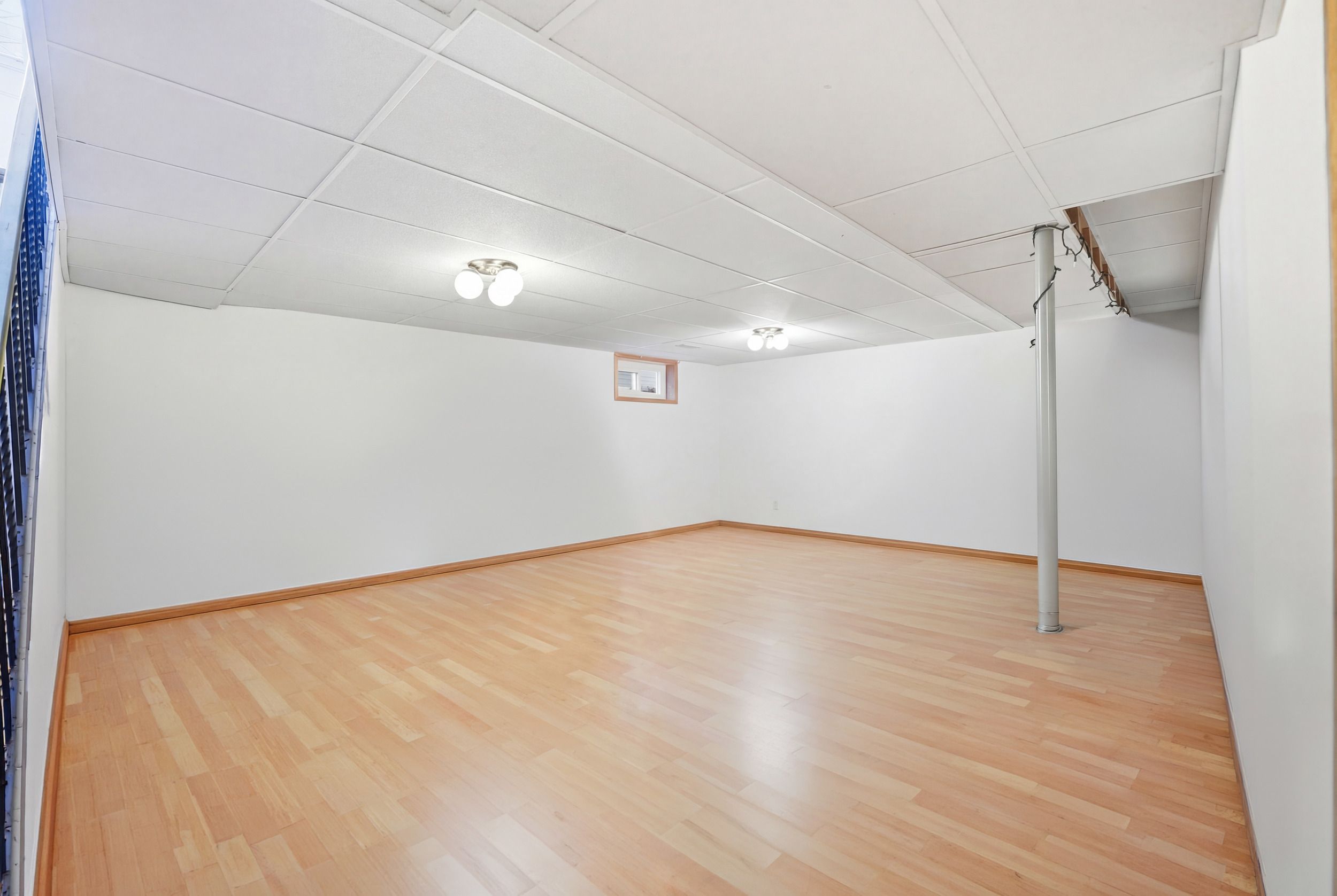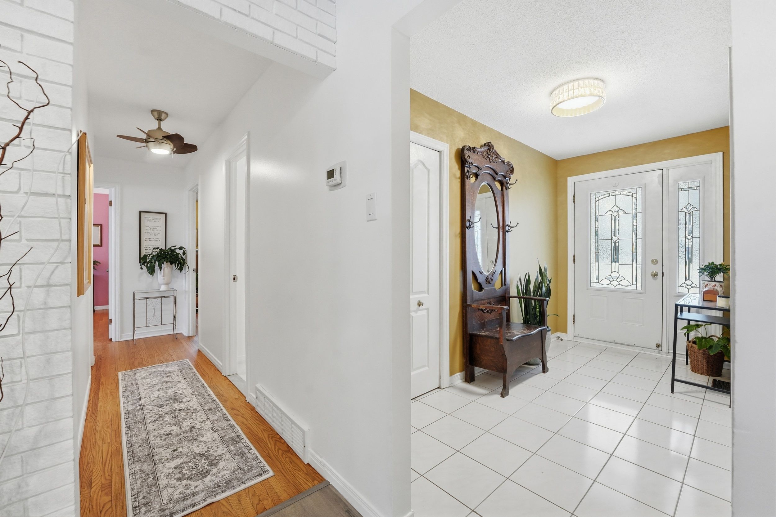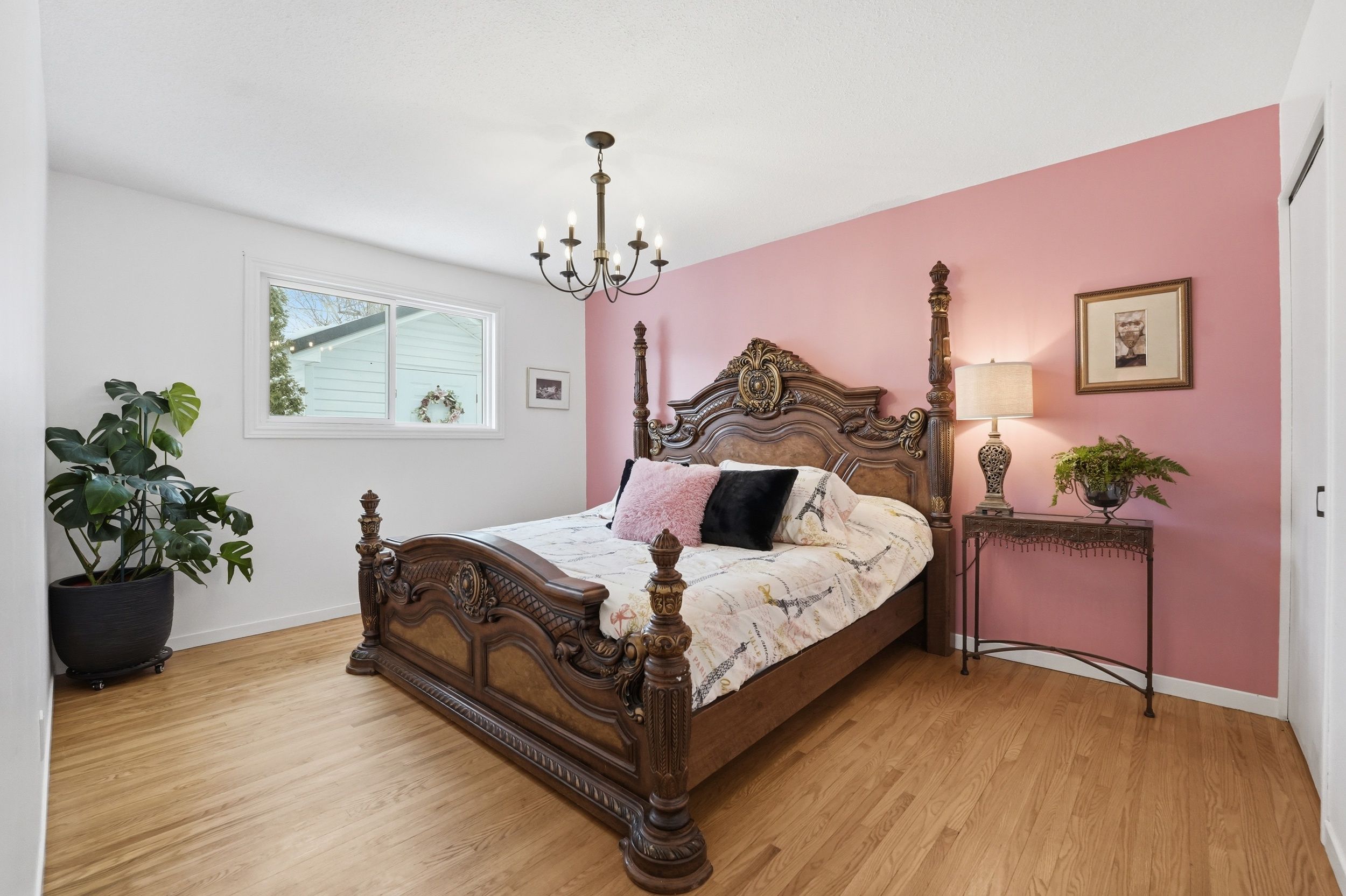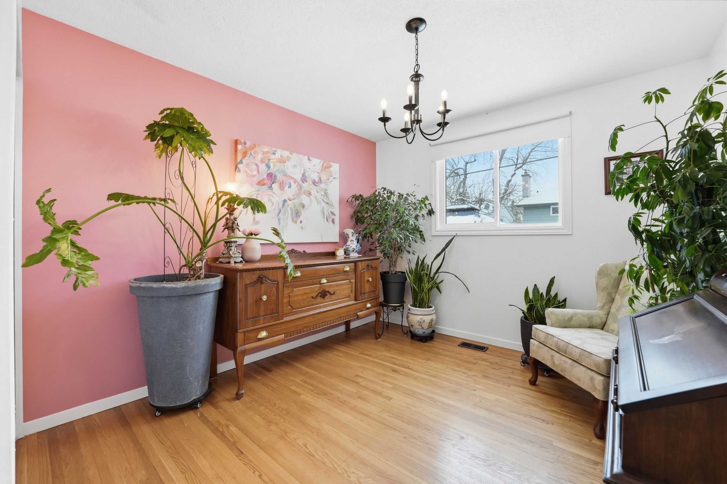 • Bright main floor with hardwood flooring and a large bay window.