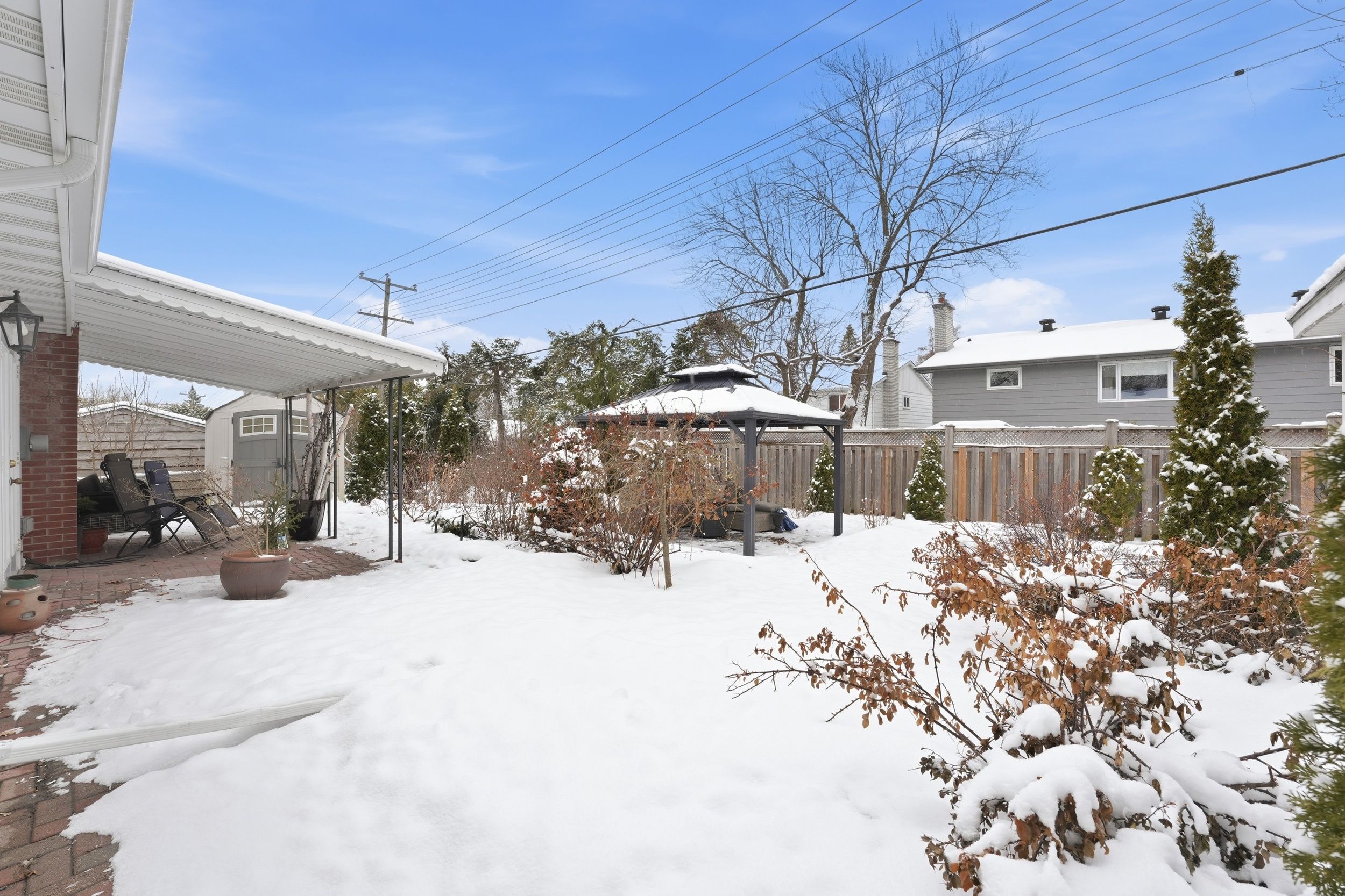 Welcome to this beautifully maintained 3+1 beds, 2 full baths bungalow with attached garage (with potential to develop basement unit / sdu) in the heart of blackburn hamlet - family-friendly community known for its parks, walking trails, and convenient access to the city. Offering over 3,000 sq ft of living space, this home features a bright and functional main floor with hardwood flooring throughout the main living areas and bedrooms. Step into an inviting foyer which transitions into a spacious living room highlighted by a large bay window, filling the space with natural light and creating a warm, inviting atmosphere. A formal dining room provides the space needed for hosting while the updated white eat-in kitchen is both stylish and practical, complete with stainless steel appliances, quartz countertops, over the sink window, ample cabinetry, and garden doors leading directly to the backyard - ideal for indoor/outdoor living. The main level also includes three generously sized bedrooms and an updated bathroom with a tub/shower combo and convenient cheater access to the primary bedroom. The fully finished basement extends your living space with a large rec room, a fourth bedroom, laundry area, multiple storage spaces, and a dedicated mechanical room. There is also direct access to the basement from outside which will easily facilitate the construction of a basement apartment, in-law suite or secondary dwelling unit. Live better in your private backyard oasis which is fully fenced-in with 2 storage sheds, a covered patio area with permanent awning, a gazebo, enhanced by beautiful shrubs, trees & perennials. The home sits on a large lot with interlock driveway that fits several vehicles, close to schools, parks, amenities on innes road and with transit at your doorstep. It's perfect for families, downsizers, or anyone looking to enjoy the charm and community feel of blackburn hamlet. Shingles (22), eavesthrough (21), hard top gazebo (22), all updated vinyl windows.
