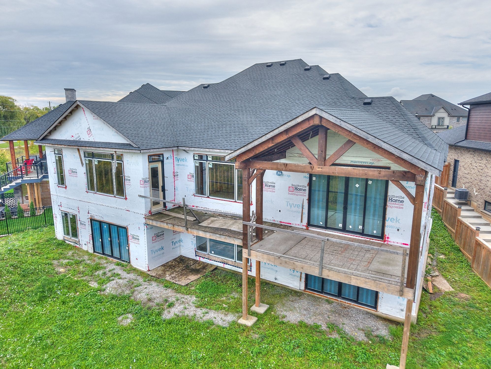 Your opportunity awaits to complete this luxury bungalow on a pie shaped lot, backing onto green space with no rear neighbours, amongst all other high end homes in a highly desirable subdivision in fonthill! Being sold at its current stage of completion ready for insulation/drywall, this bungalow consists of 3009 sq. Ft on the main floor with 10' ceilings throughout with all electrical and plumbing installed along with audio cable to each room on the main floor. Oversized sliding patio doors off of the kitchen/dining room area to timber framed covered deck connecting to a walkout from the primary bedroom. Main floor laundry, large mudroom off the oversized 2 car garage with 1 bedroom, 1 bathroom loft above the garage! Lower level consists of another 2000 sq. Ft with double walkouts and heated floors. Floor plans show 2 more bedrooms, bathroom, exercise room, and large recreational room with wet bar area if finishing the lower level is desired. Many options to choose with this current footprint, all this located 2-3 from hwy 20 and all its amenities, and 5 min to hwy 406! Cant beat this location, and opportunity to live in the dream home you've always desired!