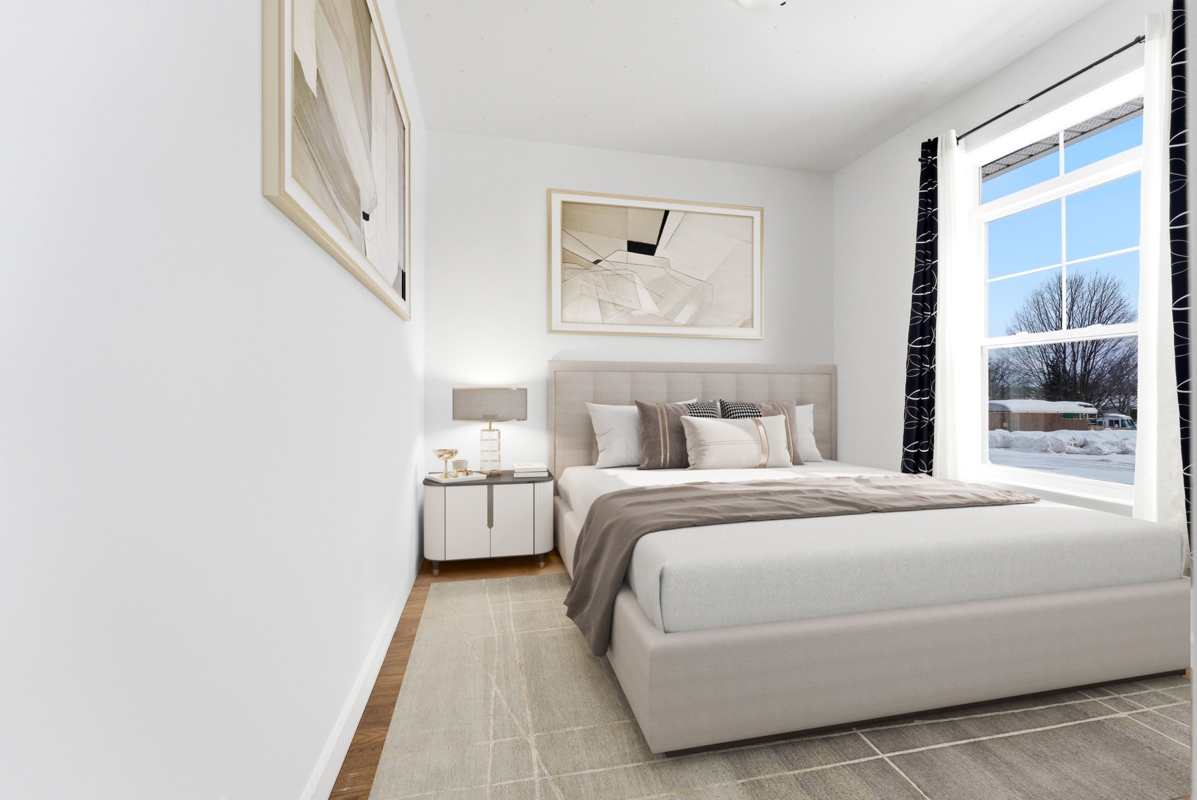 • Four spacious bedrooms and three full bathrooms for comfortable living.