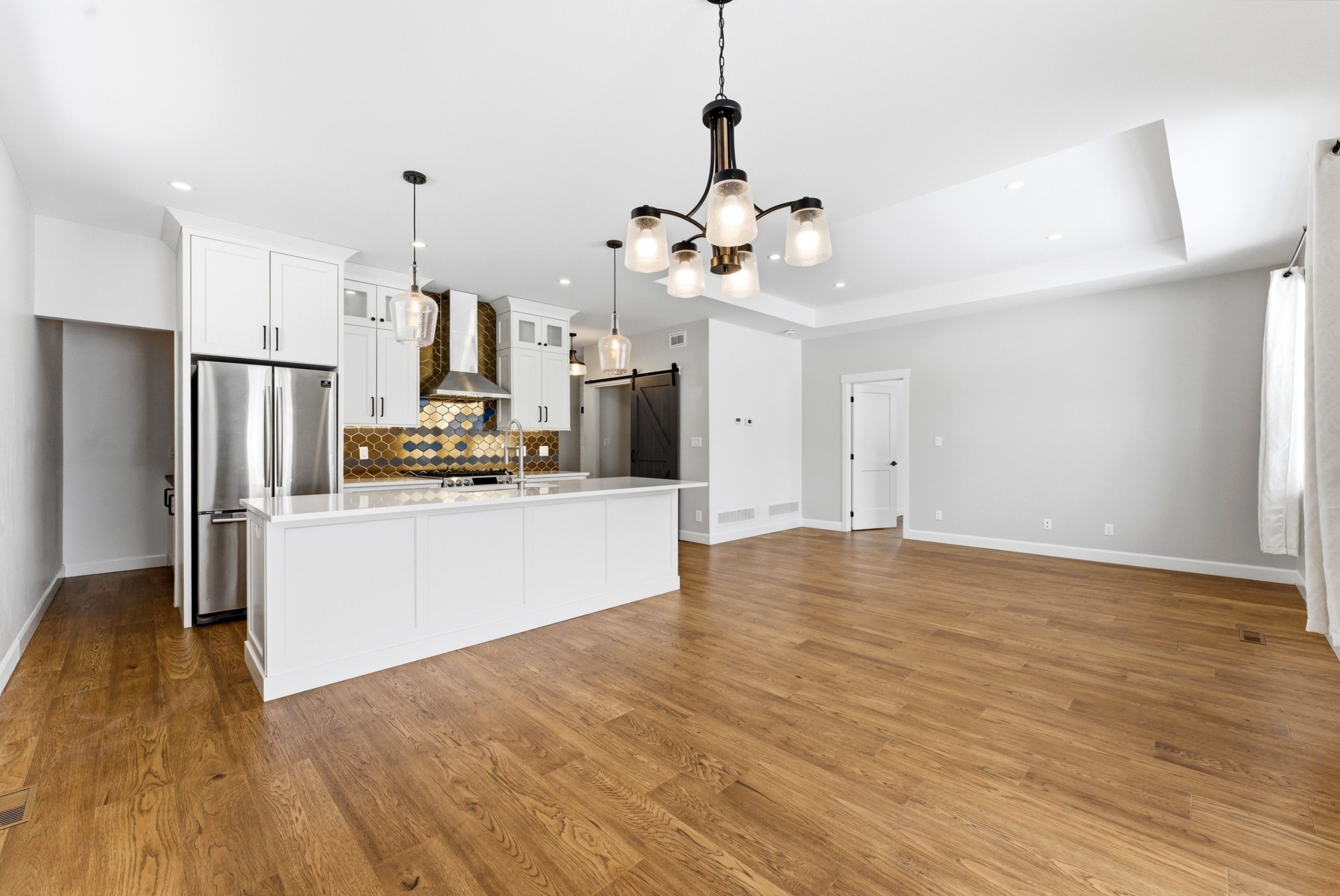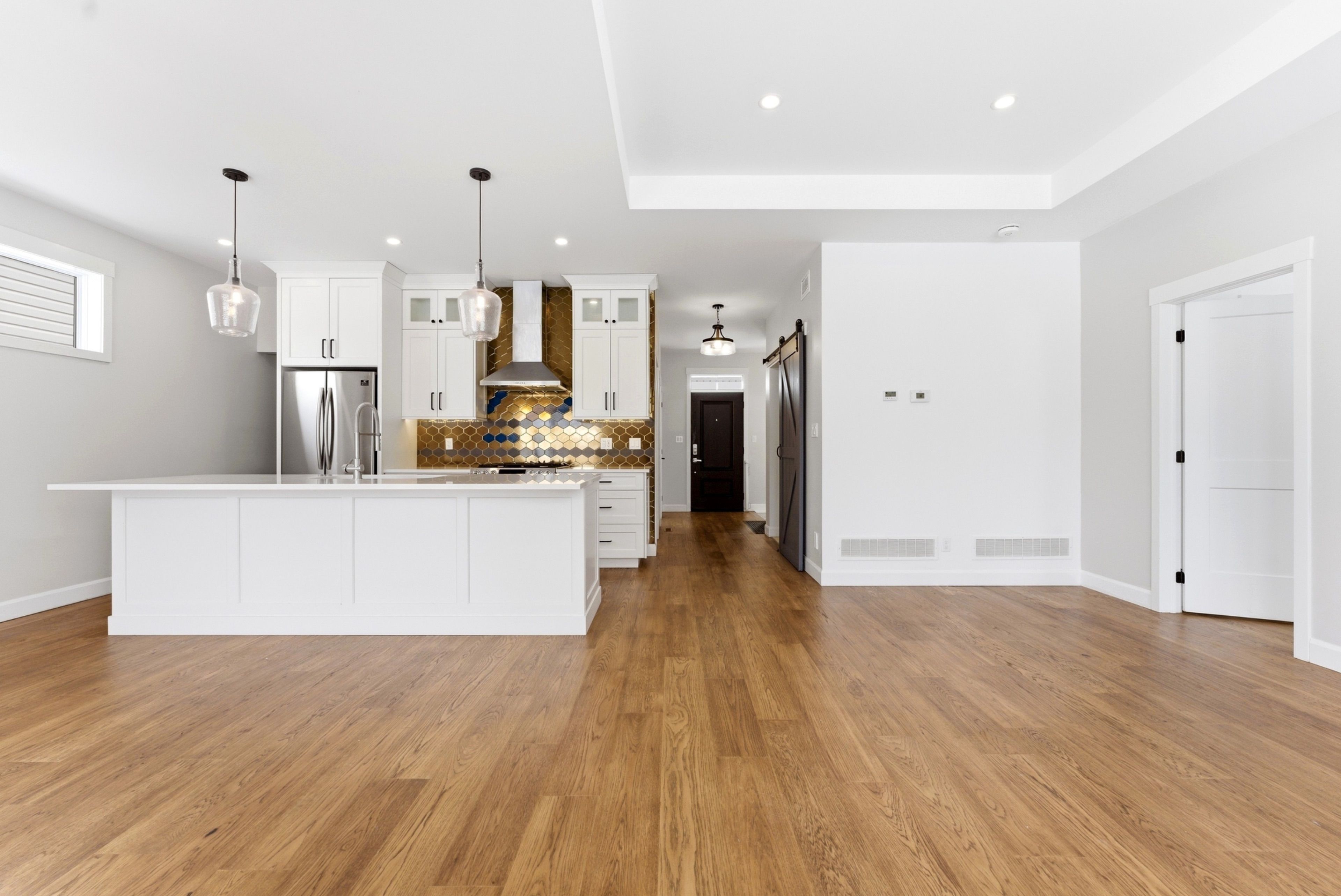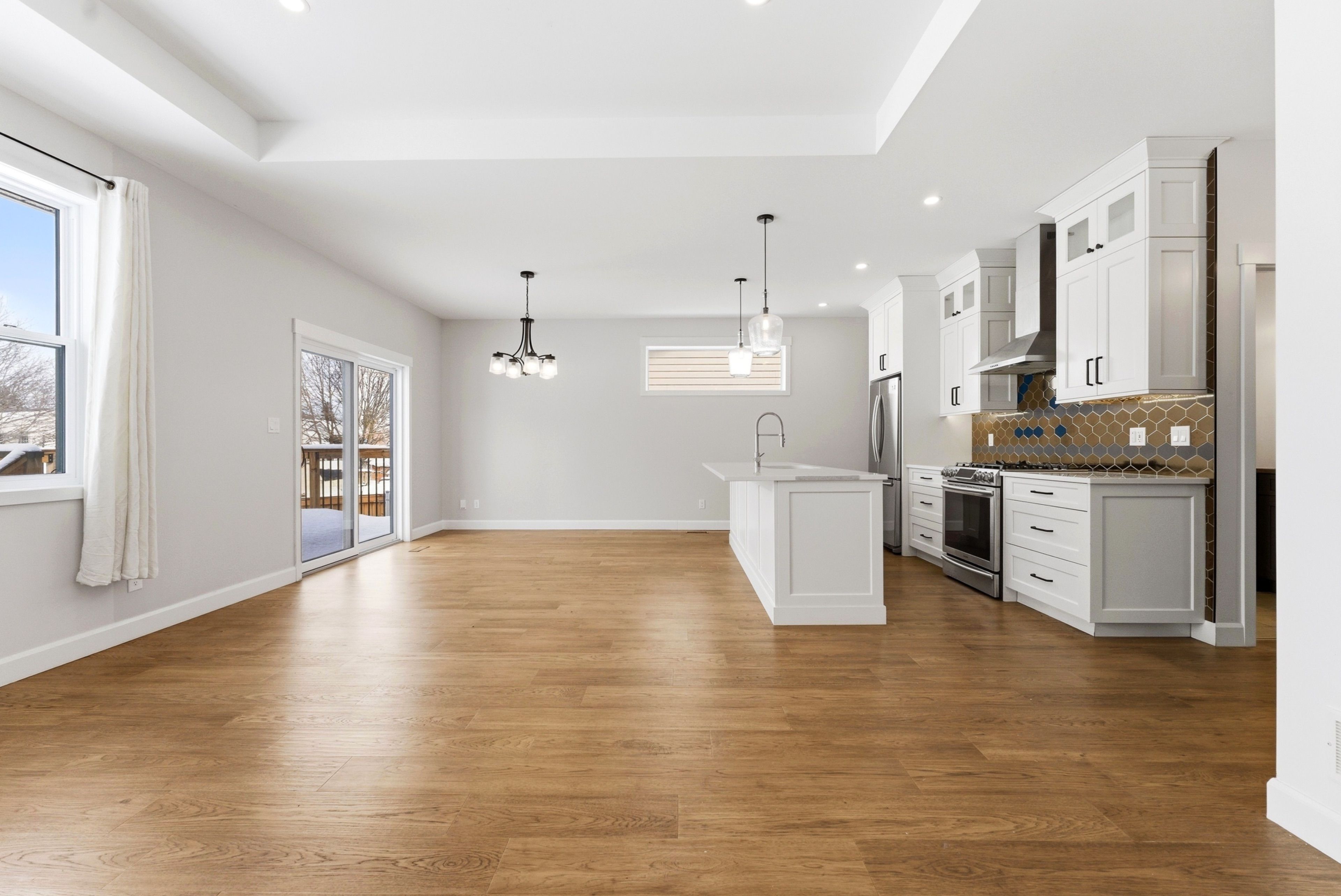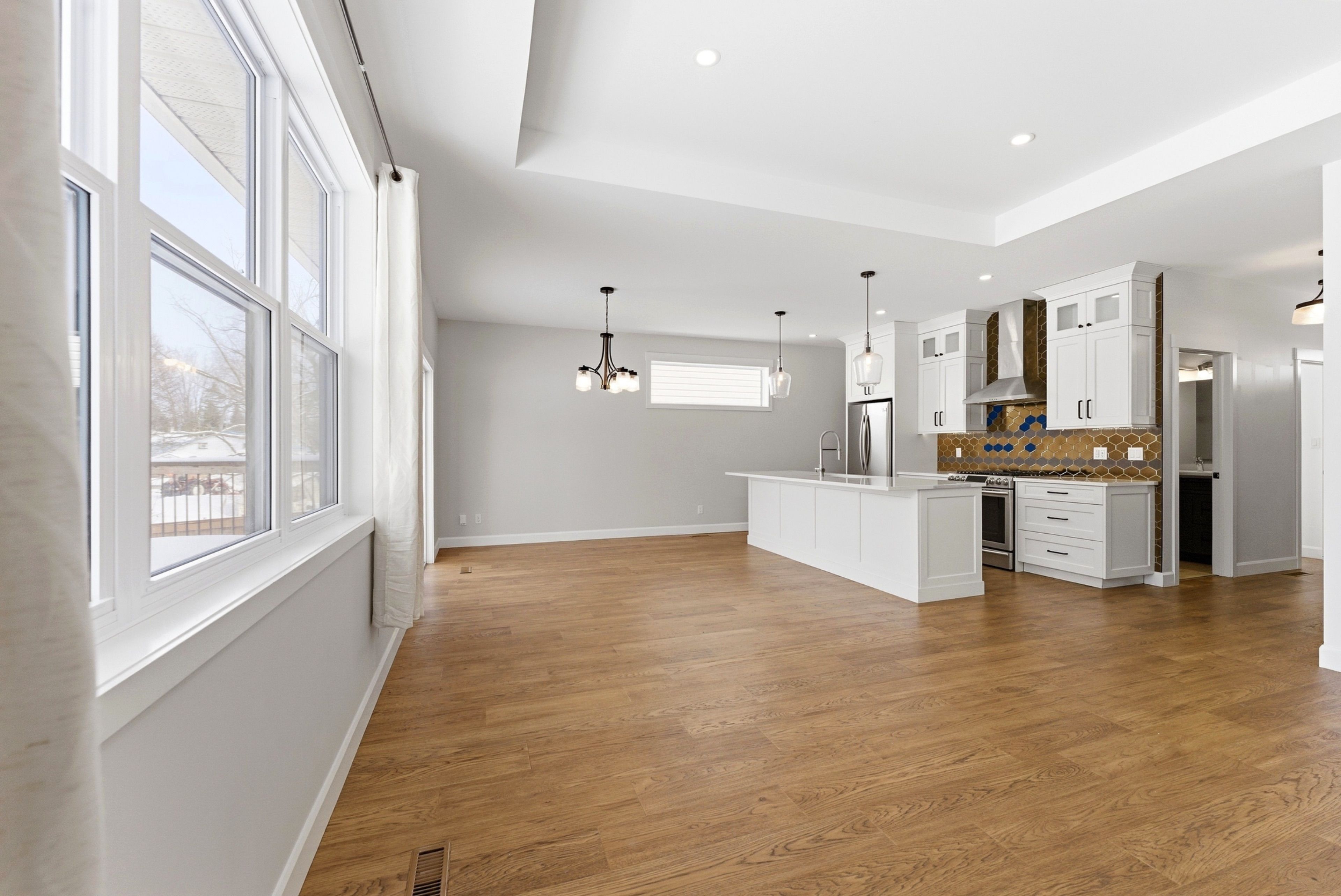 • Bright open-concept main floor with elegant coffered ceilings for a modern feel.
