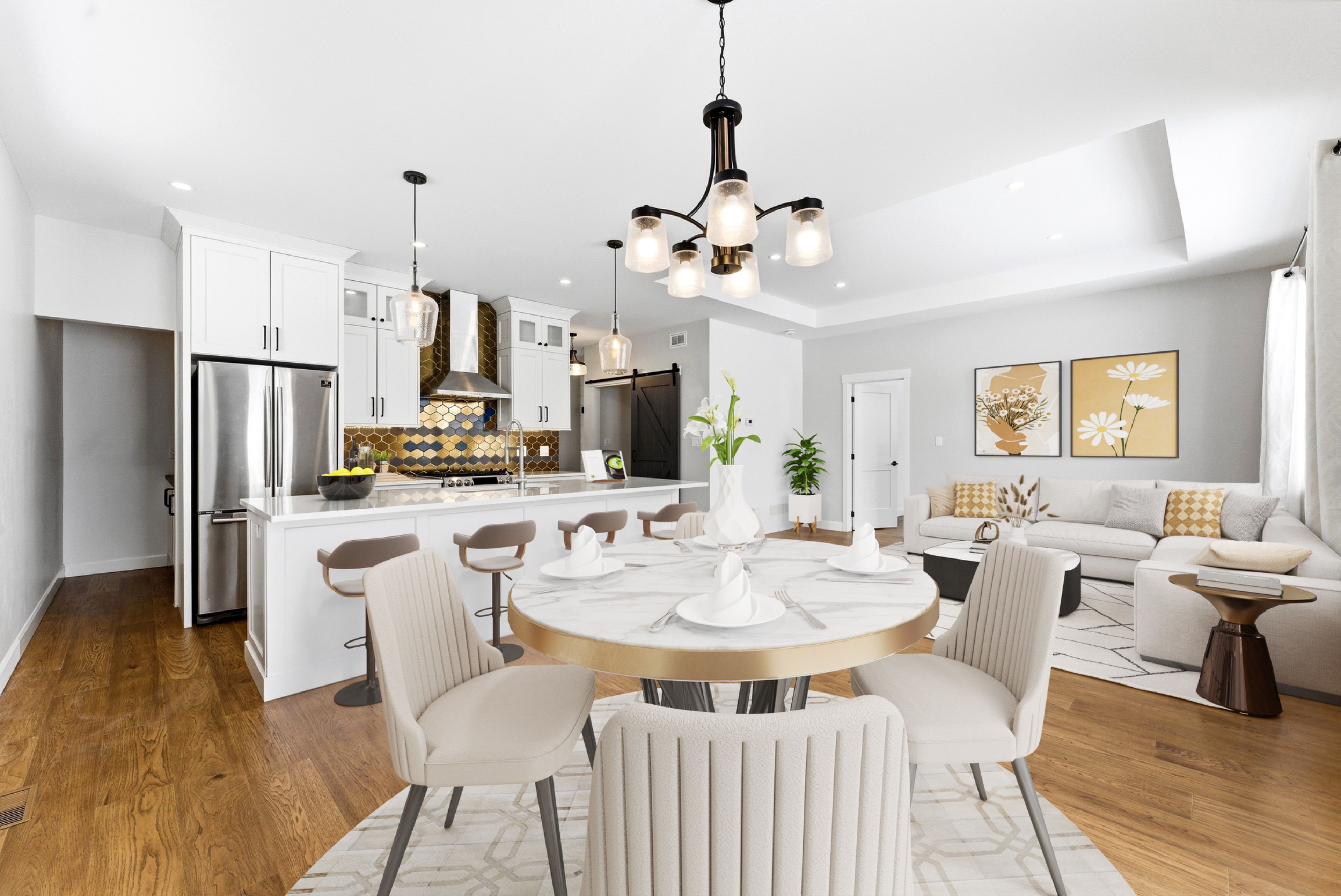 • Stunning kitchen with quartz countertops and custom cabinetry.