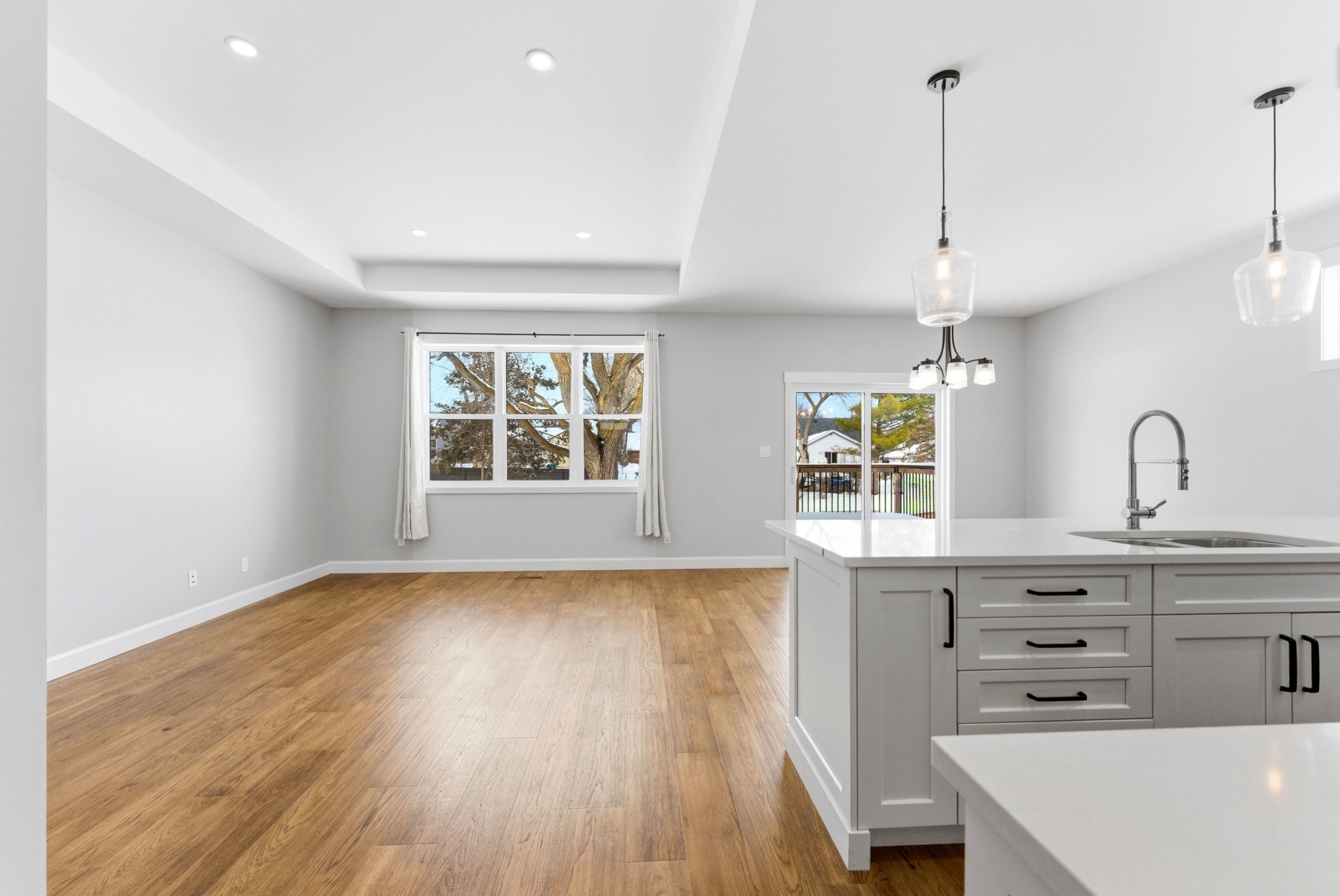 Move into this beautifully crafted, 4-bedroom, 3-full bathroom home by van huizen homes, one of the quinte region's most respected builders, celebrated for exceptional workmanship and thoughtful design. Just seven years young and offering over 2,300 sq. Ft. Of finished living space, this home showcases a bright, open-concept main floor with elegant coffered ceilings and a spacious dining area that walks out to the back deck-perfect for entertaining. The stunning kitchen, designed and built by william design company, features quartz countertops, a custom backsplash, glass-accent cabinetry, a centre island, and a separate pantry complete with additional cabinetry and a stylish bar/coffee station. The main level offers a serene primary suite with a walk-in closet and private ensuite, along with a second bedroom or home office and an additional full bath. Downstairs, the fully finished lower level provides two generous bedrooms, a large rec room, a full bathroom, and a finished laundry room-ideal for family living or guests. Thoughtfully upgraded throughout, this home includes a natural gas bbq hookup (no propane tanks), pot lights, led strip lighting, 200-amp service, ev rough-in in the garage, an owned hot water tank, high-efficiency gas furnace, and hrv system. Quality craftsmanship. Modern finishes. Truly move-in ready.