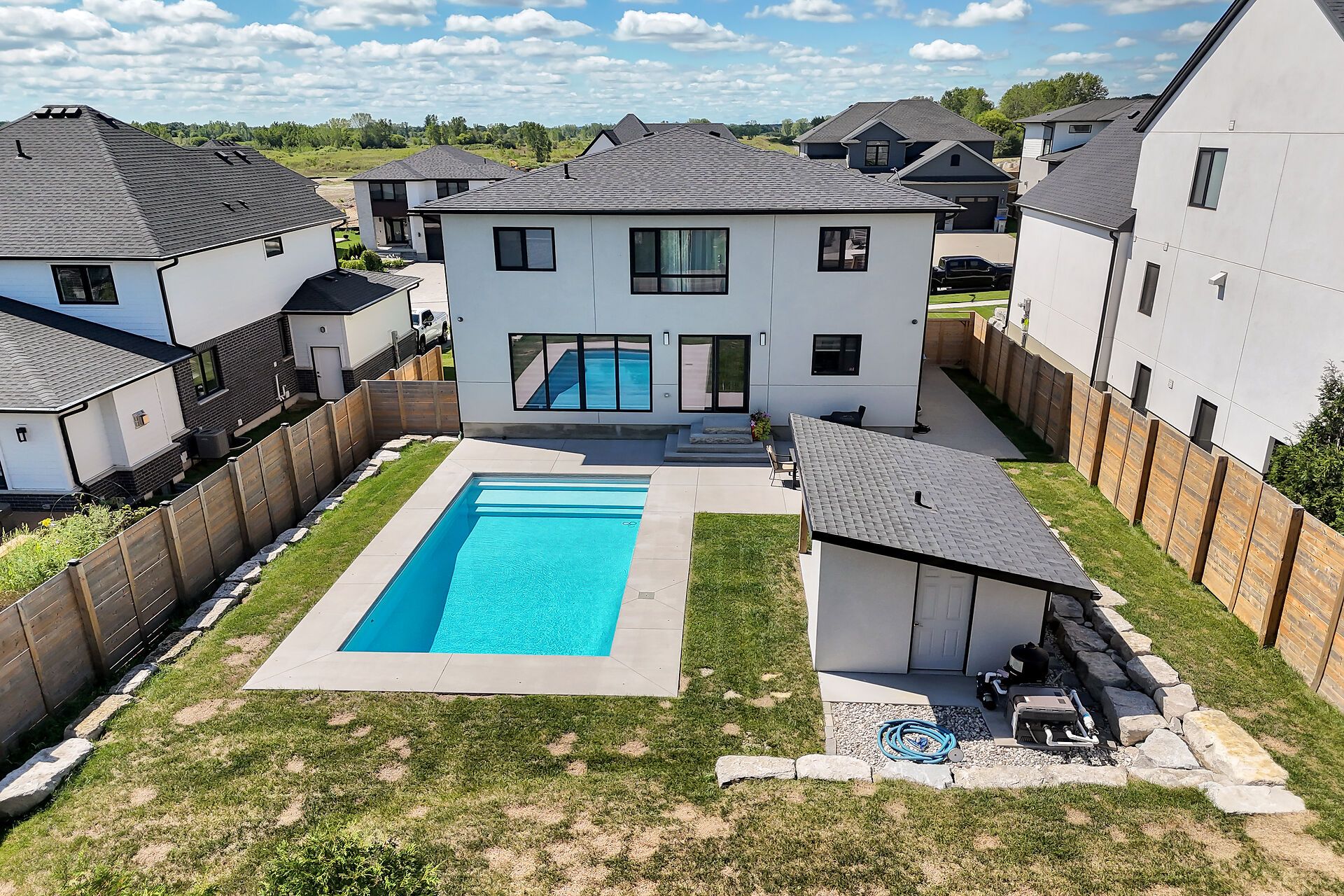 Welcome to your dream home in edgewater estates nestled in the prestigious edgewater estates, this exquisite 2-storey home blends luxury with comfort, offering 4 spacious bedrooms and elegant living throughout. Step into a bright and inviting space adorned with wood slat feature walls that create a modern yet warm atmosphere. The gourmet kitchen is a true chef's dream, featuring high-end appliances and a rare walnut tabletop, complemented by sleek porcelain countertops that elevate your cooking experience. Whether you're preparing a family meal or hosting friends, the hardwired ceiling speakers in the family room and kitchen will ensure a harmonious ambiance for every occasion. Step outside to your own private sanctuary an in-ground, heated saltwater pool surrounded by a fully fenced yard for maximum privacy. The pool house includes its own washroom and shower, providing both convenience and luxury for your gatherings. The 24-foot wide double car garage offers ample space for vehicles and storage, adding practicality to this stunning residence. Located in one of komoka's most sought-after neighborhoods, this home is just minutes from local amenities, providing the perfect balance of serene living and convenience. After a long day, unwind in your luxurious soaker tub, complete with an on-demand hot water tank for the ultimate relaxation. This is a rare opportunity to own an exceptional home in edgewater estates. Contact us today to schedule your private tour and experience all the beauty this home has to offer!